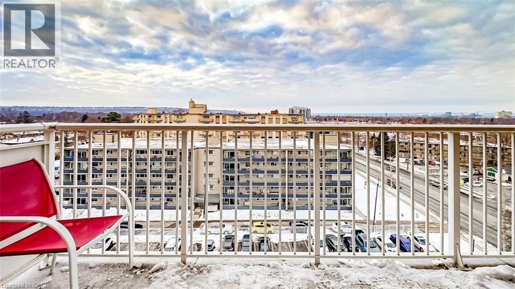 Stop Renting, Start Owning: Incredible value in this Dream Condo! Meticulous penthouse level condo with breathtaking views, all for less than what you're currently paying in rent! This isn't a pipe dream; it's a reality with all utilities included in the condo fees. ( Rare Find) Spacious design, flooded with natural light. The heart of this condo is the spacious eat-in kitchen, featuring, shaker style cabinets & a stylish ceramic backsplash. Cooking & entertaining will be a joy with the convenience of LED pot lights & a double sink. Living area and bedroom with hardwood flooring complemented by newer baseboards, trim, doors, & casements. Storage is no longer an issue with custom closets, including a generous double closet in the front entrance & an expansive his-and-hers (8-foot) closet in the master bedroom. The modern 4-piece bath boasts elegant ceramic tile, providing a spa-like experience. But the appeal doesn't stop there. Step out onto the 23' x 4' balcony & soak in the amazing panoramic views of Hamilton & the Bay. Enjoy your morning coffee or evening cocktails while taking in the stunning scenery. And convenience? You've got it! Just minutes to QEW, transit, shopping, specialty shops and grocery stores, premium parking spot right in front of the building (#130) makes coming and going a breeze. This condo is truly a rare find, especially considering the utilities & basic cable are included! Say goodbye to those surprise bills & hello to predictable monthly expenses. Don't miss this opportunity! Stop throwing your money away on rent and invest in your future. (id:4555)