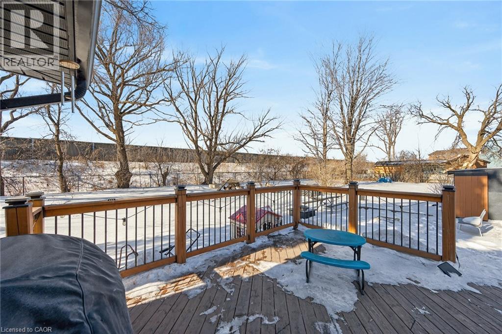 Beautifully updated 1,594 sq. ft. two-story home featuring 3 + 1 bedrooms and 2 full bathrooms. Located on a 40 x 93 ft. lot just steps to the Waterfront Trail with direct access to Hamilton Beach and Kinsmen Park. Minutes to Hamilton, Burlington, and highway access. Bright open-concept main floor with modern eat-in kitchen, stainless steel appliances, and walk-out to a large deck. Main level includes a full bathroom and private office. Upper level offers three spacious bedrooms, a 5-piece bath with double vanity, and convenient laundry. Updated mechanicals, 200-amp service, long private driveway, exterior garage/workshop, and excellent privacy with adjacent City-owned land. Ideal family home in a prime waterfront neighbourhood. (id:4555)