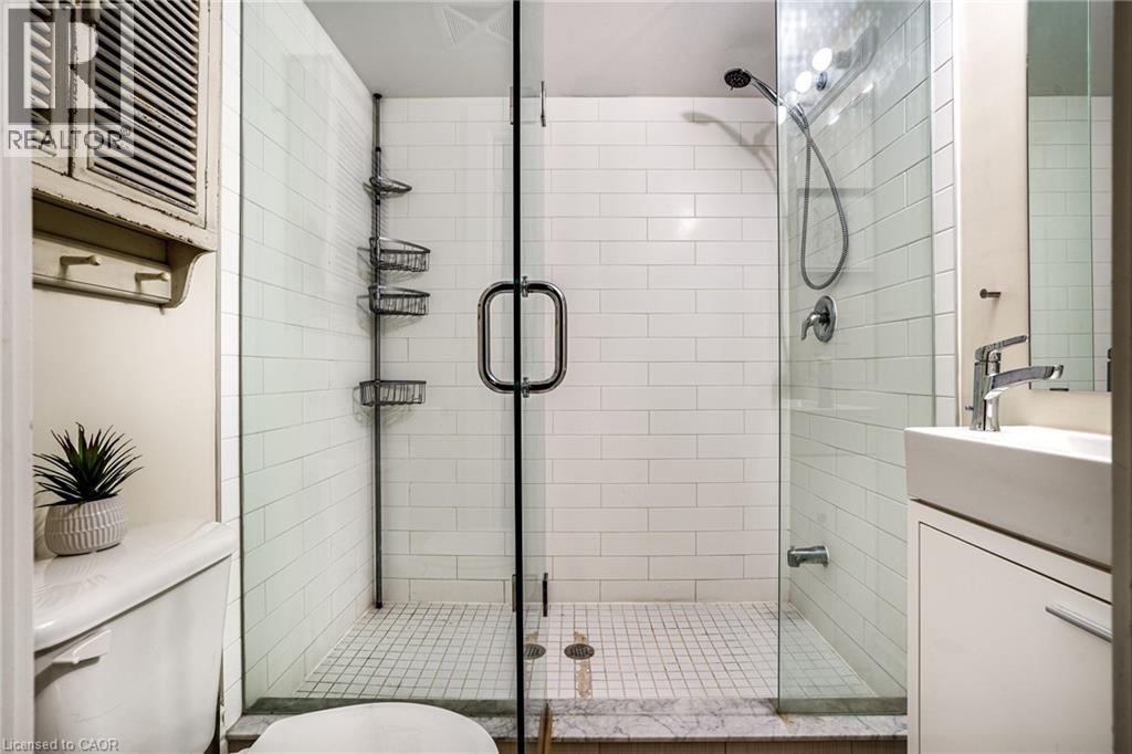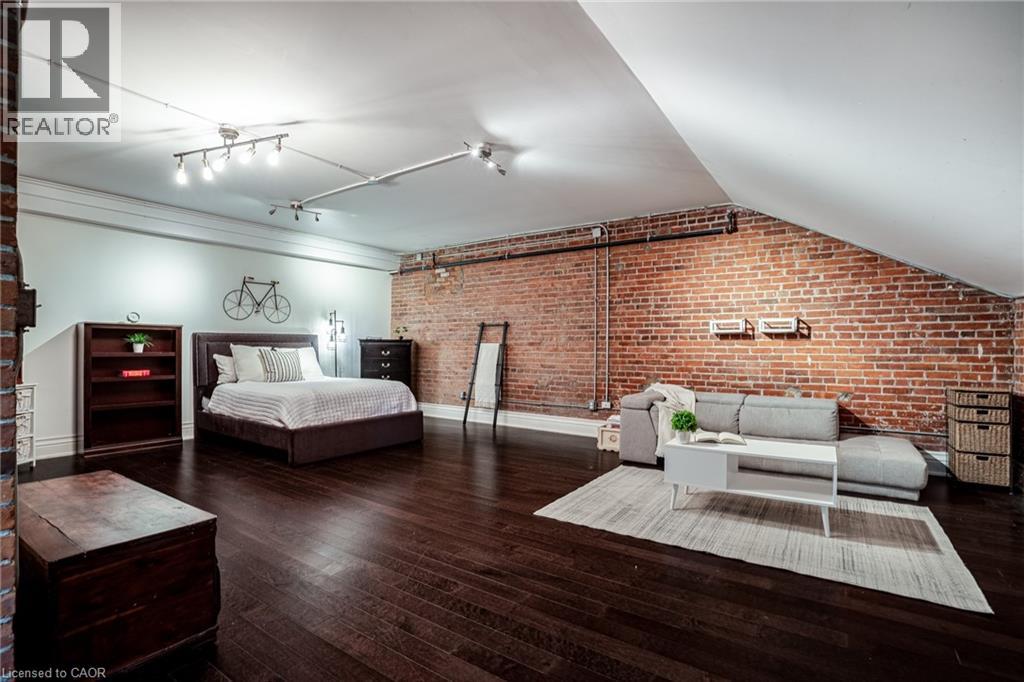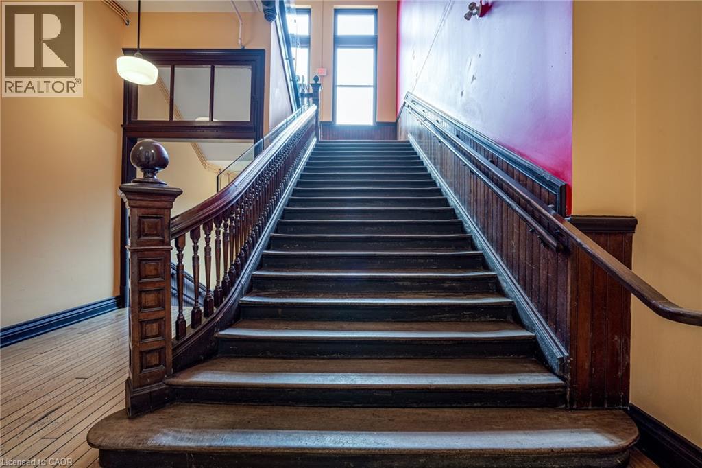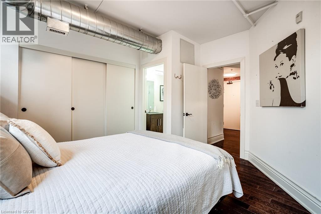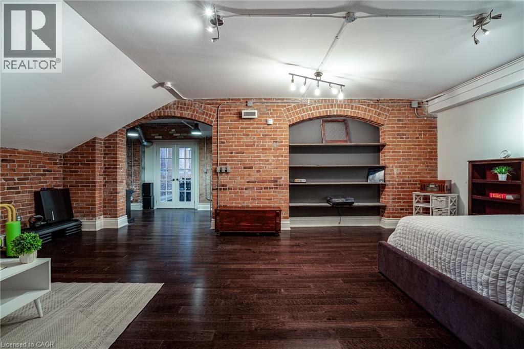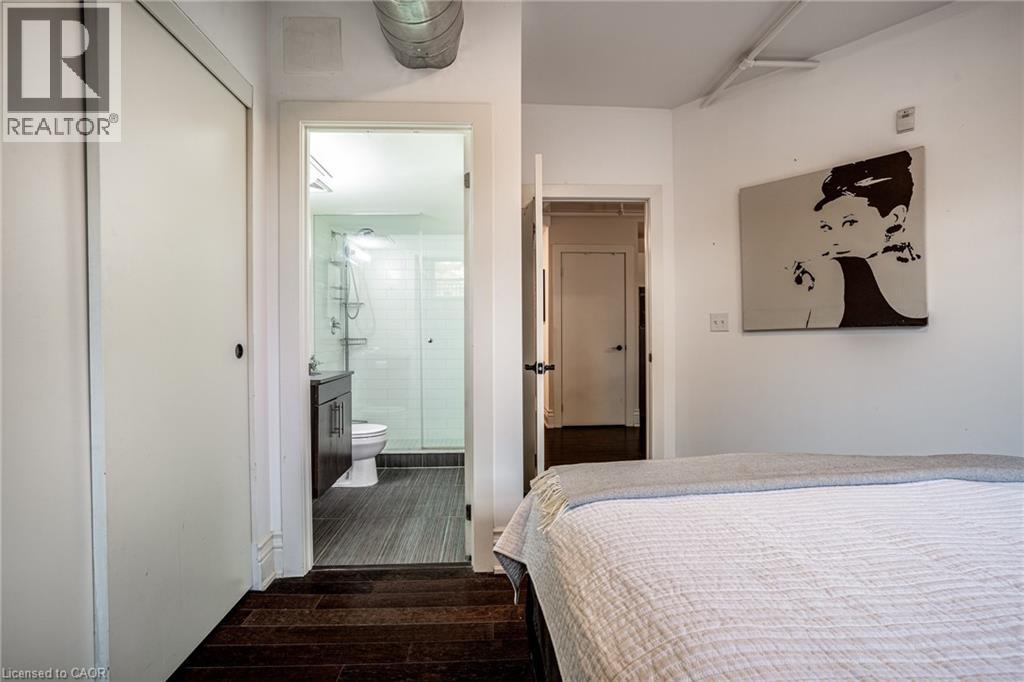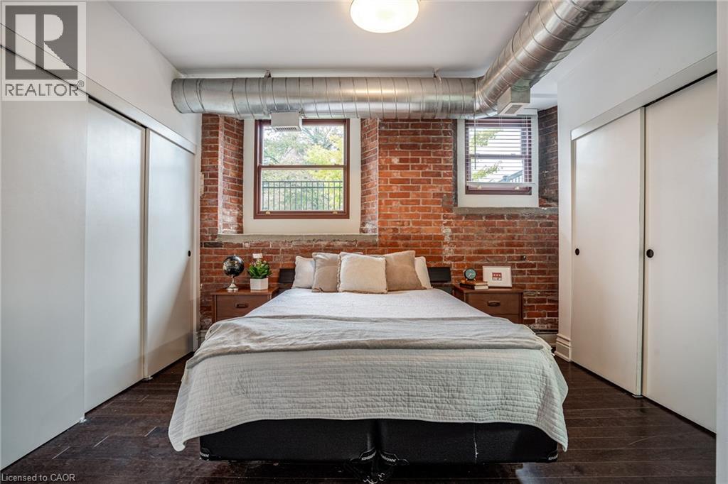 Discover a truly distinctive opportunity at the historic Stinson Lofts, where old-world character and modern comfort converge. This rare main-floor corner unit offers exceptional value for its generous square footage, highlighted by a remarkable 28’ x 12’ private patio with sweeping views of the community playground and the lush Hamilton escarpment. Inside, soaring ceilings, exposed brick walls, and rich hardwood floors preserve the timeless charm of the 1894 Stinson School, while an airy open-concept design provides a bright and inviting flow. The stylish kitchen features quartz counters with a breakfast bar, stainless steel appliances, and in-suite laundry, seamlessly opening to spacious living and dining areas ideal for entertaining. This unique layout features 2 primary suites, the first with dual closets and a modern three-piece bath. The second private suite has it’s own entrance off the dining area through french doors, with a large versatile accessway that is perfect for an office or extra storage. Believed to have once been the kindergarten classrooms of the original school, this spacious suite includes built-in shelving and a fall bathroom. It's time to move into this one-of-a-kind residence that offers a rare blend of heritage elegance, modern functionality, and unbeatable value. Includes one exclusive parking spot, P21 (id:4555)