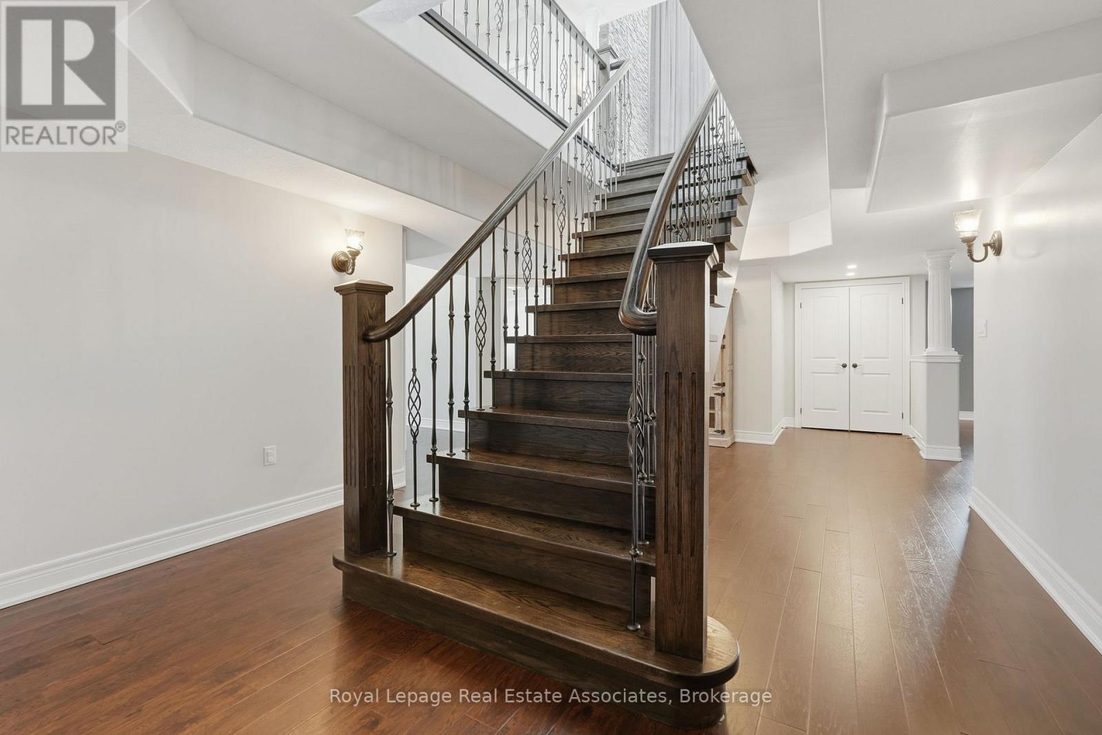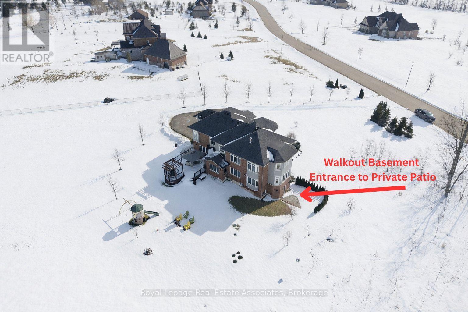Welcome to 100 Chesswood Trail, an executive custom built estate home on a quiet cul-de-sac in prestigious Chestnut Grove Estates. Set on over 8 acres with breathtaking countryside views, this spectacular home has it all. Featuring over 6,000 sq ft of finished living space with 6+2 bedrooms, 5.5 bathrooms, this home makes a stunning first impression with a 19-foot, two-story foyer, marble flooring, and grand 'Scarlett O'Hara' Staircase. The wide-plank hardwood floors lead to a bright two-storey sitting room with floor-to-ceiling windows and a stone gas fireplace. The kitchen offers granite countertops, stainless steel appliances, and an oversized island, with a breakfast area opening to the backyard deck. The main level also includes a family room, formal dining room, office, versatile bonus room (bedroom or den), and a mudroom with built-ins, including separate exterior access and access to the 3-car garage. Upstairs, five bedrooms enjoy ensuite or shared Jack-and-Jill baths, ensuring privacy and convenience for family or guests. The luxurious primary retreat features a spa-inspired 5-piece ensuite, custom walk-in closet, and private sitting area. The fully finished walk-out basement has a separate entrance, offering excellent in-law suite potential, and includes a kitchen rough-in, large recreation area, media room, two bedrooms, a 3-piece bath, gym or multi-purpose room, and ample storage. Additional highlights include geothermal heating and cooling, pot lights, rounded wall corners, 200 AMP service, professionally landscaped grounds, and patterned concrete walkways. Conveniently located 15/20 minutes to Waterdown, Burlington, Guelph, Cambridge, this home offers quick highway access and is your perfect picturesque city retreat. (id:4555)