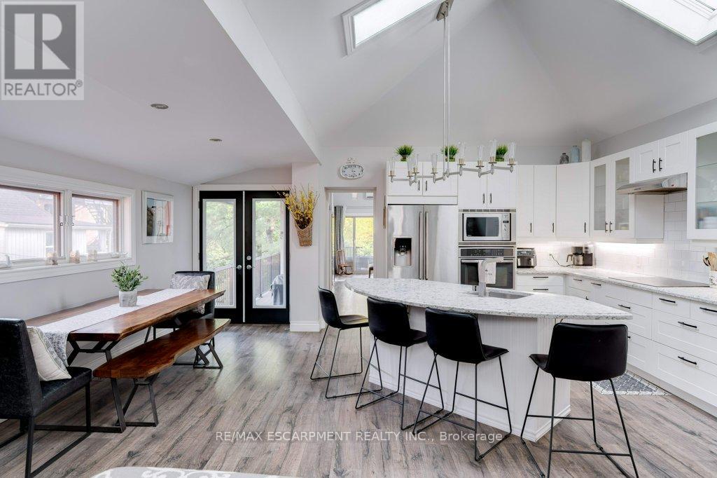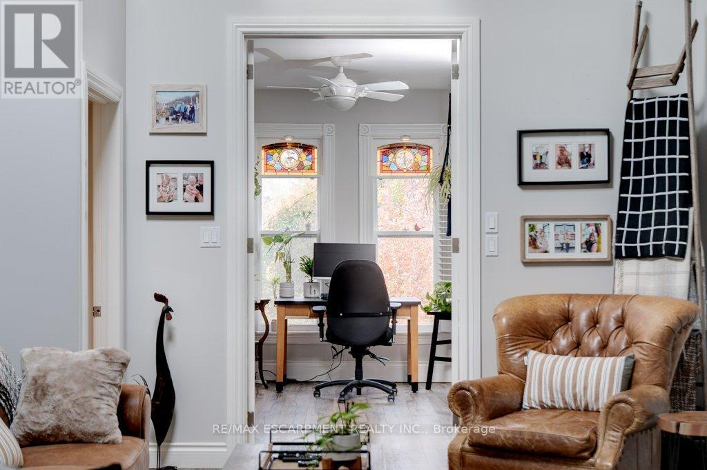 Tucked along a tree-lined street in Hamilton's beloved Kirkendall neighbourhood, this stately legal duplex tells a story of character, versatility, & opportunity. Behind its charming façade lies over 2,500 square feet of living area, thoughtfully separated into three distinct suites that adapt as life does. On the main level, a self-contained one-bedroom apartment at the rear and a dedicated home office at the front create endless possibilities. The recently renovated apartment offers a private space for parents or a tenant who wants a true home feeling. The office provides the perfect setup for professionals seeking a separate, client-ready workspace - ideal for a therapist, doctor, hair stylist, or lawyer who wants the convenience of working from home without sacrificing privacy. On the upper levels, natural light pours in through skylights and stained-glass windows, highlighting 18-foot ceilings, historic woodwork, and a wrap-around covered balcony made with Trex decking - a peaceful escape in the middle of the city. With two bedrooms, a loft, and two full bathrooms upstairs, it's a bright, welcoming home with timeless charm. Outside, the yard continues the character of the home with water features, a stained-glass art piece, and a restored church pew, creating a one-of-a-kind setting for entertaining or relaxing under the trees. Whether you're hosting friends or enjoying a morning coffee surrounded by art and greenery, this backyard is made for connection and celebration. Behind the charm lies confidence in the updates - a metal roof (2019), all-new windows (2023), high-end appliances, and independent heating and cooling systems for each level, ensuring comfort and efficiency year-round. Set in one of Hamilton's most sought-after neighbourhoods, steps to Locke Street's cafés, boutiques, and parks, 7 Homewood Ave is more than a home - it's a lifestyle, a workspace, and an investment in one of the city's most vibrant communities. (id:4555)