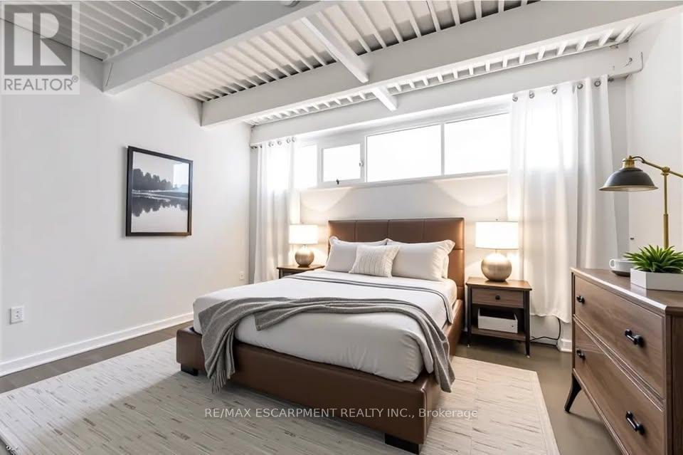 One-of-a-kind loft with soaring 21-foot ceilings! A rare opportunity to own a truly unique 1784 sqft condo/loft in the heart of one of Ontario's fastest-growing cities. This artistically designed space features 2 bedrooms, 2 full bathrooms, and a spacious walk-in closet in the primary suite. The open-concept layout seamlessly blends living, dining, and kitchen areas, all enhanced by polished concrete floors, exposed concrete pillars, and an industrial-chic aesthetic. The second-floor live/work loft provides the perfect home office or creative space, offering inspiring views overlooking City Hall and Hamilton's vibrant downtown core. Enjoy the convenience of walking distance to restaurants, shops, transit, and all urban amenities-the ultimate downtown lifestyle. This exceptional unit includes 1 parking space and a big locker, ideal for extra storage. A truly special home that will impress even the most discerning buyer. Book your showing today! (id:4555)
