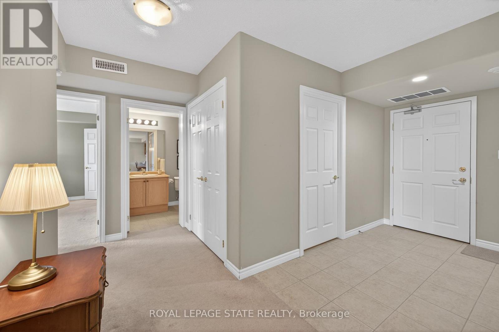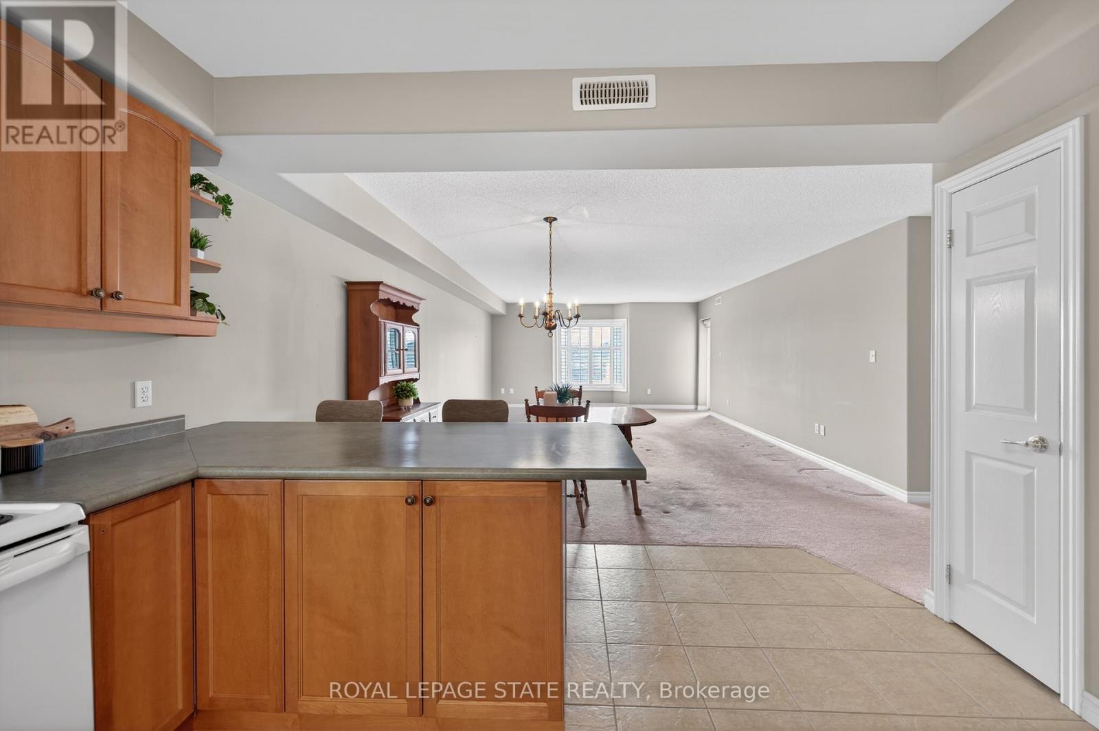 Condo living in a desirable East Hamilton Mountain neighbourhood, perfectly positioned near local recreation, nature, and everyday conveniences. This spacious two-bedroom, two-bathroom condominium offers approximately 1,362 sq ft of well-planned living space. The kitchen features warm wood cabinetry, a pantry, ample counter space, and a peninsula with breakfast bar ideal for casual meals or entertaining. The generous dining room flows seamlessly into the bright living room, with walk-out access to a covered balcony for year-round enjoyment. The thoughtful layout includes a main 3-piece bathroom with a tiled shower with glass door, while the large primary bedroom boasts a walk-through closet and a private ensuite bathroom. A second well-sized bedroom provides flexibility for guests, a home office, or hobbies. Enjoy the convenience of one underground parking space, a extra large storage unit, and building amenities that include a small gym with a washroom on the lower level. The building offers accessible features throughout the common areas, along with visitor parking located on the west side. Ideally located close to Bernie Arbour Memorial Stadium, Liuna 4 Ice Centre, scenic trails along the mountain brow, and the natural beauty of Albion Falls. Close to public transit, shopping and public library. This home is a fantastic opportunity to enjoy comfortable, low-maintenance living in a vibrant community. Some photos are virtually staged. (id:4555)