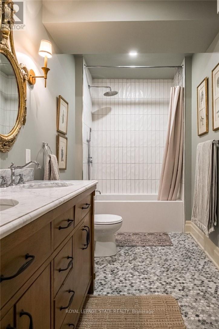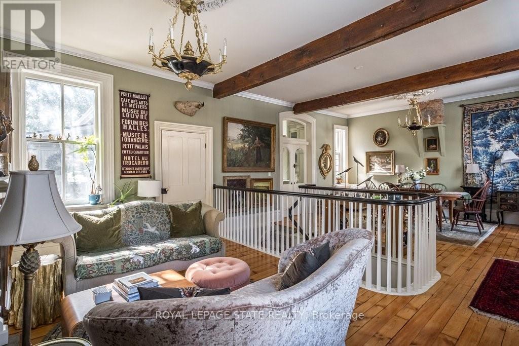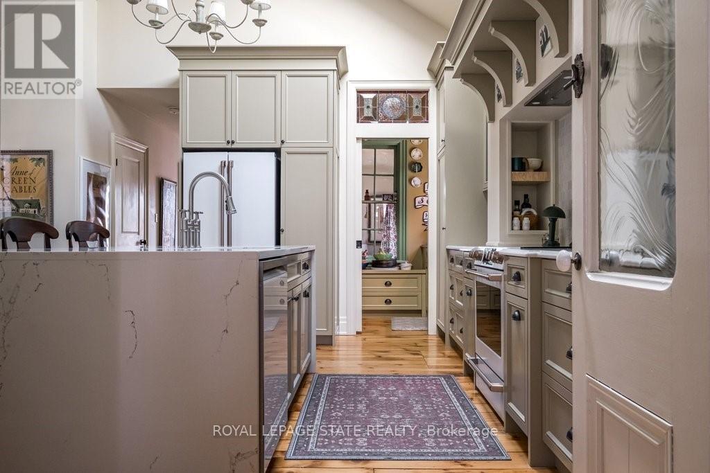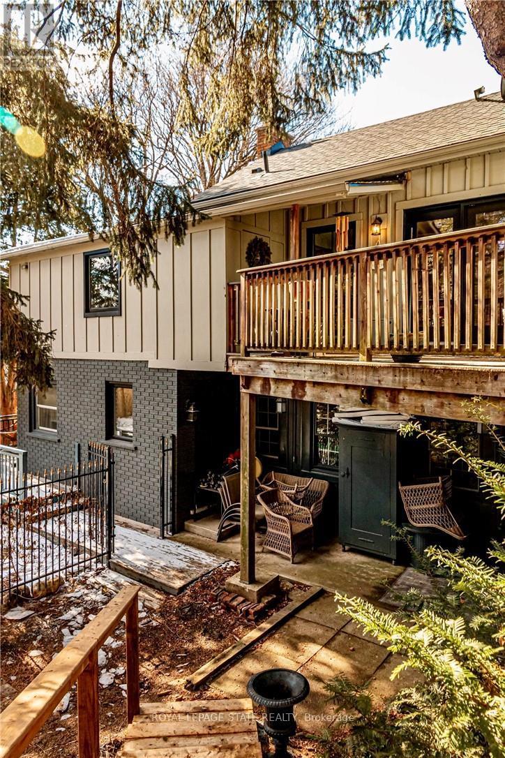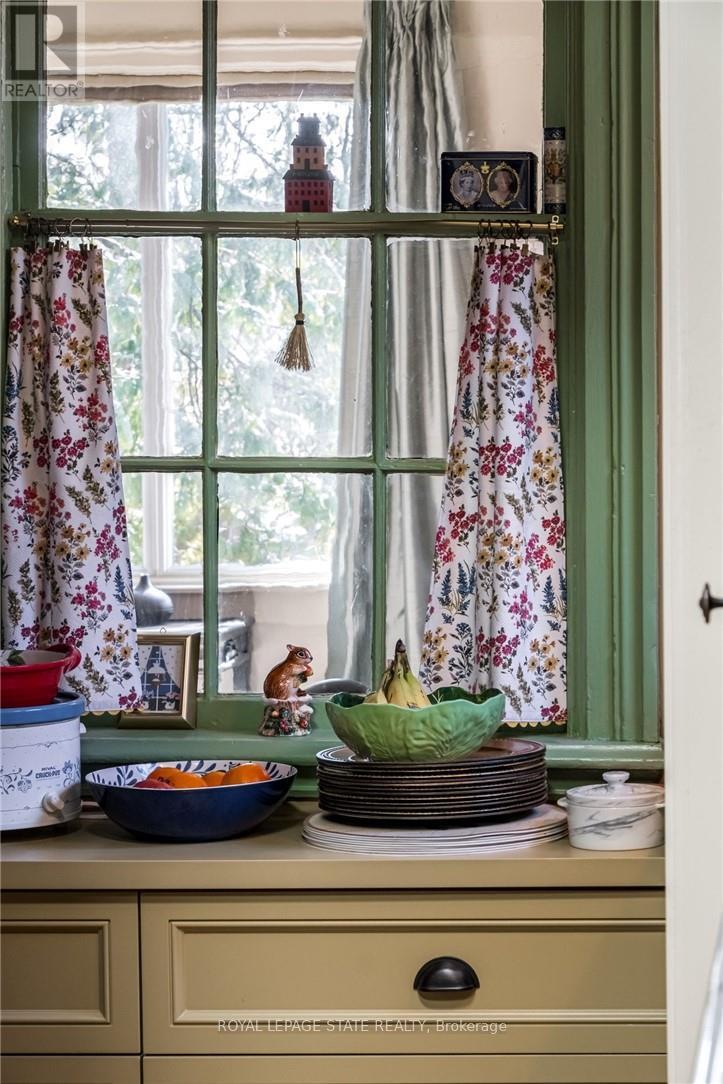 Dundas Dream. This circa 1880 character cottage, located in the heart of the Cross-Melville heritage district, is walkable to everything. Storybook curb appeal with beautiful perennial landscaping is unassuming from street level with a two full stories in the rear. Private "forest" on a 72' double wide lot, featuring a sunken garden and inground, heated saltwater pool surrounded by lush ferns, hostas, peonies, rose buses, hydrangeas and Japanese grasses. This tardis of a home is much larger than it appears with over 2,600 sqft of finished living space. Professionally renovated to the studs in 2023 to reimage the layout and living space. New HVAC, wiring, footings, support beams - everything! Unique reverse bungalow layout with main level living and lower garden level bedrooms, all above grade. 4 beds and 4 baths (2 half). The primary has jack and jill 5-piece bath access and a large WIC. One bedroom has custom built-ins with a closet and desk. The remaining two bedrooms share a WIC in their own "wing." Additional storage via a large custom hallway built-in featuring double closets and a bench with hooks. There's even secret storage under the newly constructed, heritage style, staircase. This home is not to be missed. Loads of charm and character from rustic pine plank floors, salvaged brick floors from the old Grafton building, antique mantel with ornate cast iron insert, beamed ceilings, matching regency chandeliers imported from Chicago, and so much more. Brand new kitchen with quartz countertops, 14ft vaulted ceilings, walk-in pantry with bar sink, and garden doors to a private, forested deck. Main-level family room (easily used as a main level bedroom) has a gas line ready fireplace and access to a beautiful 5-piece bath with full glass shower and standalone tub. Separate area for future built-ins. (id:4555)