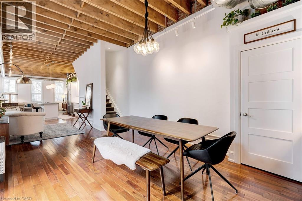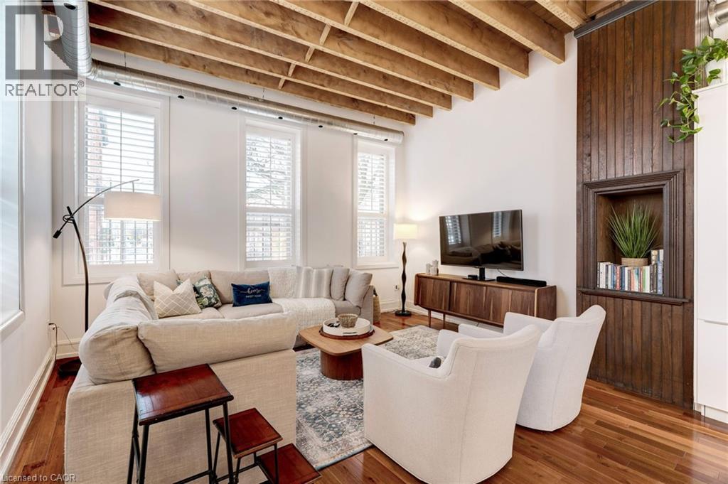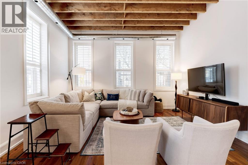Own a piece of Hamilton history in this iconic 3 storey, mixed-use corner building, part of the historic Copp Block (built 1880–1881). The ground level boasts a spacious commercial/retail unit with front and side entrances—Currently leased to an established retail tenant, on a month to month lease, delivering immediate income and flexibility to a purchaser. Above sits a stunning 2-storey residential apartment, offering 3 bedrooms and 2 full bathrooms and was fully renovated in 2013/2014 by CGS Architects. Enjoy the open-concept layout flooded with natural light, soaring 12–13 ft ceilings, hardwood floors throughout, and an impressive ~350 sq ft patio off the third floor—perfect for downtown views and entertaining! Separate hydro, gas, furnaces, and A/C serve residential and commercial units independently. A full basement (partially finished and used by the commercial tenant) adds storage/expansion potential. Prime location on the future LRT route, steps from shops, restaurants, cafes, theatres, and International Village amenities. Nearby parking available. Ideal for live/work setups, investors seeking cash flow, or owner occupiers enjoying luxury living with rental income. (id:4555)