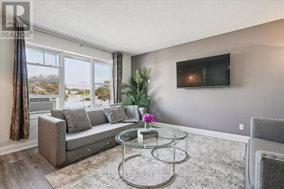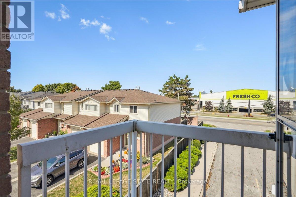 Welcome to this charming 2-bedroom condo, perfectly located on Hamilton's East Mountain! Enjoy the convenience of being steps from shopping, right on a bus route, and just minutes to the LINC and Red Hill expressways. The main level features updated laminate flooring, a stylishly refreshed kitchen with modern appliances, a separate dining area, in-suite laundry, and a walkout to your own private balcony for fresh-air relaxation. Upstairs, you'll find two bright bedrooms and an updated bathroom. Additional highlights include a glass French door, updated lighting, and budget-friendly condo fees. Quick possession is available - move in and enjoy! (id:4555)