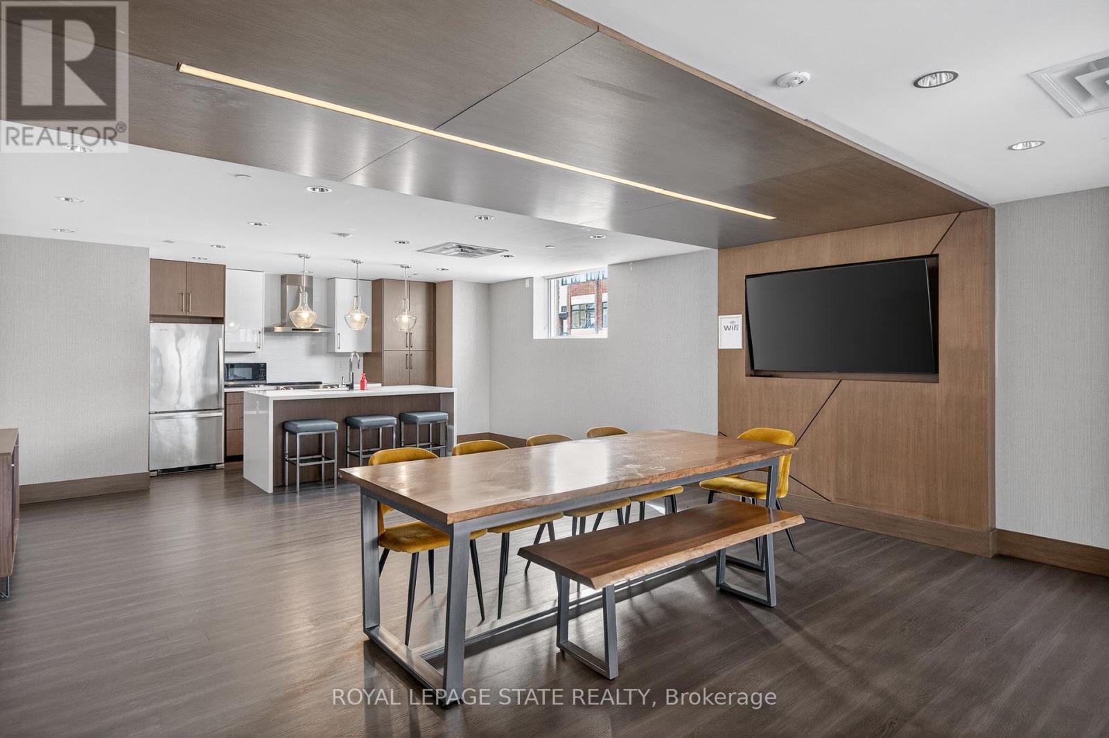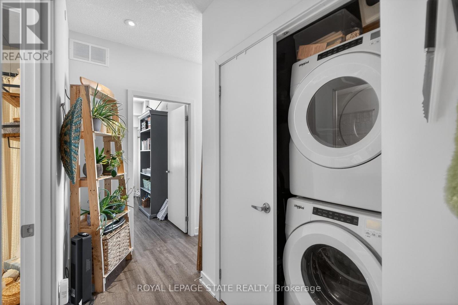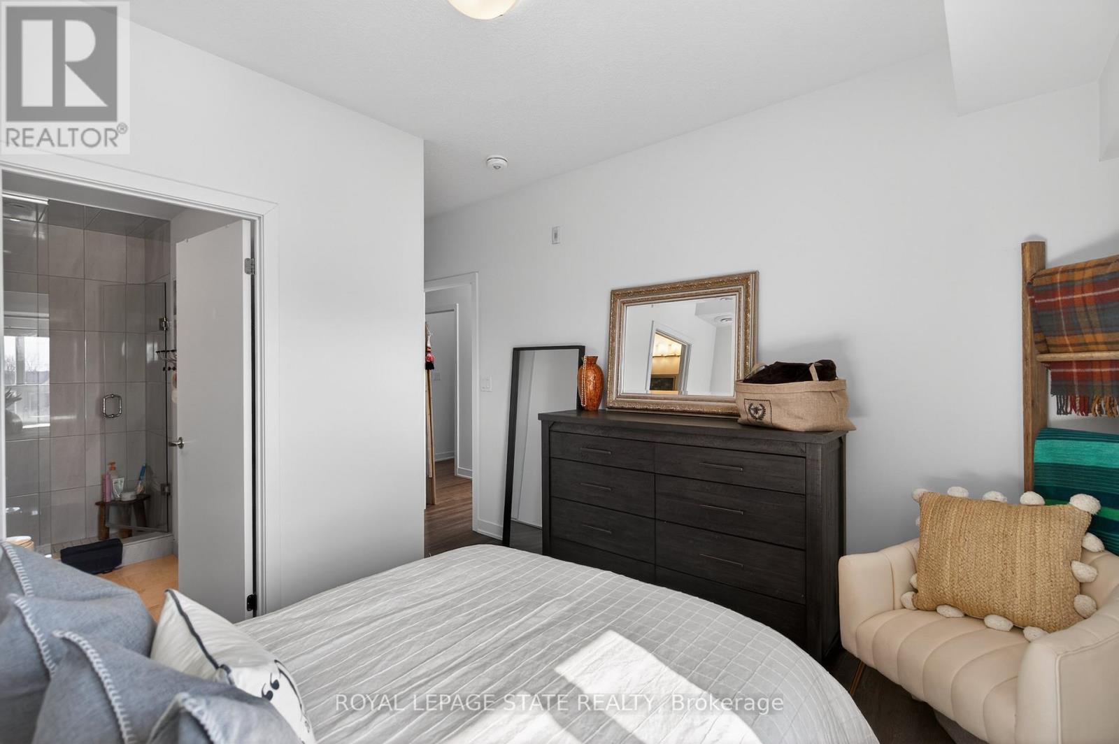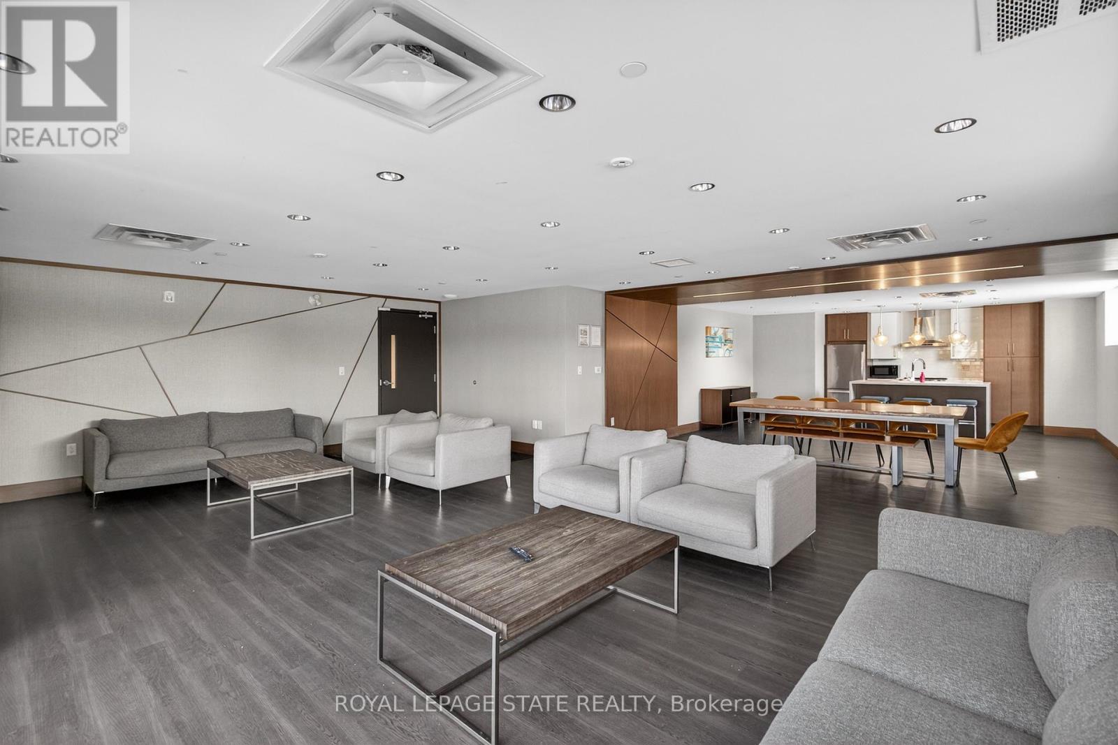 Welcome to the pinnacle of contemporary condo living in Ancaster's prestigious Monterey Heights at 16 Markle Crescent. This 2 bdrm, 2 bath penthouse corner suite offers 857 sq ft of refined living space, thoughtfully designed w/ an open-concept layout that maximizes light, flow, & functionality. The kitch is both stylish & practical, feat S/S app, an attractive tiled backsplash, striking pendant lighting, & a generous centre island w/ seating for 3+ - perfect for casual dining or entertaining. The space seamlessly connects to a formal din area w/ sliding doors that lead to a private covered balcony, creating an effortless indoor-outdoor lifestyle. The form liv rm is framed by dramatic flr-to-ceil windows, flooding the suite w/ natural light & showcasing elevated penthouse views. The primary retreat offers comfort and privacy, complete w/ a 3-pc ensuite w/ an oversized glass shower. A well-proportioned 2nd bdrm & a full 4-pc bath w/ a shower/tub combo provide flex for guests, family, or a home office. In-suite laund adds convenience. This suite also includes 1 underground parking space & a dedicated storage locker (#9). Monterey Heights delivers exceptional amenities designed for modern living, incl a well-equipped fitness centre w/ cardio/strength equip, a yoga/stretch area, & an elegant party lounge w/ a chef-inspired kitchen. The outdoor terrace features multi seating areas - ideal for gathering w/ friends or relaxing on warm summer evenings. Secure entry, underground parking, & meticulously maintained common areas enhance peace of mind. Situated in a convenient location, this address places you steps to shopping, restaurants, groceries, & everyday essentials. Quick access to Highway 403 ensures effortless commuting, while nearby parks, trails, golf courses, & top-rated schools complete the offering. Penthouse living, premium amenities, & an unbeatable Ancaster location - a rare opportunity to enjoy carefree luxury in one of the area's most sought-after buildings. (id:4555)