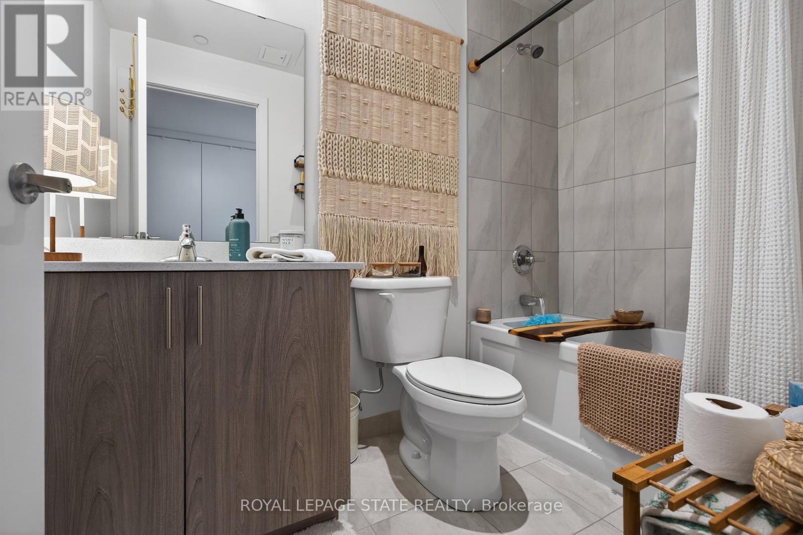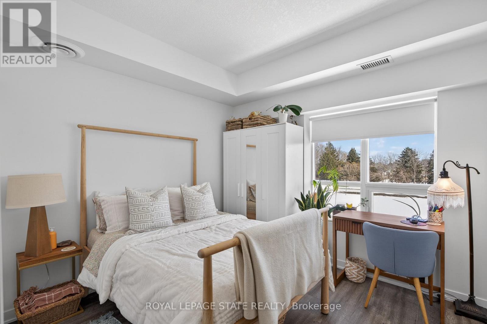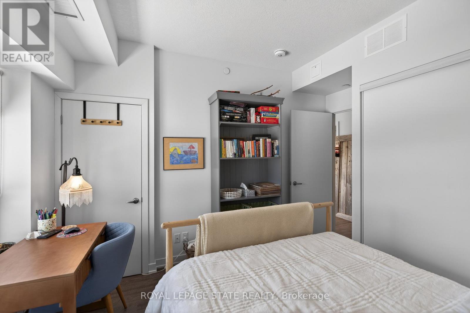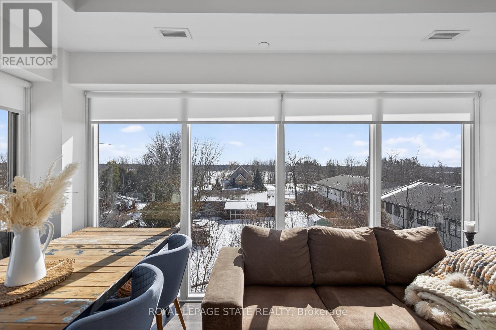 Welcome to the pinnacle of contemporary condo living in Ancaster's prestigious Monterey Heights at 16 Markle Crescent. This 2 bdrm, 2 bath penthouse corner suite offers 857 sq ft of refined living space, thoughtfully designed w/ an open-concept layout that maximizes light, flow, & functionality. The kitch is both stylish & practical, feat S/S app, an attractive tiled backsplash, striking pendant lighting, & a generous centre island w/ seating for 3+ - perfect for casual dining or entertaining. The space seamlessly connects to a formal din area w/ sliding doors that lead to a private covered balcony, creating an effortless indoor-outdoor lifestyle. The form liv rm is framed by dramatic flr-to-ceil windows, flooding the suite w/ natural light & showcasing elevated penthouse views. The primary retreat offers comfort and privacy, complete w/ a 3-pc ensuite w/ an oversized glass shower. A well-proportioned 2nd bdrm & a full 4-pc bath w/ a shower/tub combo provide flex for guests, family, or a home office. In-suite laund adds convenience. This suite also includes 1 underground parking space & a dedicated storage locker (#9). Monterey Heights delivers exceptional amenities designed for modern living, incl a well-equipped fitness centre w/ cardio/strength equip, a yoga/stretch area, & an elegant party lounge w/ a chef-inspired kitchen. The outdoor terrace features multi seating areas - ideal for gathering w/ friends or relaxing on warm summer evenings. Secure entry, underground parking, & meticulously maintained common areas enhance peace of mind. Situated in a convenient location, this address places you steps to shopping, restaurants, groceries, & everyday essentials. Quick access to Highway 403 ensures effortless commuting, while nearby parks, trails, golf courses, & top-rated schools complete the offering. Penthouse living, premium amenities, & an unbeatable Ancaster location - a rare opportunity to enjoy carefree luxury in one of the area's most sought-after buildings. (id:4555)