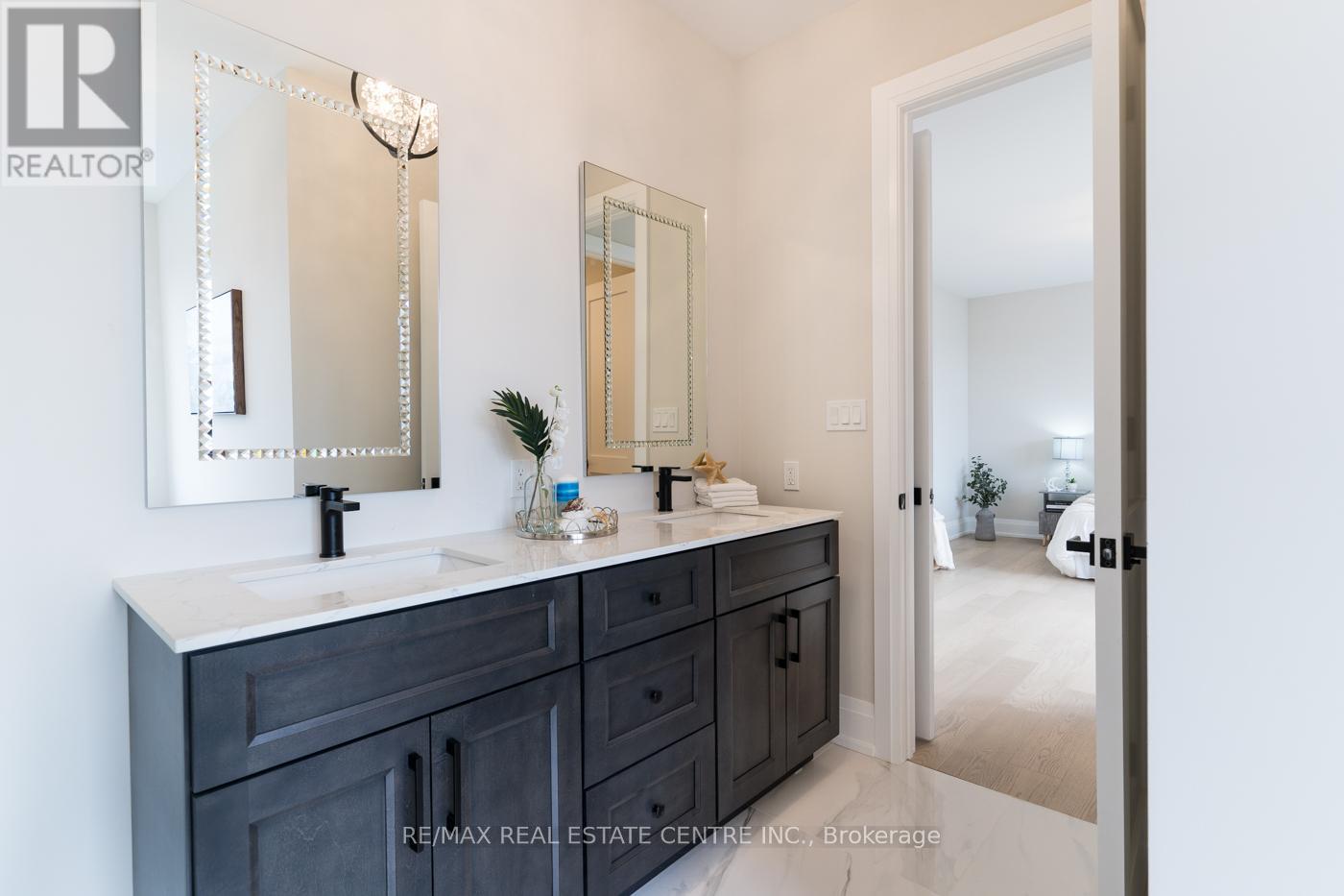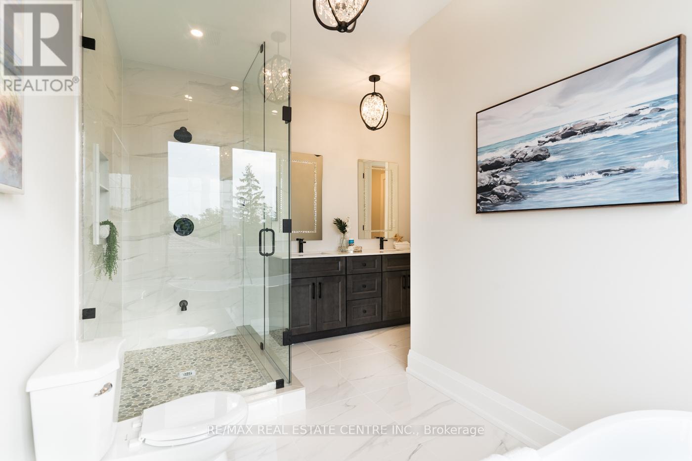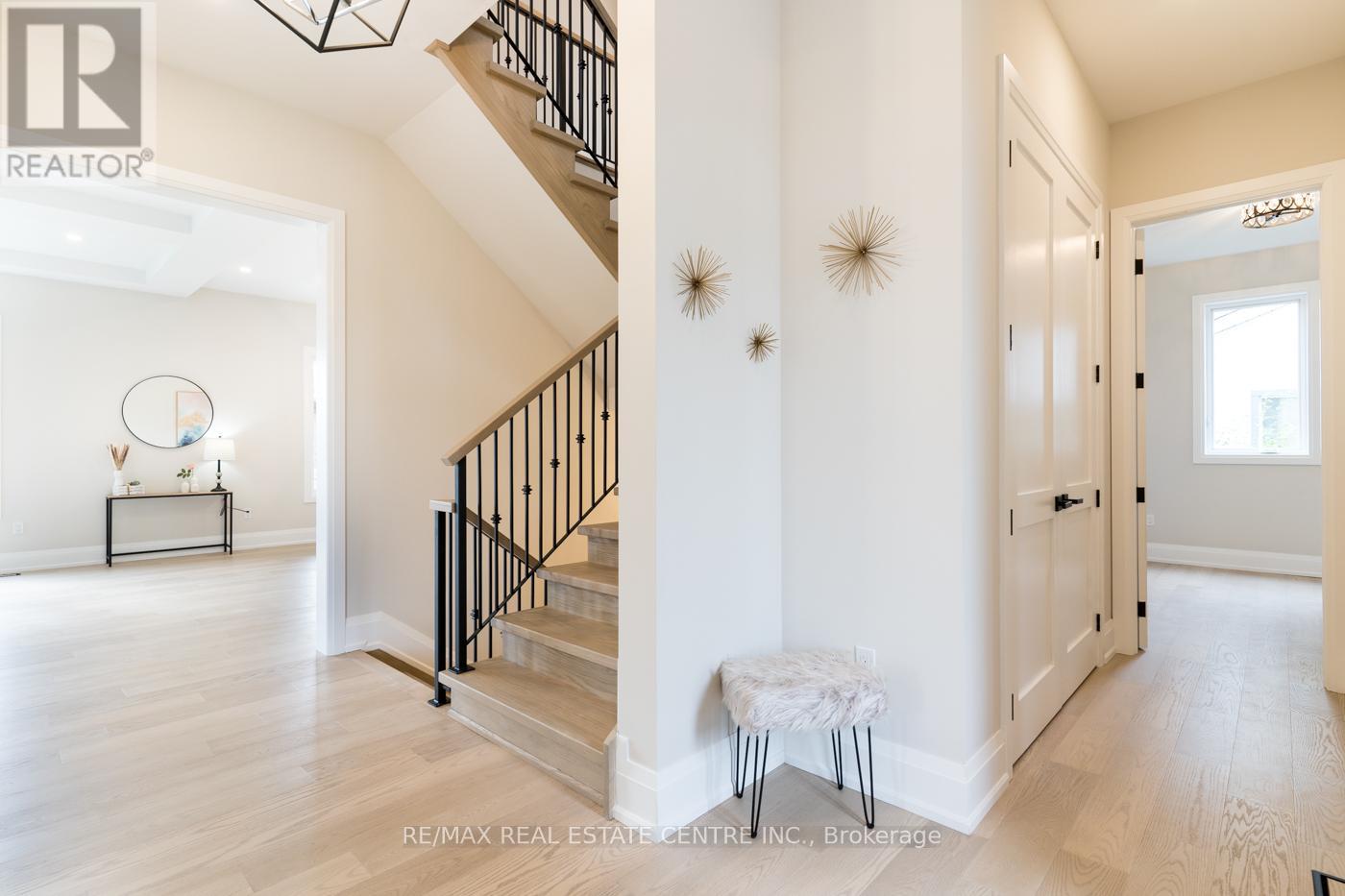 Welcome to a stunning modern 4,500 sq. ft. masterpiece where luxury and craftsmanship unite seamlessly. This custom two-story home epitomizes contemporary sophistication, offering an unparalleled living experience defined by soaring 10-foot ceilings on the main level and 9-foot ceilings upstairs. At the heart of the home is a sleek, designer kitchen featuring custom cabinetry with pull-out drawers, a dedicated servery, and an oversized walk-in pantry-a perfect blank canvas awaiting your personal choice of premium appliances. Adjacent is the expansive, open-concept living area highlighted by a striking coffered ceiling, an elegant electric fireplace, and breathtaking windows that bathe the space in natural light. The main level also features a private office behind grand 8-foot doors, offering a quiet retreat or ideal workspace. The finished basement, complete with a 2-piece bathroom and 9-foot ceilings, adds versatile space for recreation or fitness. Upstairs, the primary suite serves as a serene escape with a spacious walk-in closet and a spa-inspired 5-piece ensuite. A second bedroom features a private 3-piece ensuite, while two additional bedrooms share a well-appointed 5-piece bathroom. Step outside to a private backyard oasis with a covered patio, BBQ gas hookup, and lush landscaping. Additional high-end features include an oak staircase with iron spindles, a hardwired security system, and Wi-Fi access points on each floor. Located in a sought-after neighborhood just minutes from the QEW, a future GO station, and top-rated schools, this exceptional home offers the perfect blend of luxury and location. (id:4555)