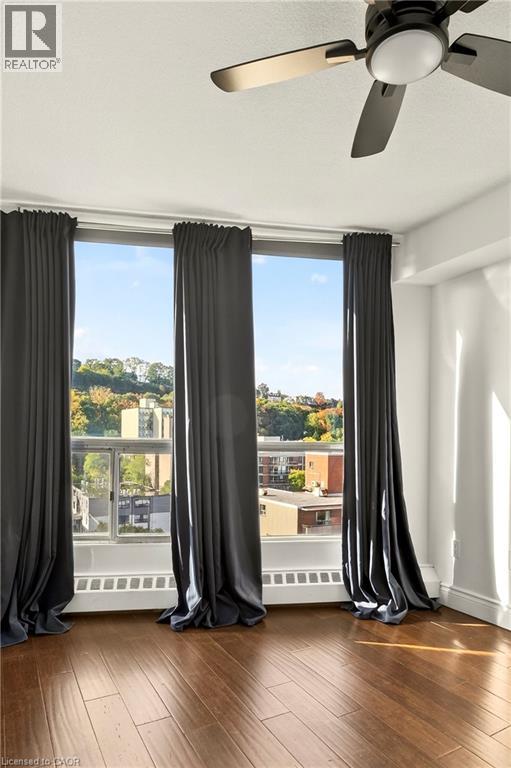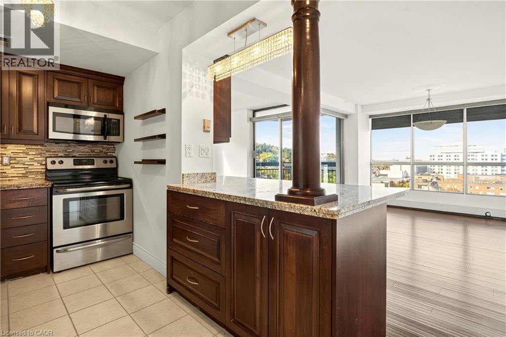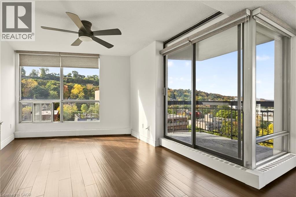 Exceptional views from every window! Discover this stunning 2-bedroom, 1.5-bath, 18th floor condominium apartment with balcony, offering spectacular southwest views overlooking the escarpment and city skyline — a true million-dollar vista. The over 1100 square feet of living space includes an updated kitchen featuring granite countertops, stainless-steel appliances, and a breakfast bar, perfect for casual meals at home. Bamboo flooring throughout adds warmth and style to the spacious interior. Conveniently located within walking distance to St. Joseph's Hospital and close to public transit, mountain access roads and the Hunter Street GO Centre, this well-maintained building offers both comfort and practicality. The building boasts numerous remarkable amenities including a gym, swimming pool, squash court, games room, and party room. Recent renovations have transformed the common areas with a new lobby, refreshed hallways, and modernized unit doors, giving the property a contemporary look that feels like a brand-new building. Underground parking is available for an additional fee. Don't miss this exceptional opportunity to own a move-in-ready unit with breathtaking views and premium amenities. Schedule your showing today! (id:4555)