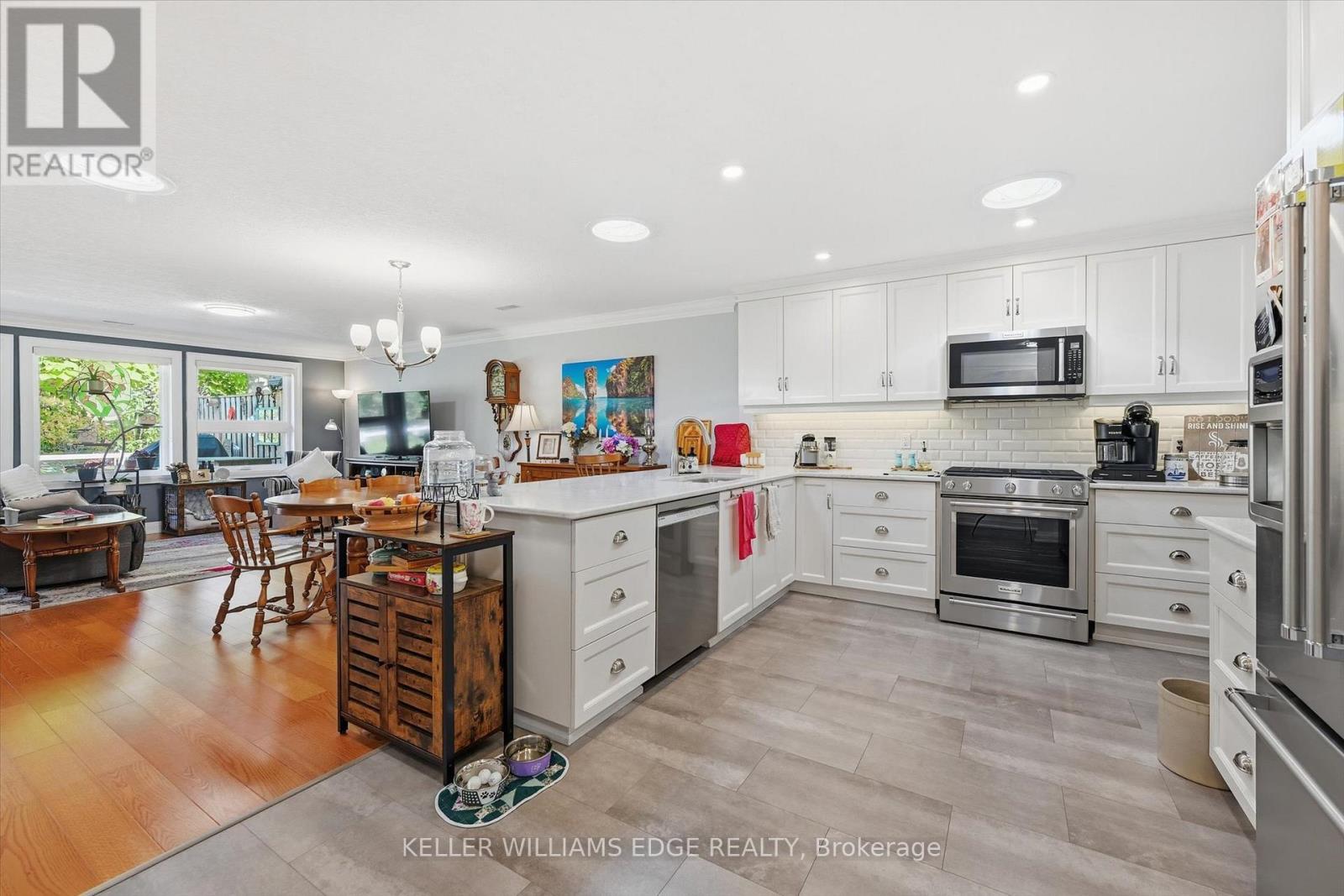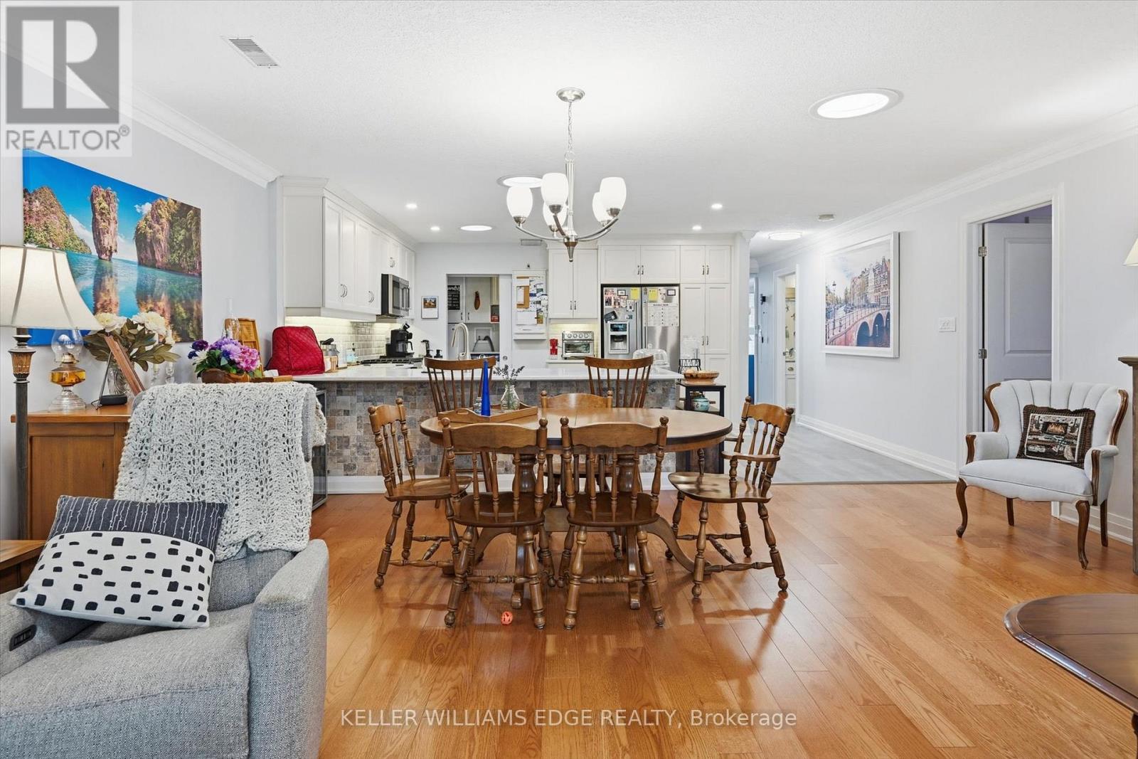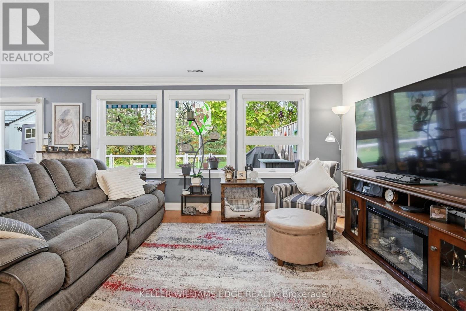 Location location location. Discover St. Elizabeth Village-a vibrant 55+ community in Hamilton where every day feels like a getaway! Live life fullest in this resort-style community offering an exceptional lifestyle for active adults, with four-season indoor and outdoor recreation including fitness facilities, walking trails, swimming, social clubs, on-site retail, dining, entertainment, and festive events -all within a beautiful landscaped neighbourhood surrounded by natural scenery, and breathtaking views. This updated bungalow is perfectly situated with a serene forest backdrop and a clear view of a tranquil pond from the cozy covered front porch -perfect for relaxing. The home features two spacious bedrooms, both with walk-in closets (one with a vaulted ceiling), two full bathrooms, an open-concept living area with gas fireplace, a great bonus den area, carpet-free living including engineered hardwood floors, and elegant crown moulding. The stylish kitchen is filled with natural light from three sun tunnels and offers Quartz countertops, subway tile backsplash, and breakfast bar. Enjoy inside access to the impressive 12'ceiling garage complete with epoxy flooring, a workshop area including a sturdy Lee Valley workbench and peg-board wall, and an amazing standable loft area with drop-down stairs -a valuable space for storage and organization! The backyard retreat is ideal for relaxation and entertaining, featuring a composite deck with glass railing, a 16' x 12' awning, a deck fireplace to gather around, a BBQ with gas hookup, a storage shed, and a raised veggie garden bed. Whether you're seeking connection, convenience, relaxation, or adventure, St. Elizabeth Village offers it all -right at your doorstep! (id:4555)