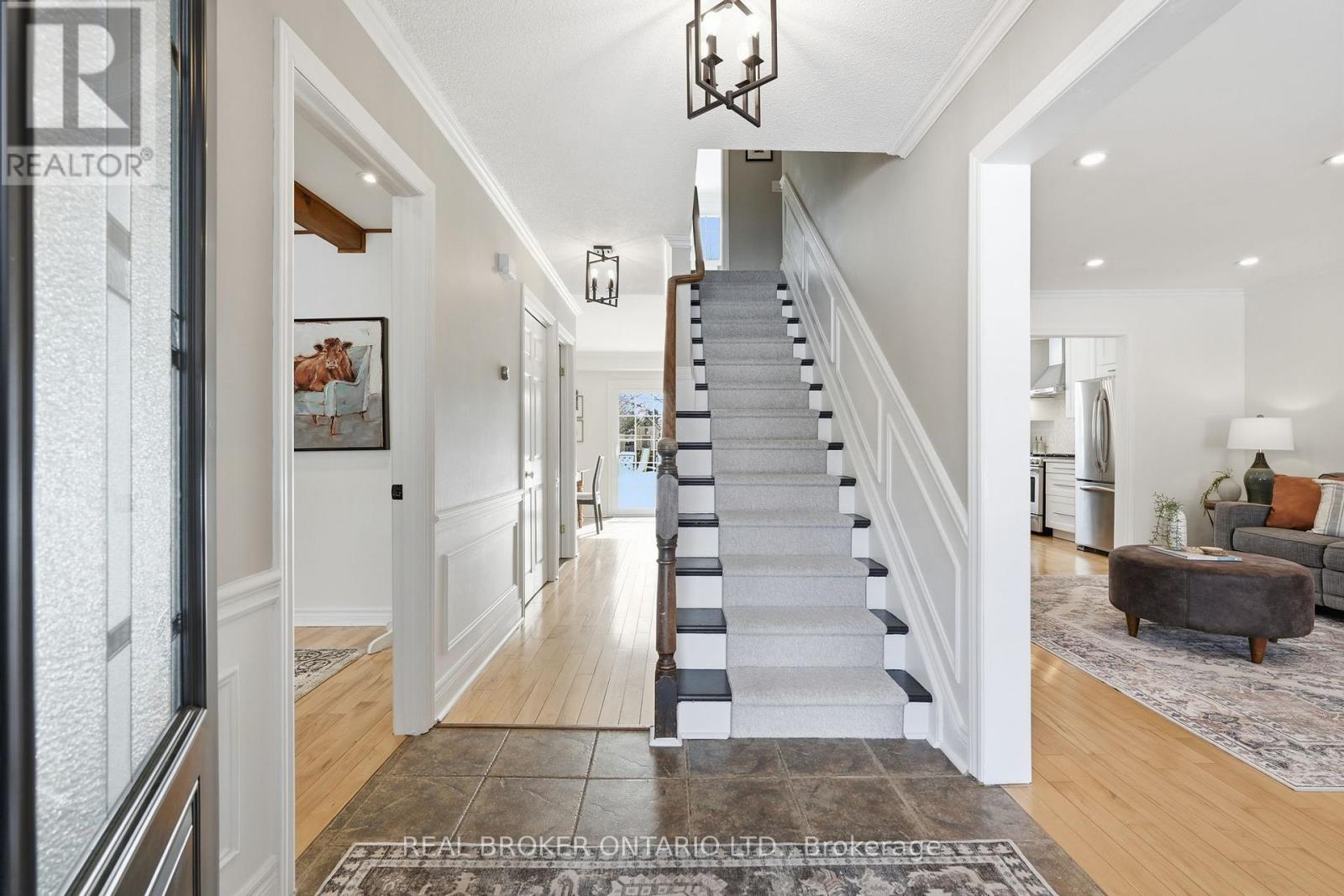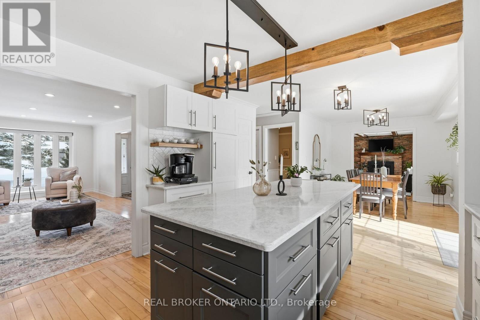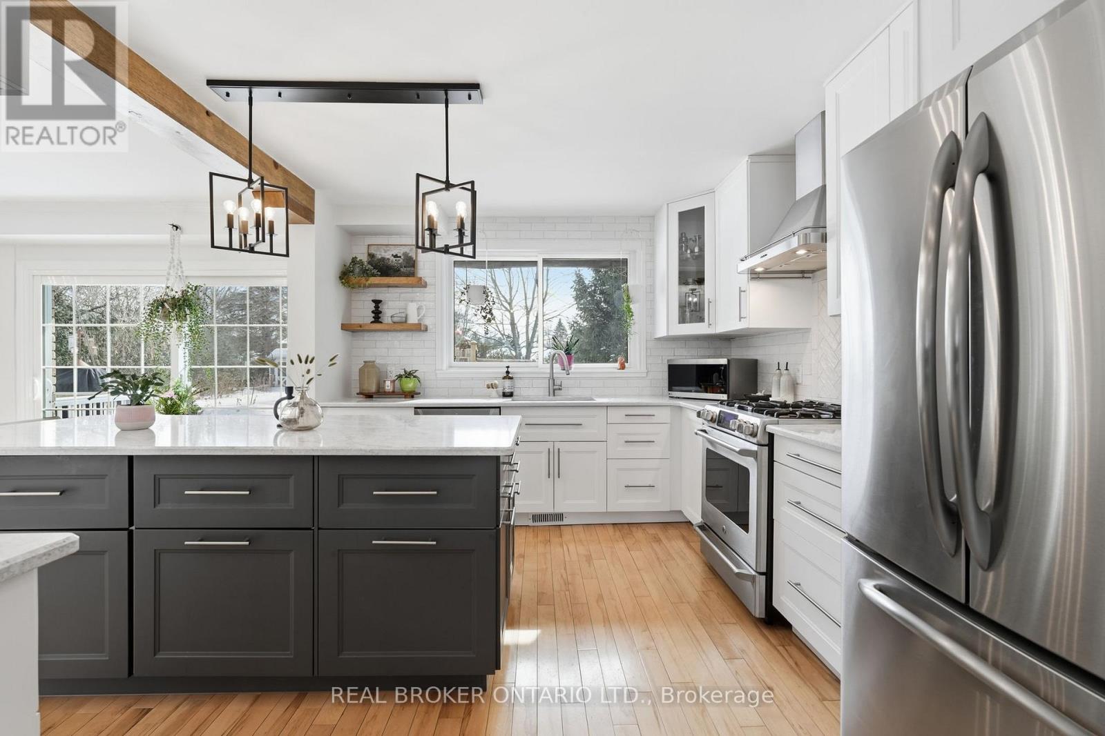 This is the one families wait for. Set on a private 1/2 acre estate lot in one of Carlisle's most established neighbourhoods, 24 Bannisdale Way offers the kind of homey warmth and substance that simply can't be replicated in newer builds.Thoughtfully renovated - yet never stripped of its soul - this two-storey home blends beautiful country charm with meaningful modern updates. Antique wide-board pine floors, exposed wood beams, and striking brickwork create character and comfort in equal measure. Every room feels intentional - spaces designed with purpose, allowing for quiet privacy when needed and natural gathering when it matters.The fully renovated 2025 kitchen is the heart of the home, finished with quartz countertops and a generous island that opens seamlessly to the dining area - inviting conversation & connection. Two separate main-floor family rooms offer flexibility for growing families, including one anchored by a full brick fireplace with brand new instert. A dedicated home office and powder room complete the main level. Upstairs, four spacious bedrooms provide room to grow, including a primary suite with a private 3-piece ensuite and a well-appointed 5-piece family bath.The finished lower level offers a large recreation room, 3-piece bathroom, and laundry - space for movie nights, hobbies, and everything in between. Big-ticket updates have already been taken care of, including all windows and doors, garage doors, furnace (approx. 4 years old), and a Generac generator. Outdoors, the backyard feels like a private retreat - mature trees towering overhead, established garden beds, and a beautiful pond creating a peaceful, storybook setting. The septic system has been ideally positioned to the side and rear of the property, leaving the centre of the yard perfectly suited for a future in-ground pool - a blank canvas for your own backyard paradise. A home with character. A home with room to grow. A home where memories are waiting to be made. (id:4555)