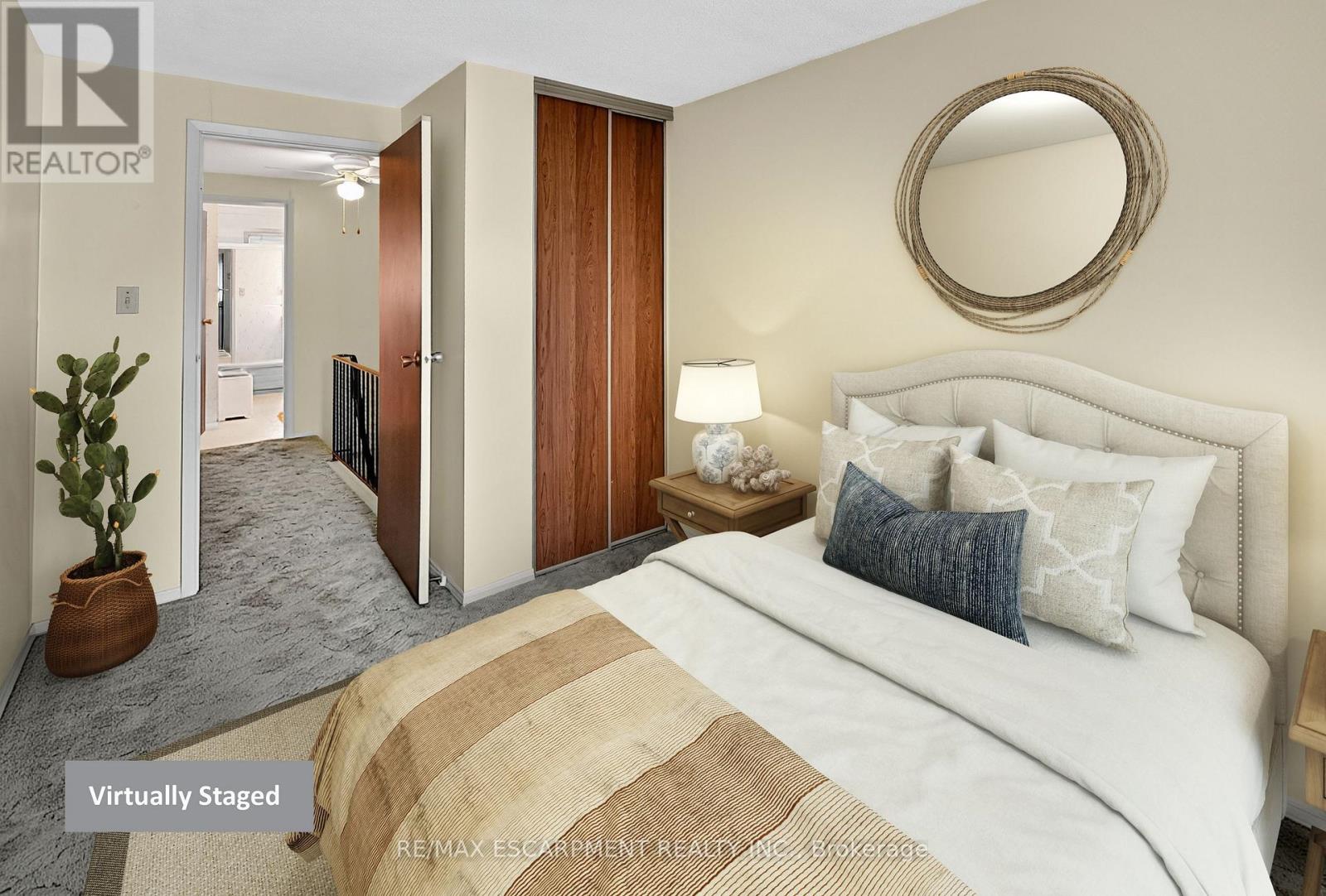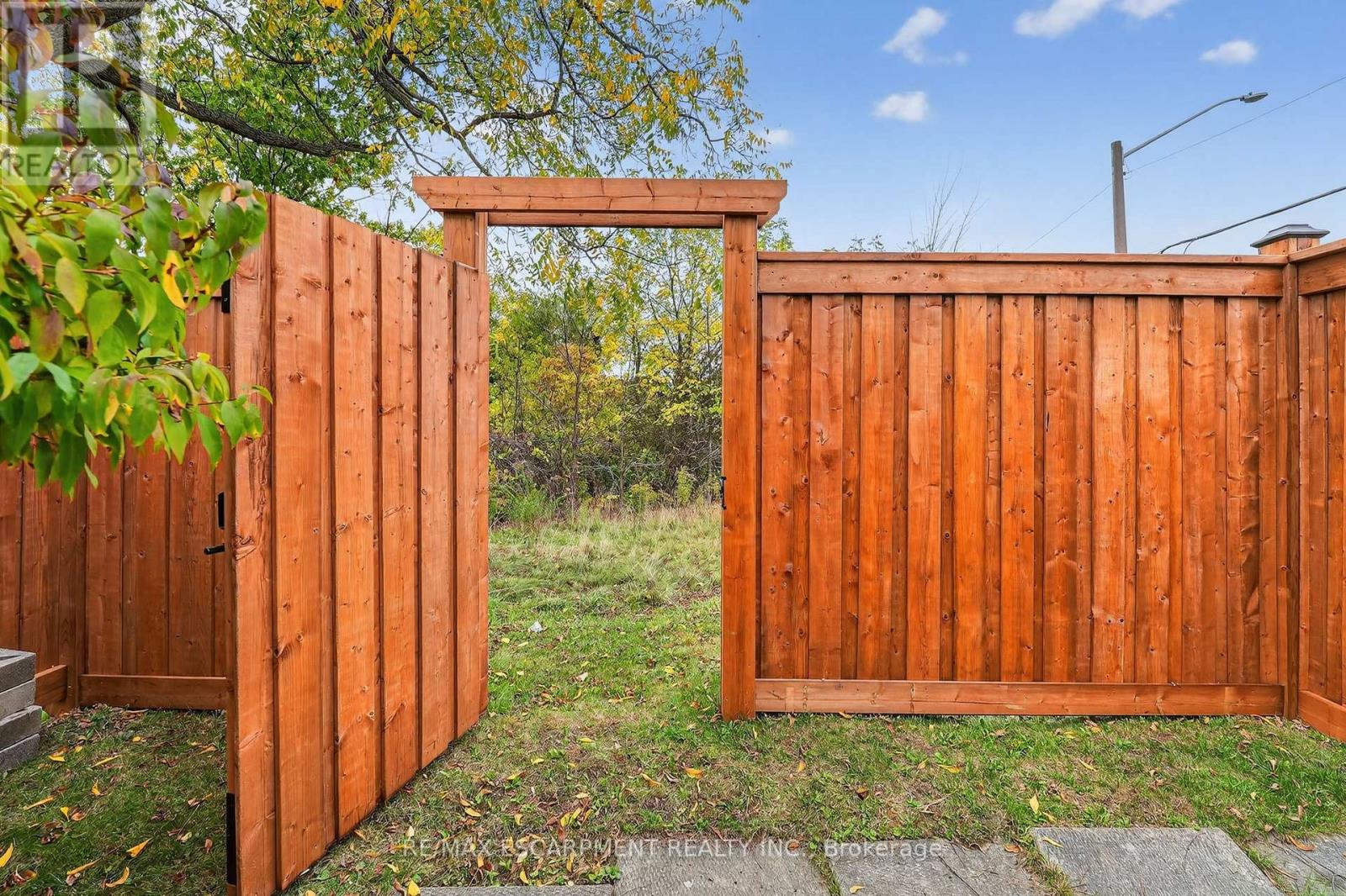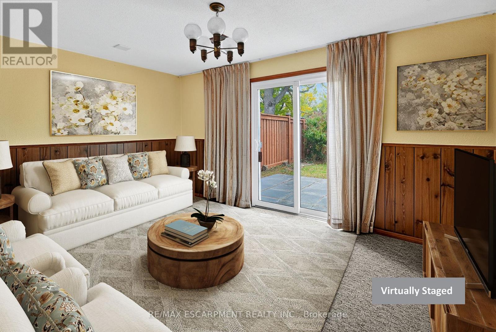TRADITIONAL CHARM ... Experience the vintage character of yesteryear blended with everyday functionality in this traditional end-unit condo townhome at 1-34 Bow Valley Drive in desirable Stoney Creek. Thoughtfully maintained and full of warmth, this home offers a comfortable and inviting layout that's ideal for families, professionals, or anyone seeking low-maintenance living. Step inside the GROUND LEVEL that adds valuable living space with a cozy family room with sliding doors leading to a fully fenced backyard. The yard features a patio, BRAND NEW FENCE with gate access to greenspace, and a garden shed, creating a private and functional outdoor retreat. A 2-pc bath and laundry room complete the level. A bright main level features a spacious living room with beautiful bay window, creating a naturally lit and welcoming atmosphere. The dining area provides a dedicated space for shared meals and gatherings, while the EAT-IN KITCHEN offers a classic setup with plenty of potential to personalize over time. Upstairs, find three generous bedrooms and a 4-pc bath. Each space reflects the thoughtful care of a well-loved home with the nostalgic details that make it unique. With a private driveway and attached garage, this property offers convenience and comfort in equal measure. Whether you're starting out, scaling down, or simply seeking a place that feels like home, this charming residence delivers timeless appeal. Discover the ease of condo living surrounded by parks, trails, public transit, highway access, and local amenities all within the welcoming community of Stoney Creek. Some images virtually staged. CLICK ON MULTIMEDIA for virtual tour, drone photos & more. (id:4555)