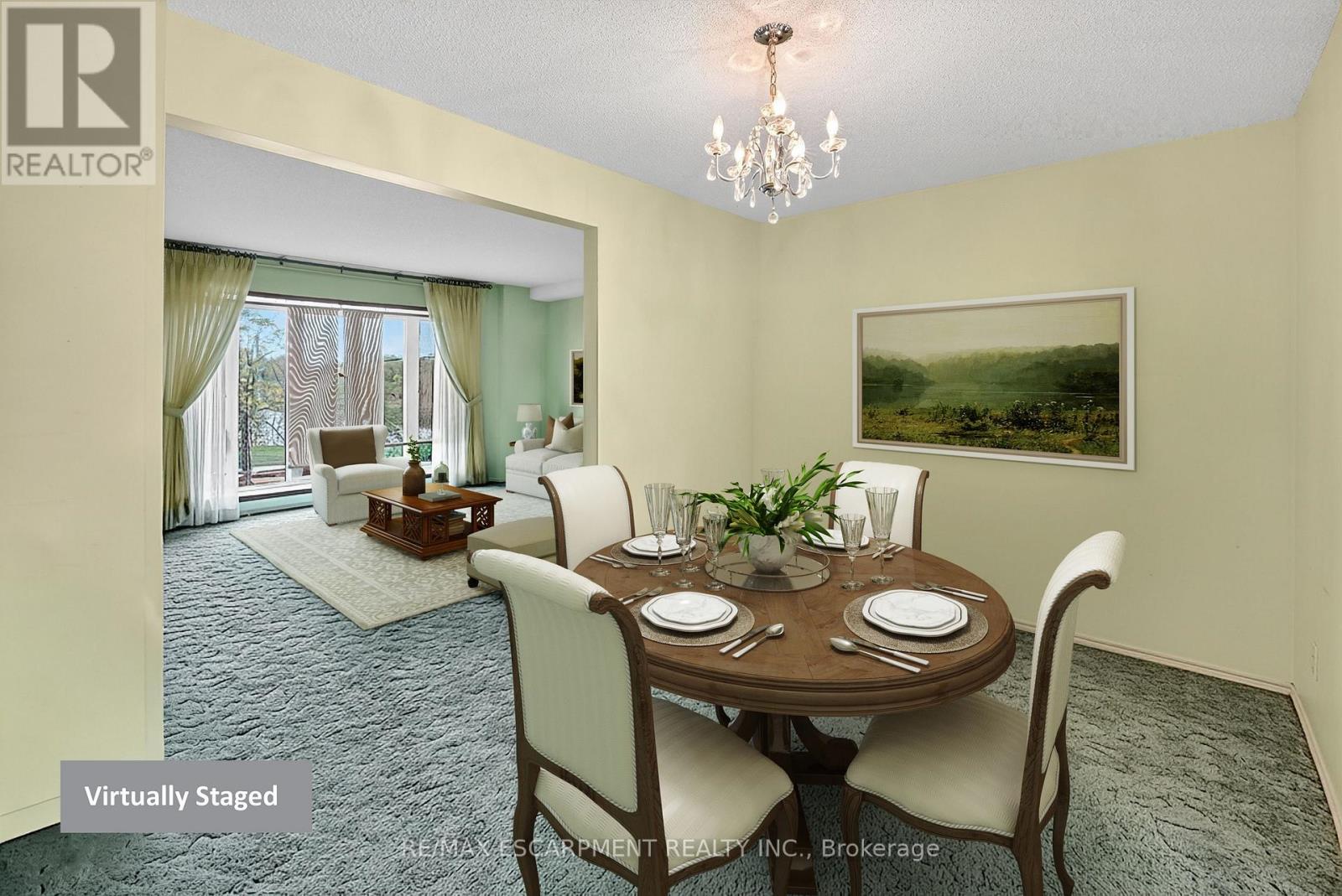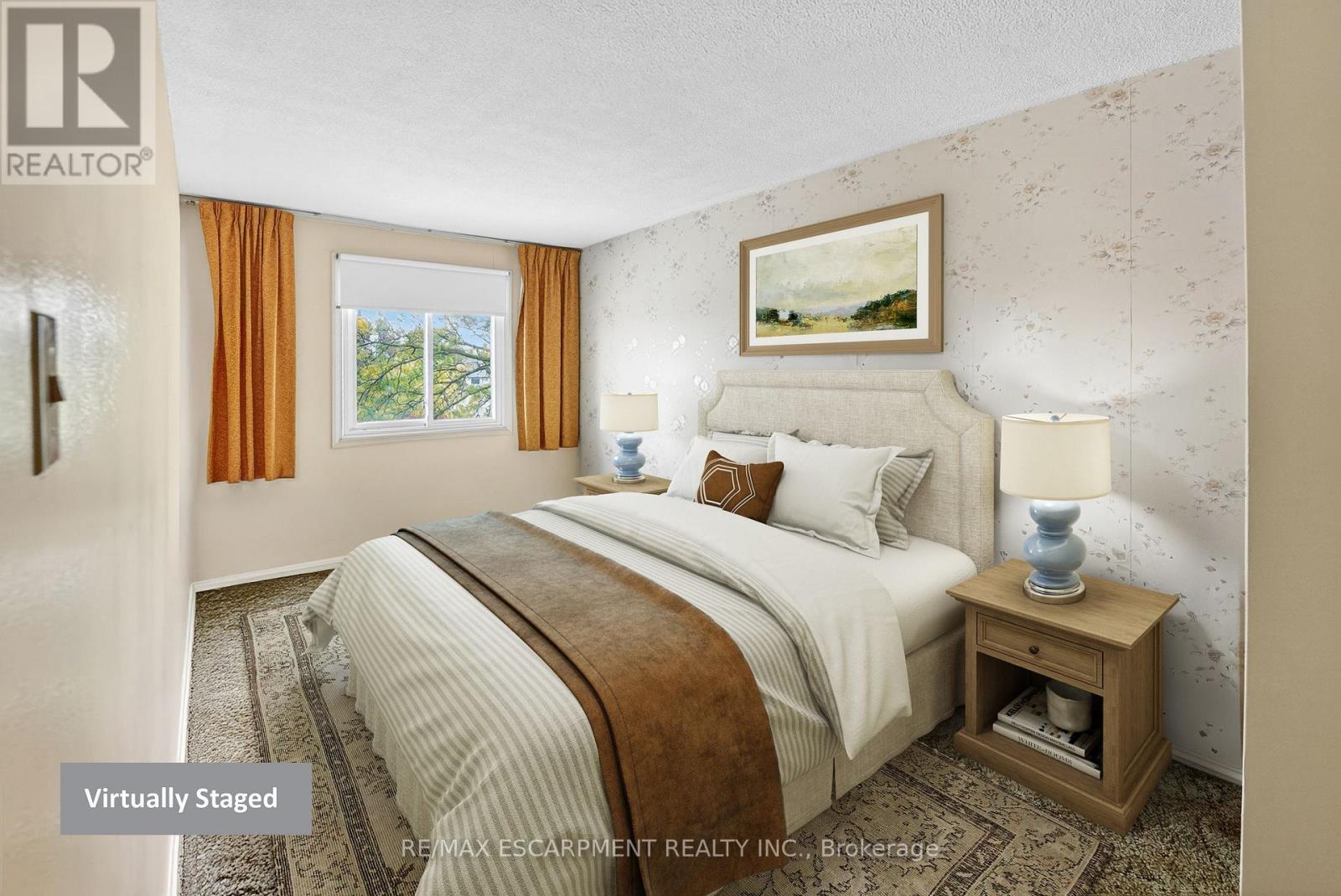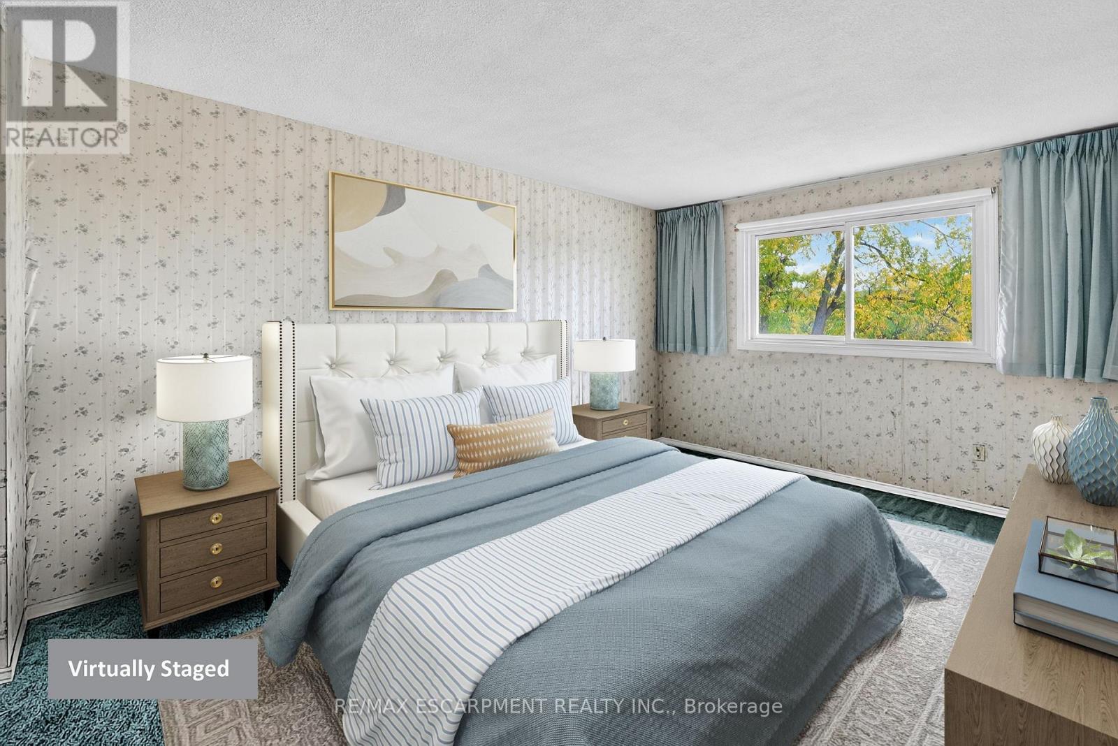 TRADITIONAL CHARM ... Experience the vintage character of yesteryear blended with everyday functionality in this traditional end-unit condo townhome at 1-34 Bow Valley Drive in desirable Stoney Creek. Thoughtfully maintained and full of warmth, this home offers a comfortable and inviting layout that's ideal for families, professionals, or anyone seeking low-maintenance living. Step inside the GROUND LEVEL that adds valuable living space with a cozy family room with sliding doors leading to a fully fenced backyard. The yard features a patio, BRAND NEW FENCE with gate access to greenspace, and a garden shed, creating a private and functional outdoor retreat. A 2-pc bath and laundry room complete the level. A bright main level features a spacious living room with beautiful bay window, creating a naturally lit and welcoming atmosphere. The dining area provides a dedicated space for shared meals and gatherings, while the EAT-IN KITCHEN offers a classic setup with plenty of potential to personalize over time. Upstairs, find three generous bedrooms and a 4-pc bath. Each space reflects the thoughtful care of a well-loved home with the nostalgic details that make it unique. With a private driveway and attached garage, this property offers convenience and comfort in equal measure. Whether you're starting out, scaling down, or simply seeking a place that feels like home, this charming residence delivers timeless appeal. Discover the ease of condo living surrounded by parks, trails, public transit, highway access, and local amenities all within the welcoming community of Stoney Creek. Some images virtually staged. CLICK ON MULTIMEDIA for virtual tour, drone photos & more. (id:4555)