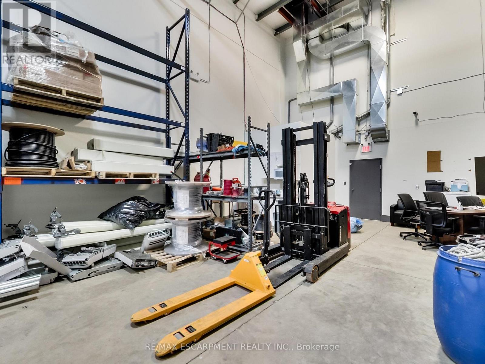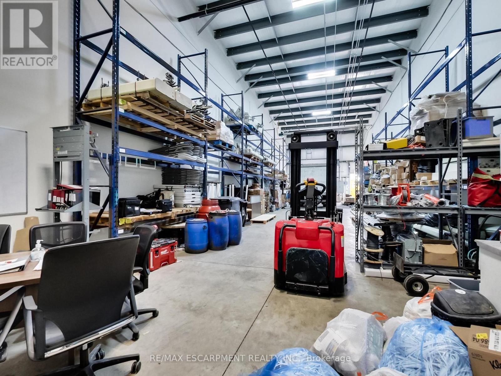 Terrific clean bright industrial unit facing the QEW in Stoney Creek with excellent signage and exposure. The space is part of a modern multi unit Industrial/Commercial/Office complex. The total size is 3,803+/- sq. ft., consisting of approximately 3,000 sq. ft. on the ground floor: 2,050+/- sq. ft. of industrial/warehouse space (with a washroom and kitchenette) and 950+/- sq. ft. of open-concept, air-conditioned, collaborative office space with 1 washroom and 1 private office. There is a separate 800+/- sq. ft. office space on the second floor; it is bright, open concept, air conditioned and includes a 3rd washroom. 4 parking spots included plus plenty of in-common, on-site parking. The unit has a 14'h x 12'w drive in door, 600 volt hydro service, radiant heat, and is just minutes from the Fruitland Road/QEW exit. Plenty of amenities are nearby and in close proximity to Winona Crossings, Costco, the GO Station, and more. Don't miss this remarkable opportunity. (id:4555)