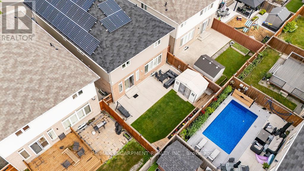 Stunning Stoney Creek Mountain Home Nestled in a prime location. This beautifully designed 2,553 sq. ft. home offers an exceptional layout perfect for families. Features a main floor office which can be used as a 5th bedroom. Enjoy the convenience of an attached double garage with inside access to a spacious main floor mudroom. The exposed aggregate concrete driveway fits up to 4 vehicles. The fully fenced backyard was professionally landscaped in 2024 and includes new grass (front and back), a concrete patio, garden shed, and a security camera system. Inside, you'll find countless upgrades-highlighted by granite counter tops and pot lights throughout, a newer ensuite shower installed in 2024. Bonus: $330/year in passive income from a solar panel contract. A must-see! (id:4555)