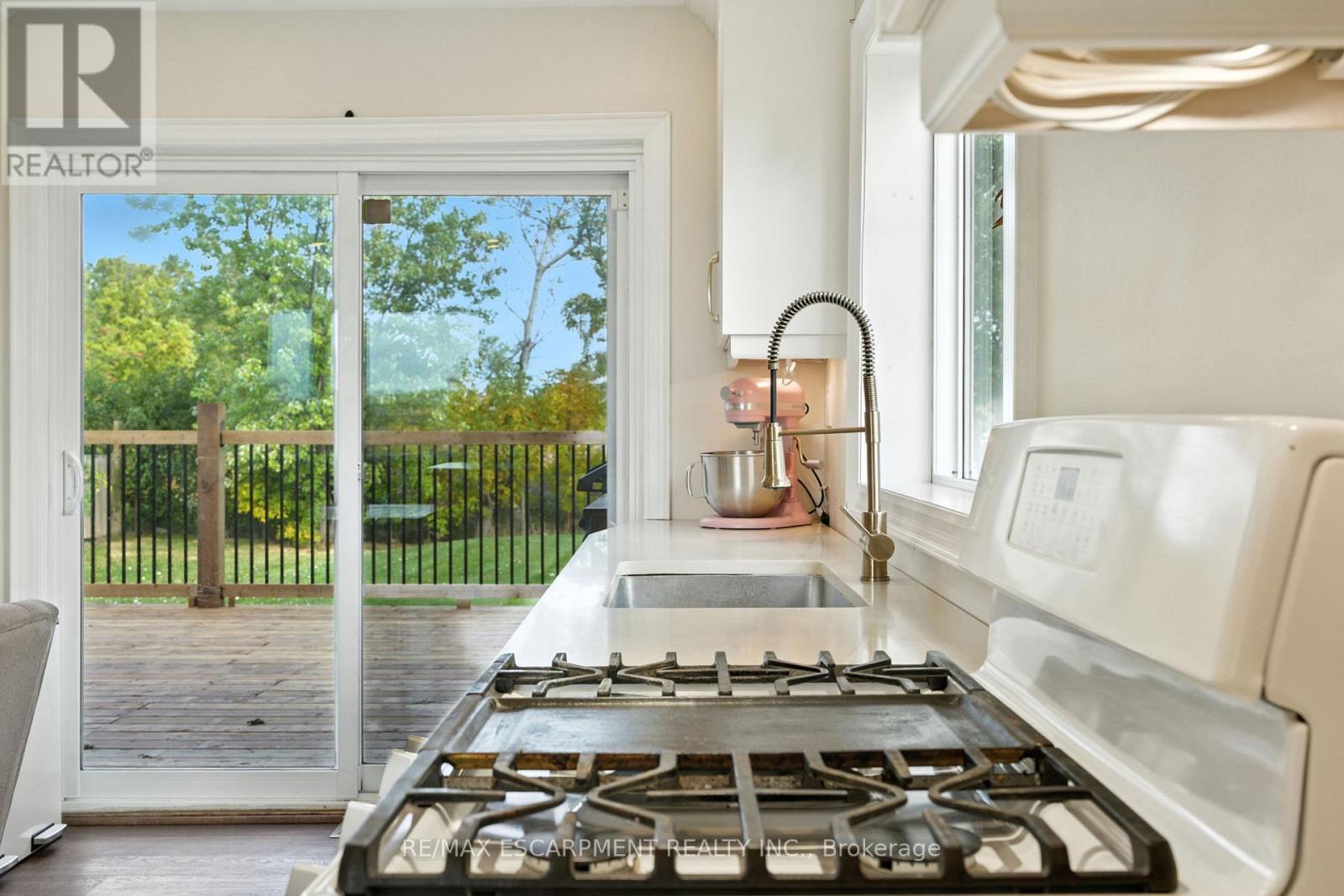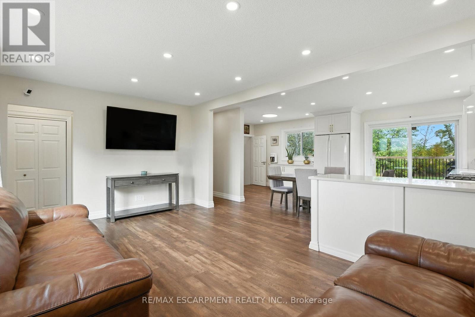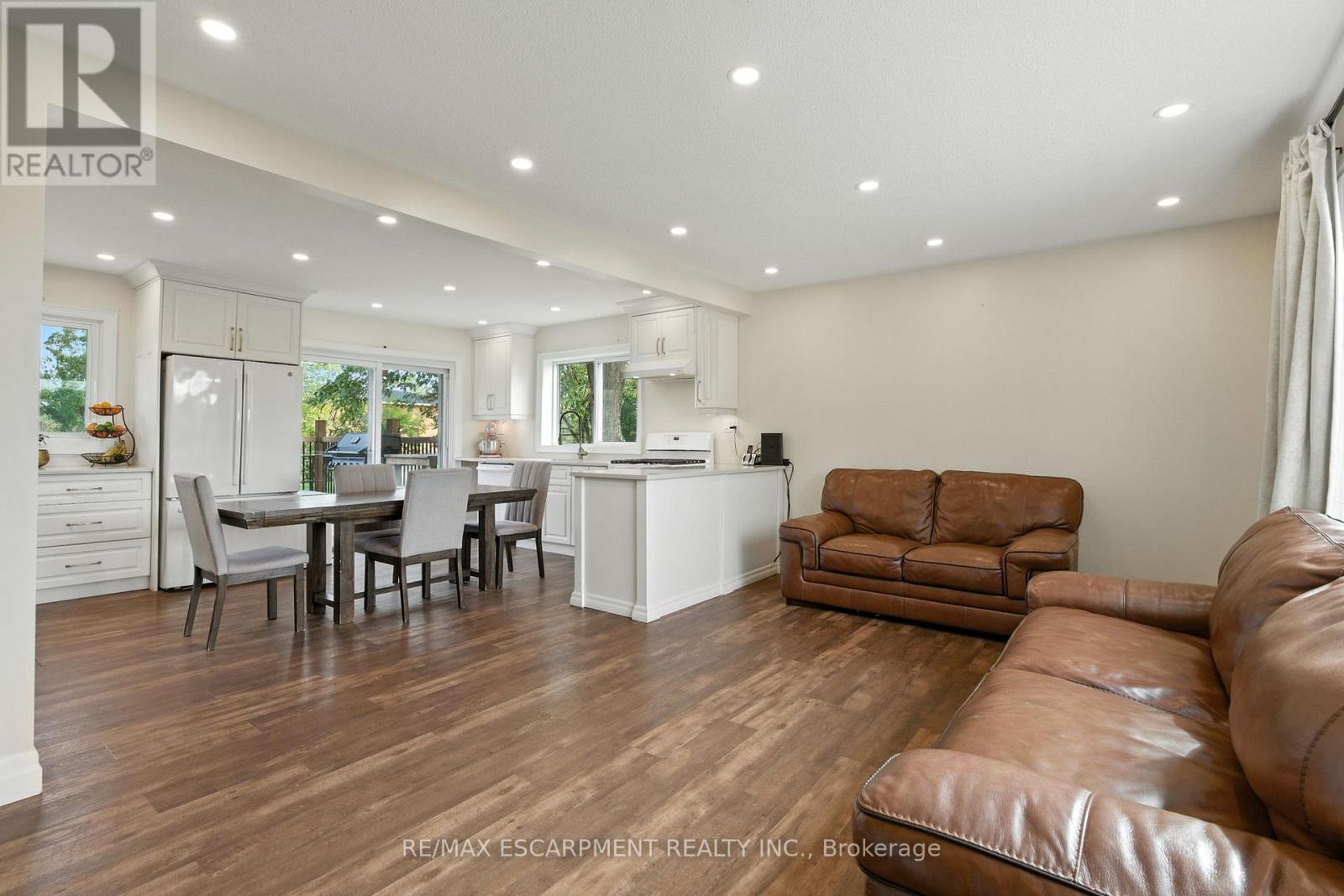 Welcome home! This beautiful turnkey home has over $200,000 in upgrades - TRULY nothing left to do but move on in! Nestled on a tree-lined lot just shy of 1/2 acre, this fully updated and upgraded home is mere minutes from the city, but feels like your very own private piece of paradise. The open concept main floor offers seamless LVP flooring, with a brightly lit living room opening to an eat-in kitchen. The well-appointed chef's kitchen features upgraded cabinetry offering loads of storage space, beautiful stone countertops, and a huge pantry, as well as plenty of space for a large dining table. The 4pc bathroom is steps from three generous bedrooms, each of which features tons of natural light and designated storage space. The lower level offers outside entry to the backyard, offering the perfect space for an in-law, nanny suite, or teen retreat. A massive primary bedroom, 3pc bathroom and plenty of storage space sit above-grade, while a spacious rec room (with kitchen rough-in for versatility), utility room and laundry room finish off the basement level. Upgrades and features are too numerous to mention, but include furnace, well pump, and plumbing (2020), windows (2020 and newer), kitchen/flooring and appliances (2020/21), roof (2024), entire septic system and ejector pump (2025), 100amp panel (2025). Located minutes from restaurants, groceries, schools and shopping, and just a short drive to Costco, Limeridge mall, major arteries (Red Hill/Linc/QEW), this showstopper offers convenience and peace all in one gorgeous home. Don't wait until this one is gone! (id:4555)