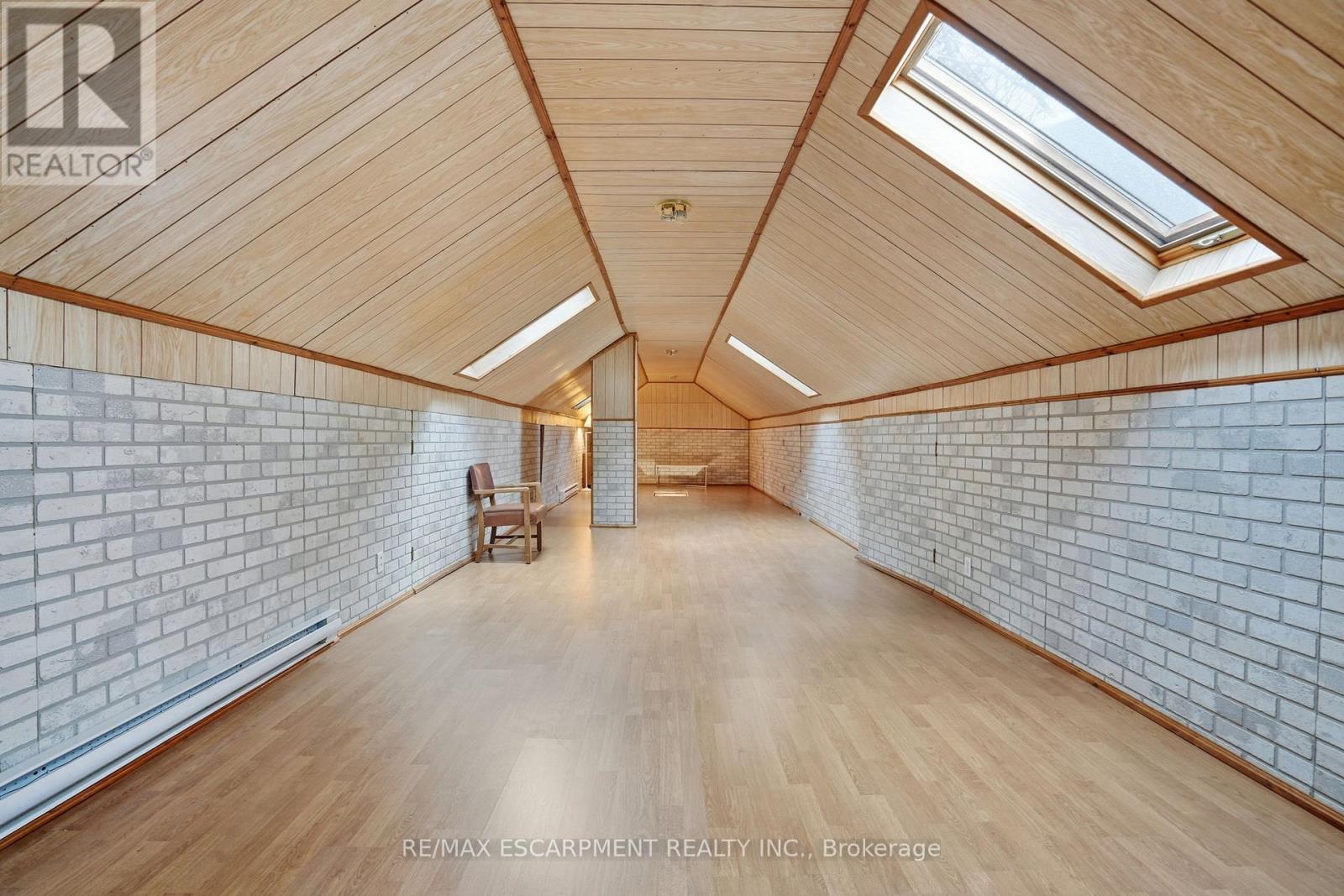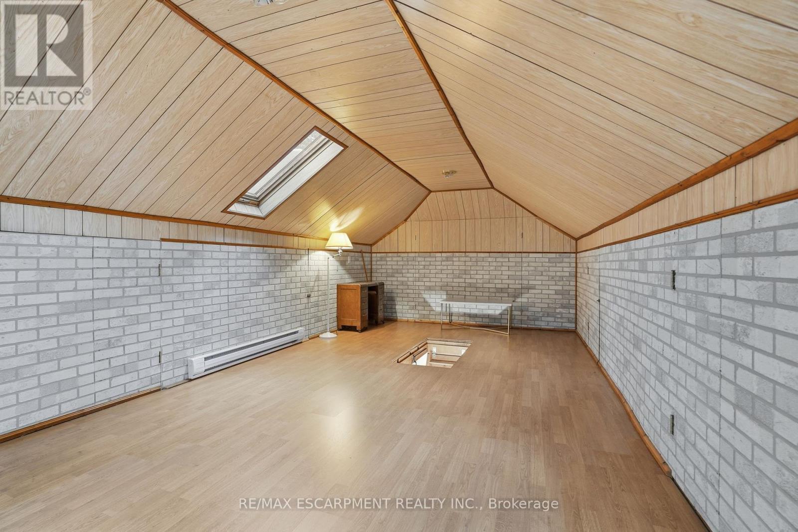 Set well back from the road in the highly desirable neighbourhood of Westdale, this 1952 bungalow sits on a remarkable 75 by 182 foot (.3 acre) lot with a ravine running along the side of the property. Surrounded by mature trees and positioned away from neighbouring homes, the setting feels private, peaceful, and full of possibility.An enclosed front porch welcomes you and creates a charming entry before stepping inside. The main floor offers 1452 square feet with three bedrooms and original hardwood flooring. A large formal living room and separate dining room provide generous principal spaces ready to be refreshed or reimagined. The kitchen reflects its era and presents an excellent opportunity to design something truly special. The home is filled with original charm including detailed plaster ceilings and beautiful wood trim. The finished basement offers another entire level of living space including three additional bedrooms, a spacious recreation room, an apartment sized kitchen, second laundry area, and two bathrooms each with a shower. The home features both a side entrance and a walk down entrance to the basement that could be reopened. There is strong potential for an in-law suite or rental. A pull-down staircase leads to a finished attic with skylights that could serve as a playroom, studio, or exceptional storage space. The attached two car garage is very large and features brand new doors. This is more than a beautiful ravine lot. It is a solid, character filled home in one of Westdale's most sought after neighbourhoods, offering immediate enjoyment with the opportunity to thoughtfully update over time. RSA. (id:4555)