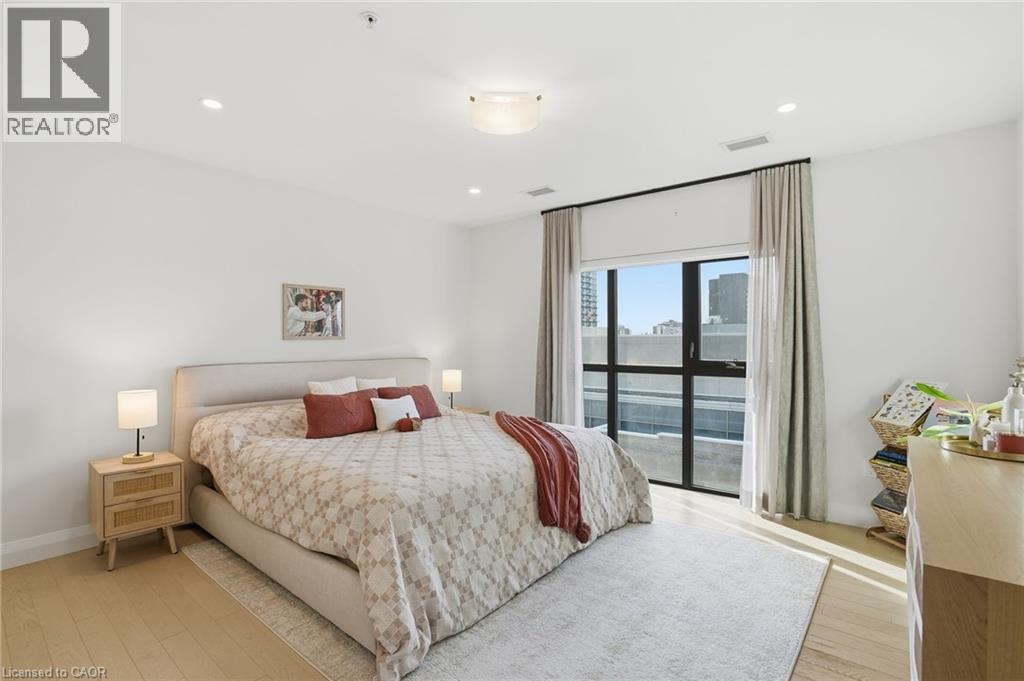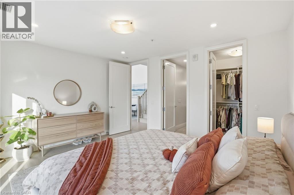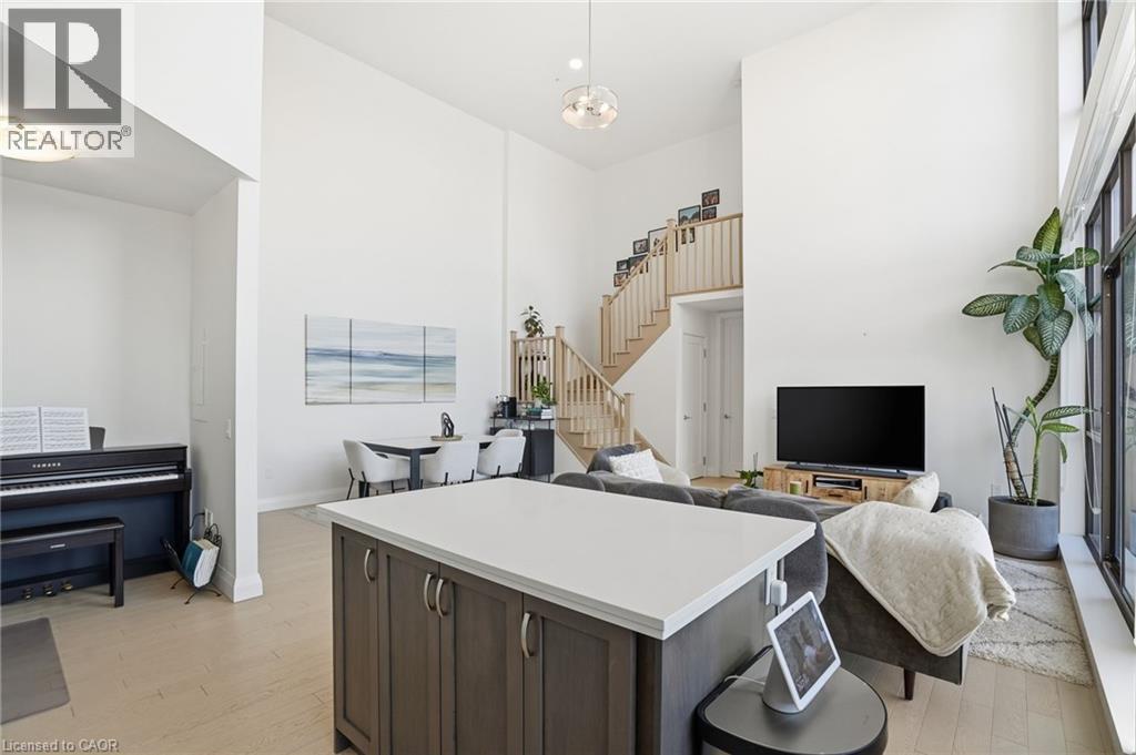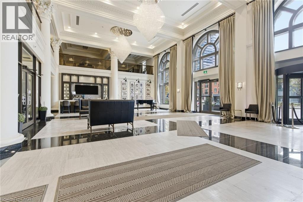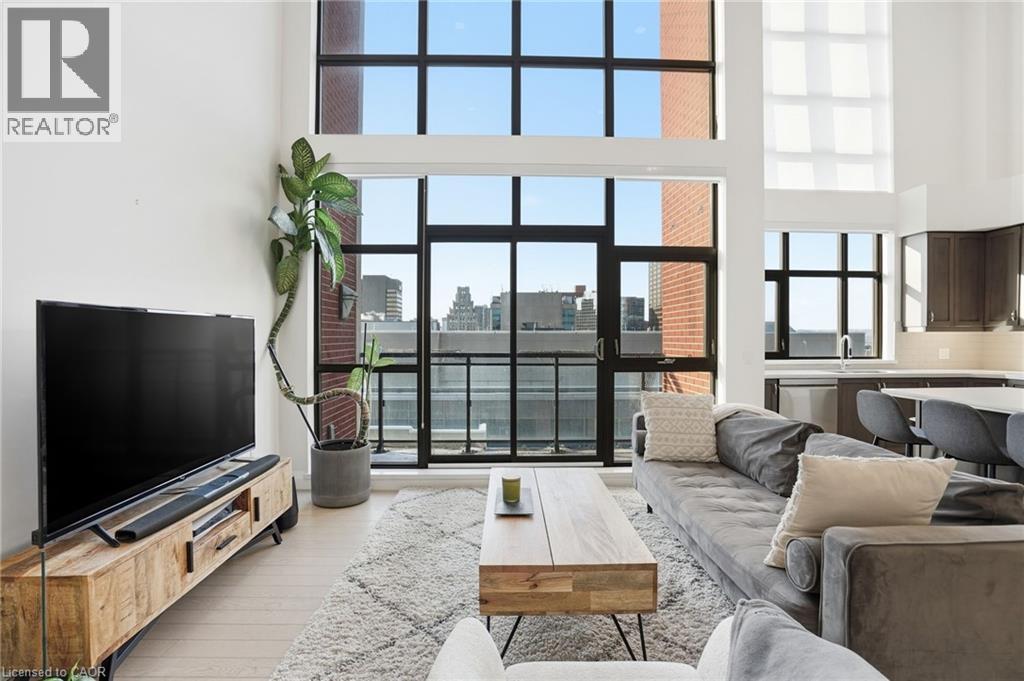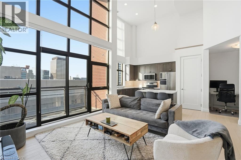 Step into elevated city living in this rare two-storey 2-bedroom, 2-bathroom, plus den lower penthouse at the iconic Residences of Royal Connaught. This 1,267 sq ft west-facing suite features dramatic 18-foot ceilings, expansive floor-to-ceiling windows, and breathtaking, unobstructed views of the Escarpment, Gore Park, and Hamilton Harbour. The main level offers a bright open-concept living space with a den, laundry, and a spacious primary bedroom complete with walk-in closet and ensuite privileges, delivering true one-floor convenience. Upstairs, the second bedroom boasts its own 4-piece ensuite, ideal for guests or family. Thoughtful upgrades include quartz countertops, under-cabinet lighting, engineered hardwood floors, and custom motorized blinds. Enjoy your private balcony, ample storage throughout, and access to premium amenities including a rooftop terrace with fireplace and BBQs, party and media rooms, and a fully equipped gym. Starbucks is conveniently located between the two lobbies, just an elevator ride away. Unbeatable location steps to the GO Station, James Street North, King William Street, the Art Gallery of Hamilton, the Farmers’ Market, and more. Includes 1 underground parking and a storage locker located right next to the unit, with rental of a second parking spot available. Luxe, location, and lifestyle all in one. (id:4555)
