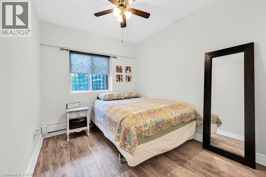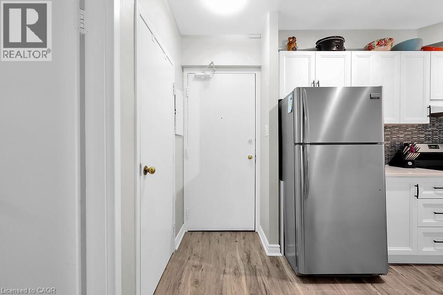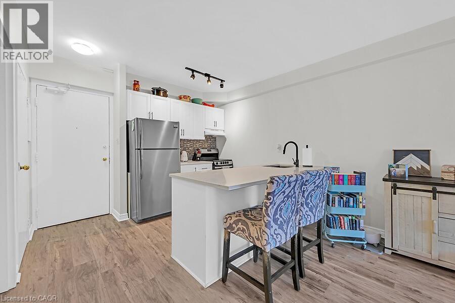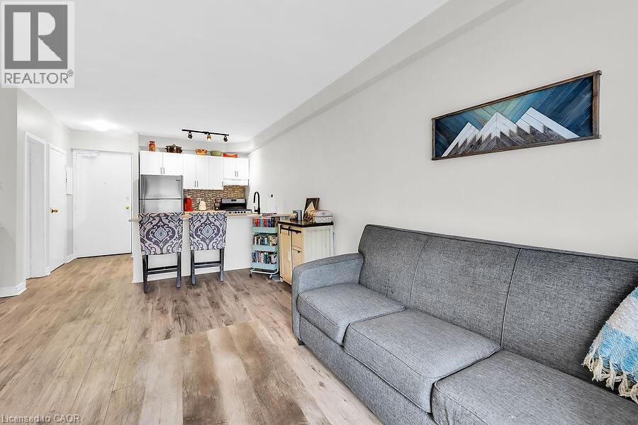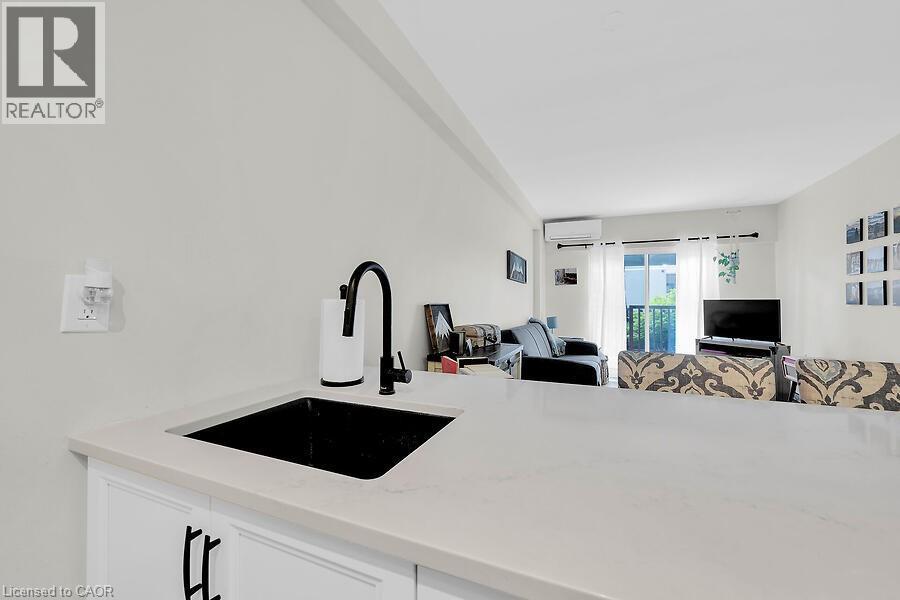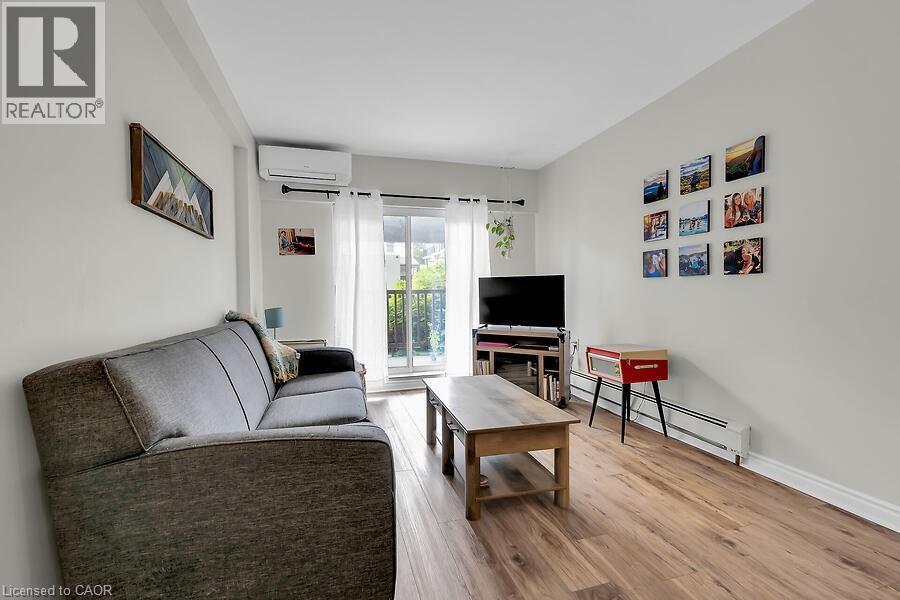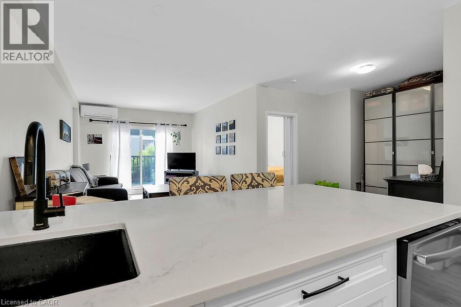 Welcome to The Crofts. This lovely updated 1 Bedrroom unit showcases a newly renovated kitchen with quartz countertops with breakfast bar. Upgraded vinyl Flooring through out. The conveniently located ground floor unit is quickly acessible! No need to wait for the elevator! This unit also provides an extra large patio space only offered to ground floor units. This is a great space to on summer days! There is an alcove off the livingroom that could be used for office space or additional wardrobe space. Keep cool in the summer with the ductless air conditioner installed in 2023. Locker and parking are included. The building amenities included are Gym, Sauna, Common BBQ area, coin laundry. New Patio door and window and have been paid for and awaiting installation! (id:4555)