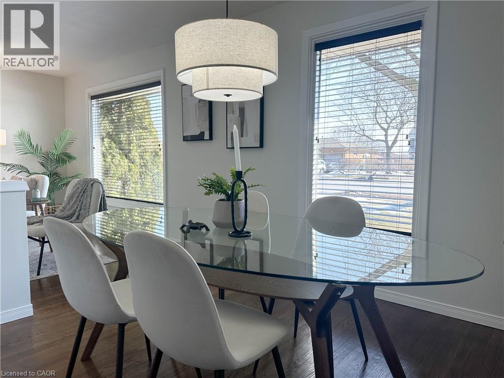 Welcome Home to this sun-filled three level backsplit on Hamilton’s East Mountain. This home is located in the family friendly Berrisfield neighbourhood and is walking distance to all amenities. Situated on a spacious lot, this property has parking for 4+ cars. Stepping inside, you are welcomed into the sundrenched home. Hang your jacket in the front hall closet and then make your way into the living room. Be sure to check out the refinished hardwood floors and the large window. The living room opens up to the dining room with a new light fixture and the whole space has been freshly painted. The eat-in kitchen offers updated stainless steel appliances. Don’t miss the pocket door – all you parents will enjoy the sound barrier for sleeping children (and shift workers too)! Upstairs, you will find 3 spacious bedrooms with the same beautiful hardwood flooring. The oversized 4 piece bathroom makes bath time a breeze! Down in the finished basement you will find a newly refreshed rec room – new flooring, ceiling, and fresh paint. The separate entrance offers in-law possibilities. You will find a newer 3 piece bathroom with a large walk-in shower. The utility room offers laundry, storage and all updated (and owned!) HVAC – furnace, central air and tankless water heater. Don’t miss the crawl space for additional storage. Heading into the backyard, you will really appreciate the spacious lot. The yard is fully fenced with a huge stamped concrete patio with a gazebo. There are 2 sheds for storage and a hedge for extra privacy. This is a great move-in ready home in the fantastic and family friendly Berrisfield neighbourhood. Don’t miss out on this great home! (id:4555)