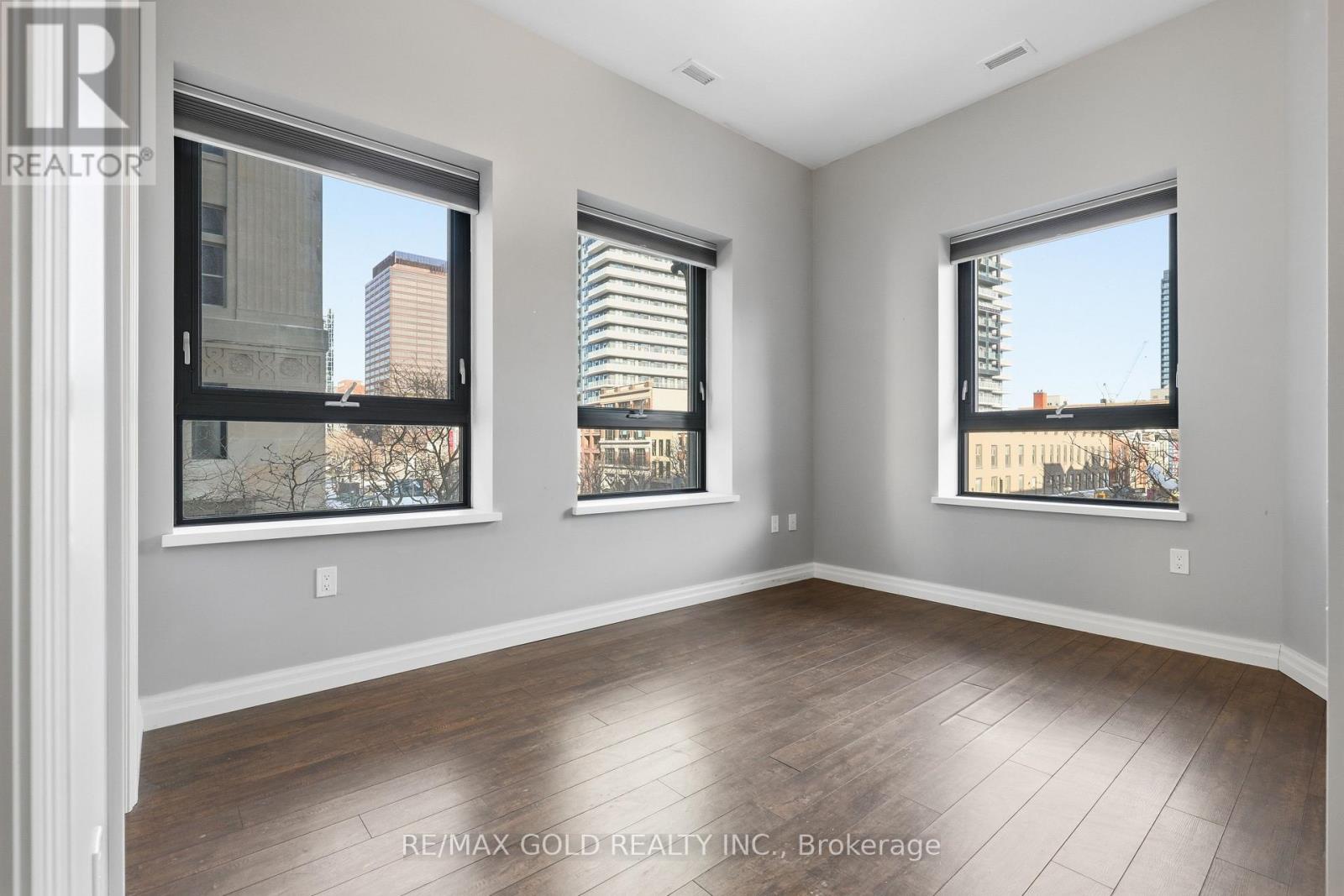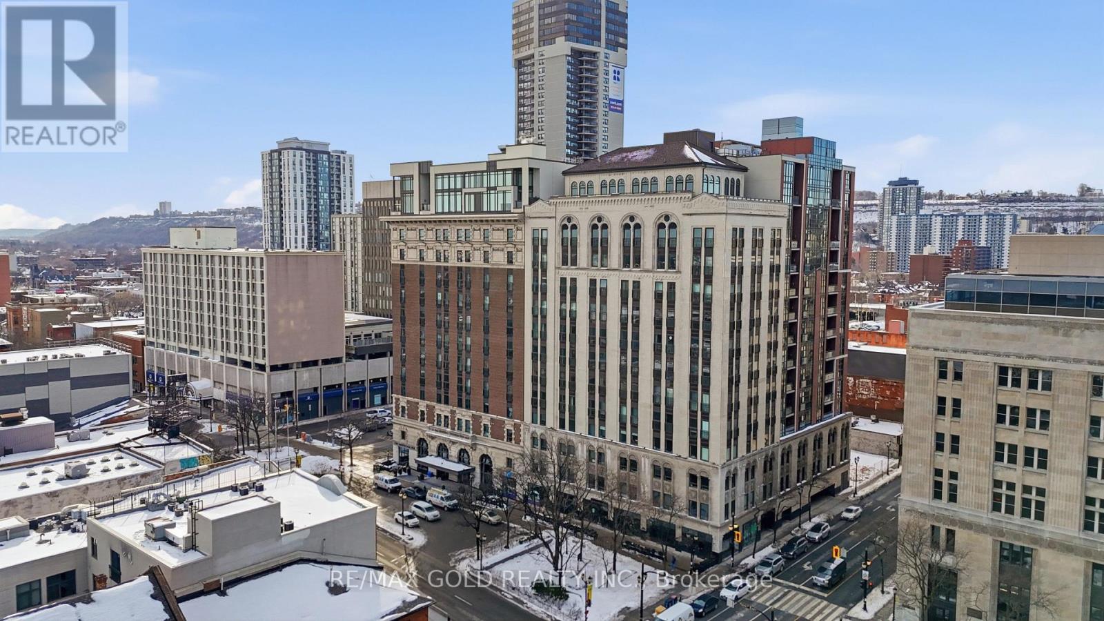 Welcome to the iconic Royal Connaught Residences - where historic elegance meets modern luxury in the heart of downtown Hamilton. This beautifully designed 850 sq ft 2-bedroom, 2-bath condo features soaring 9-ftceilings, a sleek kitchen with stainless steel appliances and centre island, an open-concept living space, spacious bedrooms, and convenient in-suite laundry.10ftceiling height, crown molding. Laminate floor throughout. One underground parking spot is included .Building amenities include a fully equipped gym, private theatre room, party room, concierge service, and an outdoor terrace with BBQs, fireplace, and stylish lounge areas - all supported by 24-hour security for peace of mind. (id:4555)