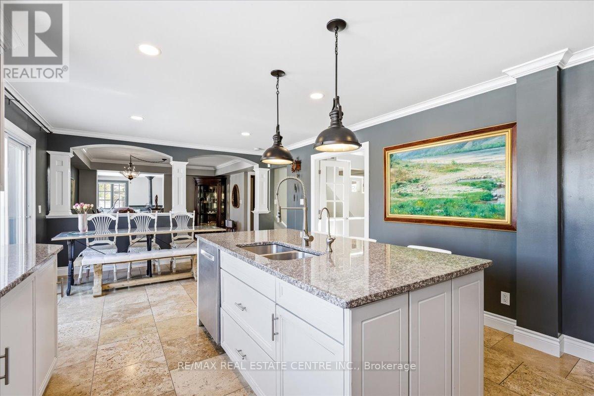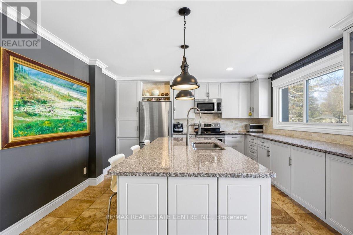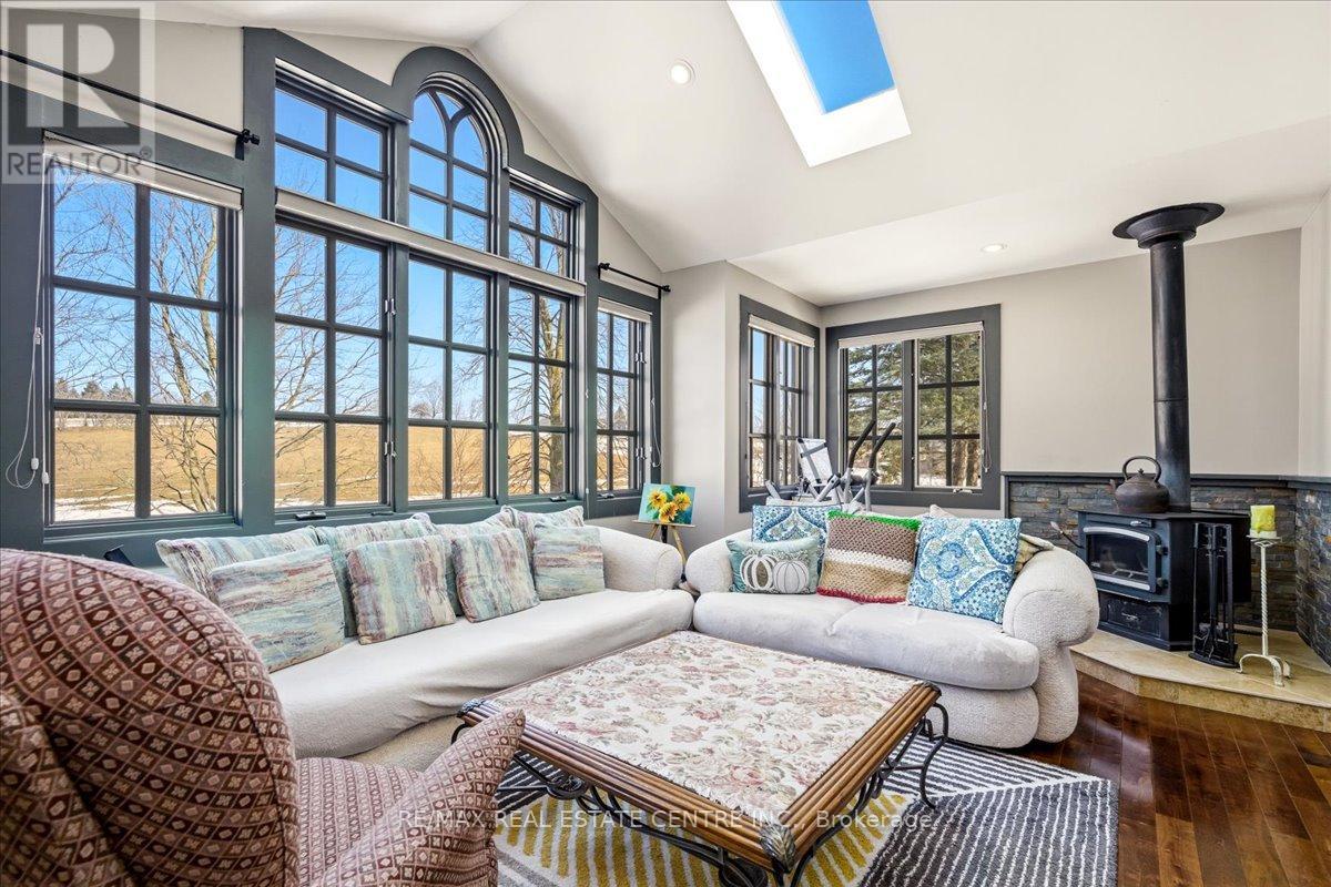 Gorgeous scenic 8.76-acre country retreat just 5-10 minutes to Hwy 401/403 and only 20 minutes to Burlington, Hamilton, Cambridge, and Guelph. This beautifully updated and meticulously maintained 2-storey, double-garage home offers 3+2 bedrooms, 4 baths, and a fully finished basement, blending peaceful country living with excellent commuter convenience. Agricultural and farm zoning. Set on rolling hills beside the Lafarge Trail-perfect for biking and hiking, enjoy stunning views from the gourmet kitchen with granite countertops, large island, s/s appliances, breakfast area and walkout to a spacious deck. Features include a renovated primary ensuite with walk-in closet, sun-filled family room with skylight, large windows and wood fire stove, hardwood and marble floorings throughout main and 2nd level, cozy living room with garden views, and a fully finished basement with in-law suite setup and potential for a separate entrance. Professionally landscaped front and backyard, plus a garage electrical panel ideal for EV charging. Updates include roof, New energy-efficient heat pump system providing both heating and cooling, with 10 years remaining on the warranty. Enjoy impressively low whole-home utility costs including heating and cooling-averaging about $200 per month throughout the year., 200-amp service, well pump, water softener, and two-tank drinking water system. A rare move-in-ready country gem in a prime location! (id:4555)
