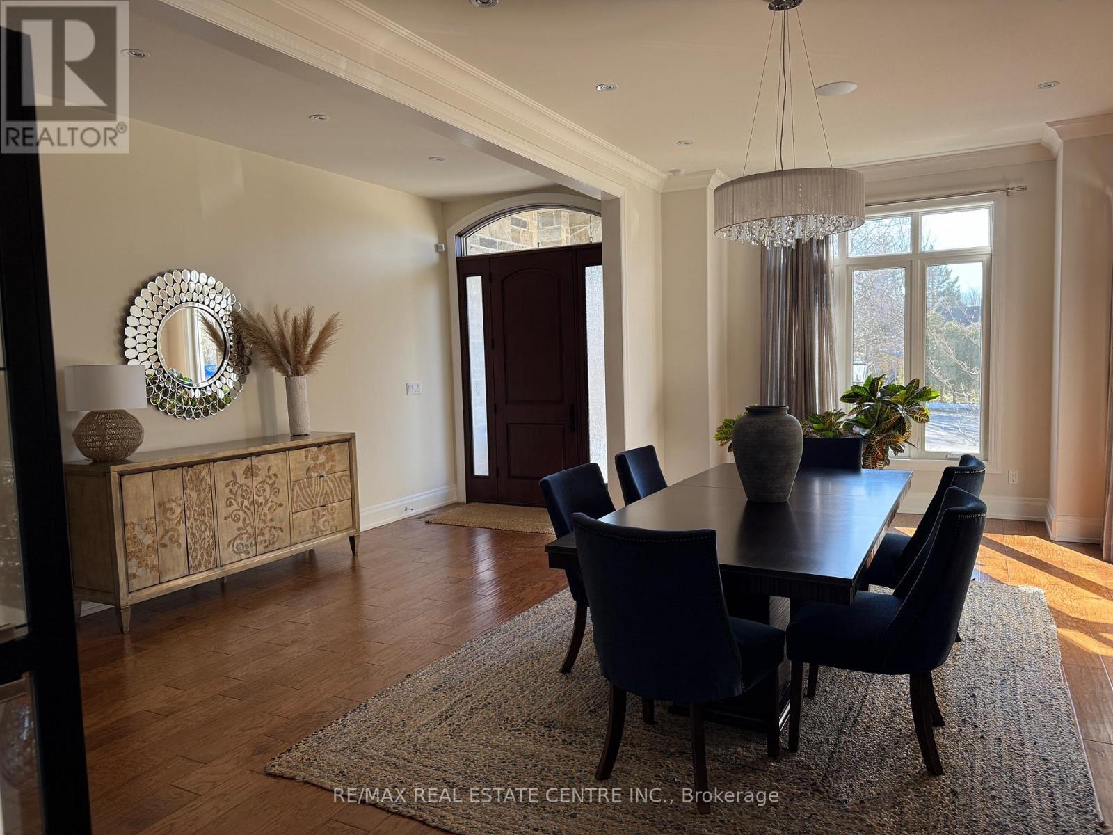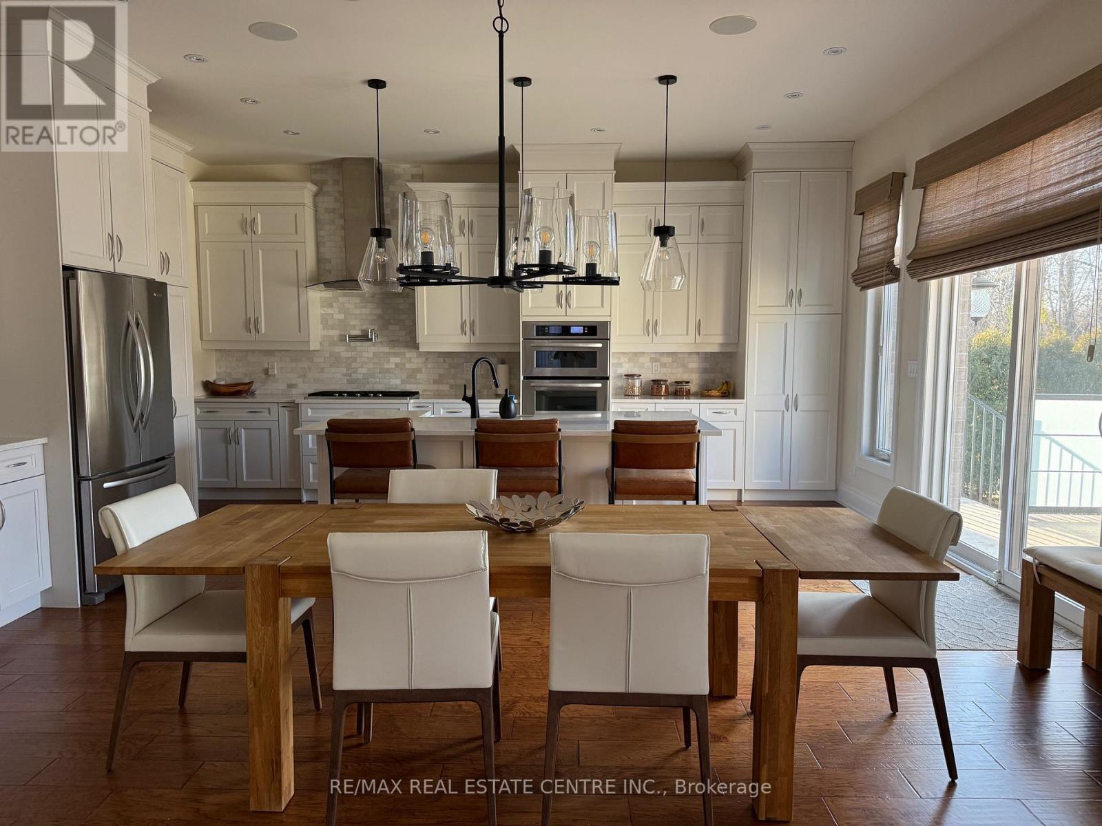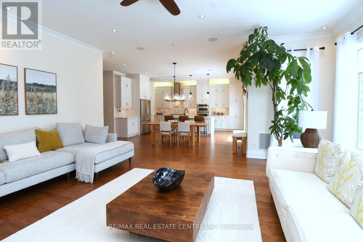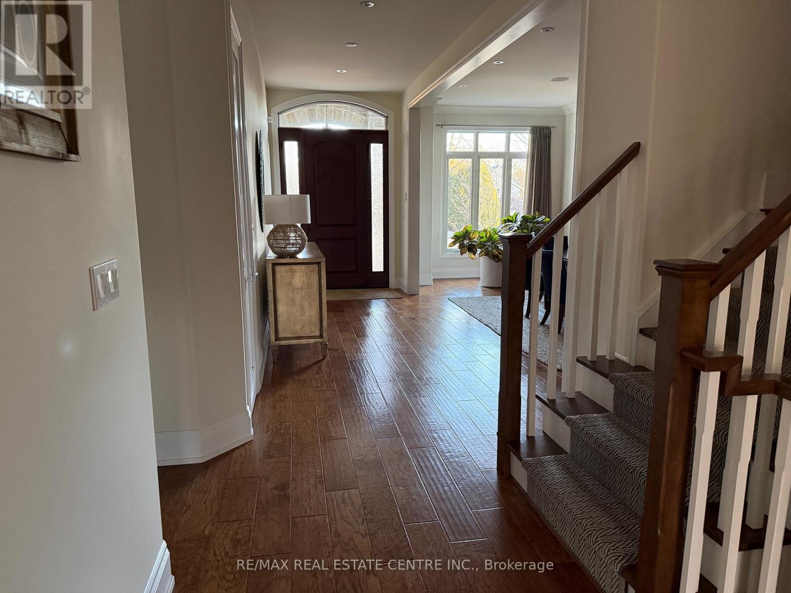 Welcome to this exceptional luxury residence nestled on a quiet, prestigious cul-de-sac in Ancaster. Situated on a rare 50' x 200' treed ravine lot, this home offers approximately 6,000 sq. ft. of total living space and a private, resort-style backyard backing onto forested greenspace. Featuring 4+1 bedrooms and 4+1 bathrooms, the home boasts 10' ceilings on the main level, engineered hardwood throughout, an open oak staircase, and an abundance of natural light. Smart-home equipped with whole-home Sono's audio, CAT5e wiring, Wi-Fi extenders, security cameras, alarm system, and video doorbell. The chef's kitchen offers a 4x8 quartz island, gas stove with pot filler, built-in appliances, walk-in pantry, butler's pantry, and wet bar. Spacious family room with gas fireplace and built-in surround sound. Main floor office/den ideal for work-from-home or in-law/nanny suite. The primary retreat features a private balcony, two walk-in closets, and a luxurious 5-piece ensuite with soaker tub, oversized shower, heat lamps, and bidet toilet. Convenient second-floor laundry and generously sized secondary bedrooms with walk-in closets. Fully finished walk-out basement with 9' ceilings include a bedroom, gym, second laundry, bar with quartz waterfall island, rec room with fireplace, and separate garage entrance-ideal for extended family or entertaining. A rare offering combining luxury, technology, and natural surroundings. Resort-style backyard highlights a 16x28 inground pool with waterfall, stone patios, outdoor gas fireplace and TV area, speakers, sprinkler system, smart lighting, and mature trees for ultimate privacy. Natural gas backup generator, EV rough-in, epoxy garage floors, and extensive landscaping complete this remarkable property. (id:4555)