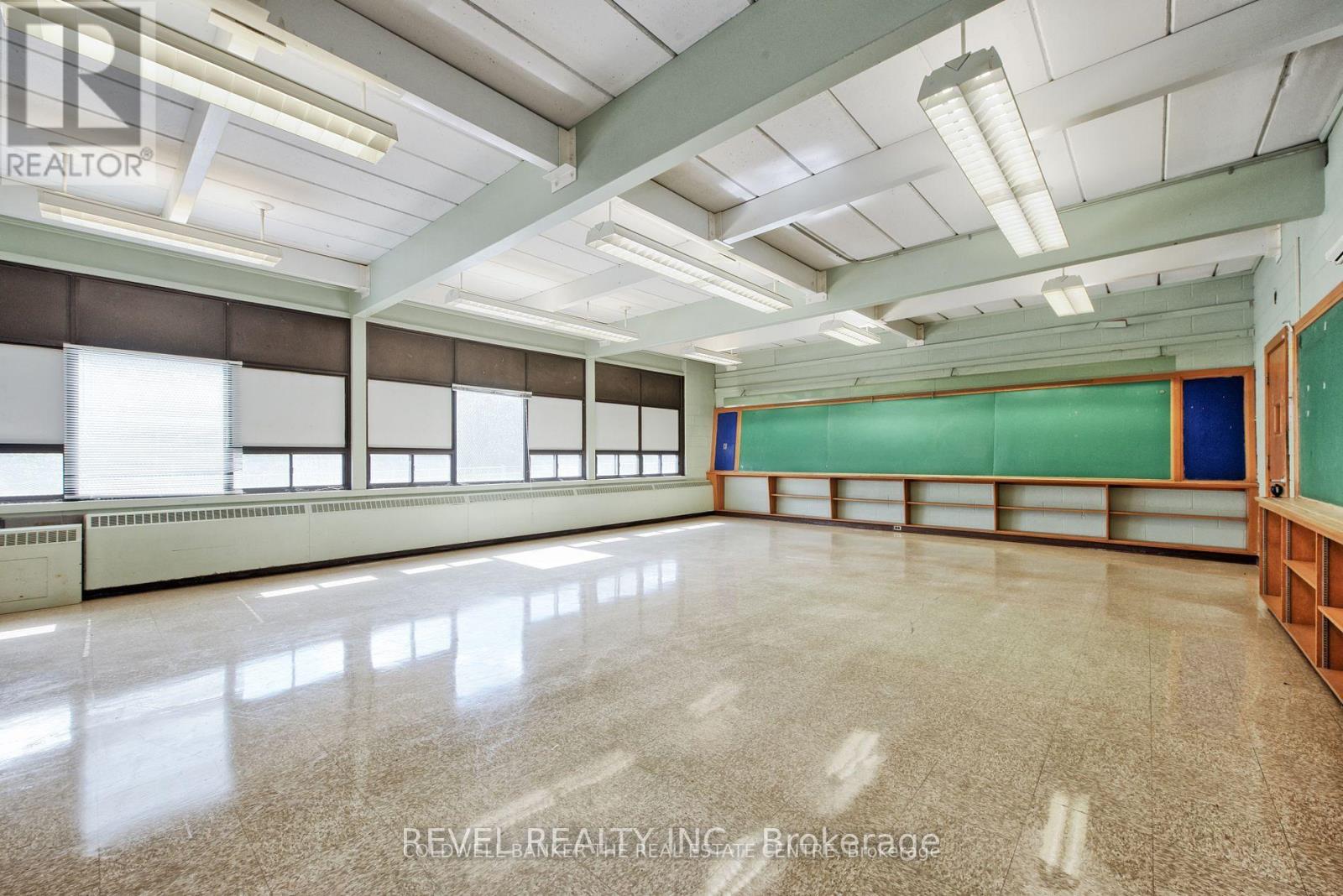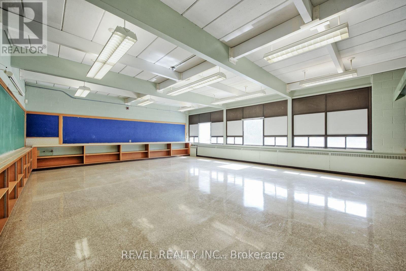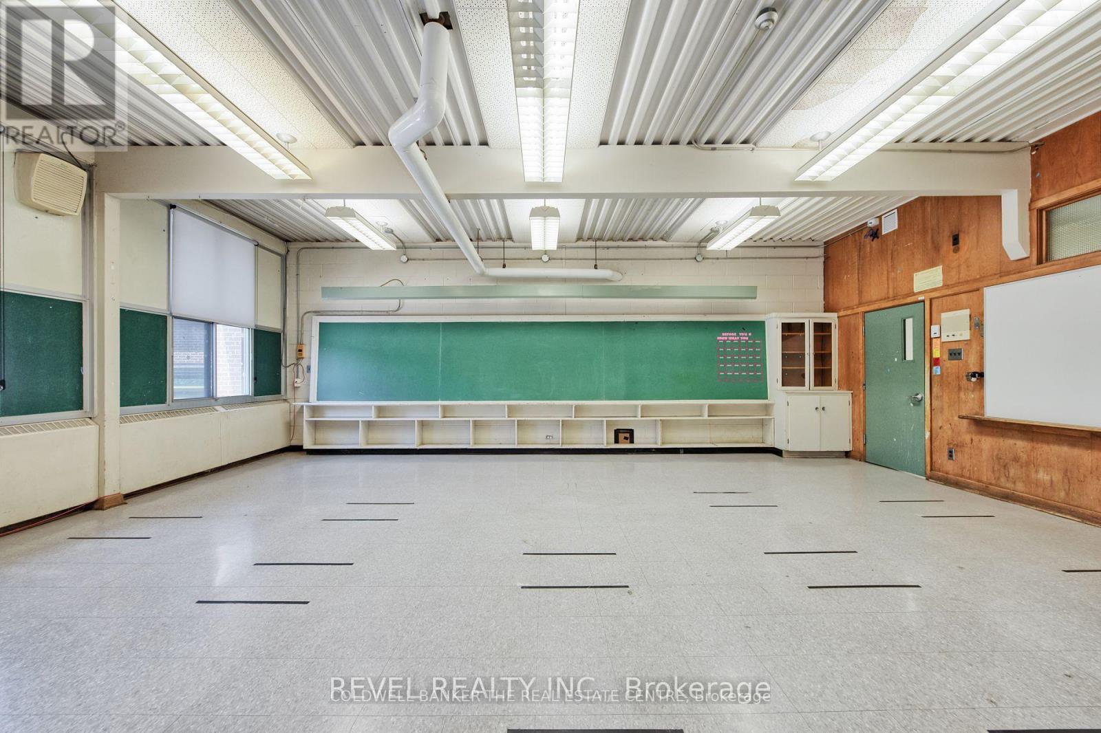 An idyllic location for a Montessori or an Early learning inspired private school. Situated on 4.57 acres, the grounds provide generous parking, safe outdoor play areas, with adjacent forested public trails, open parkland and a local watercourse. Within very close walking distance to Battlefield House Museum, a City operated outdoor pool and sports fields. This is a rare opportunity to lease 13,500 sq. ft of a well-maintained fully functional former elementary school. The layout is turn-key for an education-based operator with 8-9 classrooms, a dedicated library, and conveniently located washrooms throughout. The property is zoned I1, which supports Elementary Education Establishments and related uses, making it ready for operations with minimal adjustment. The landlord is open to **flexible leasing terms (1-5 years)**, creating opportunities for organizations looking for either temporary or more stable long-term space. Well-built school facilities like this rarely become available for lease. (id:4555)