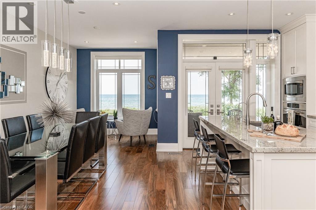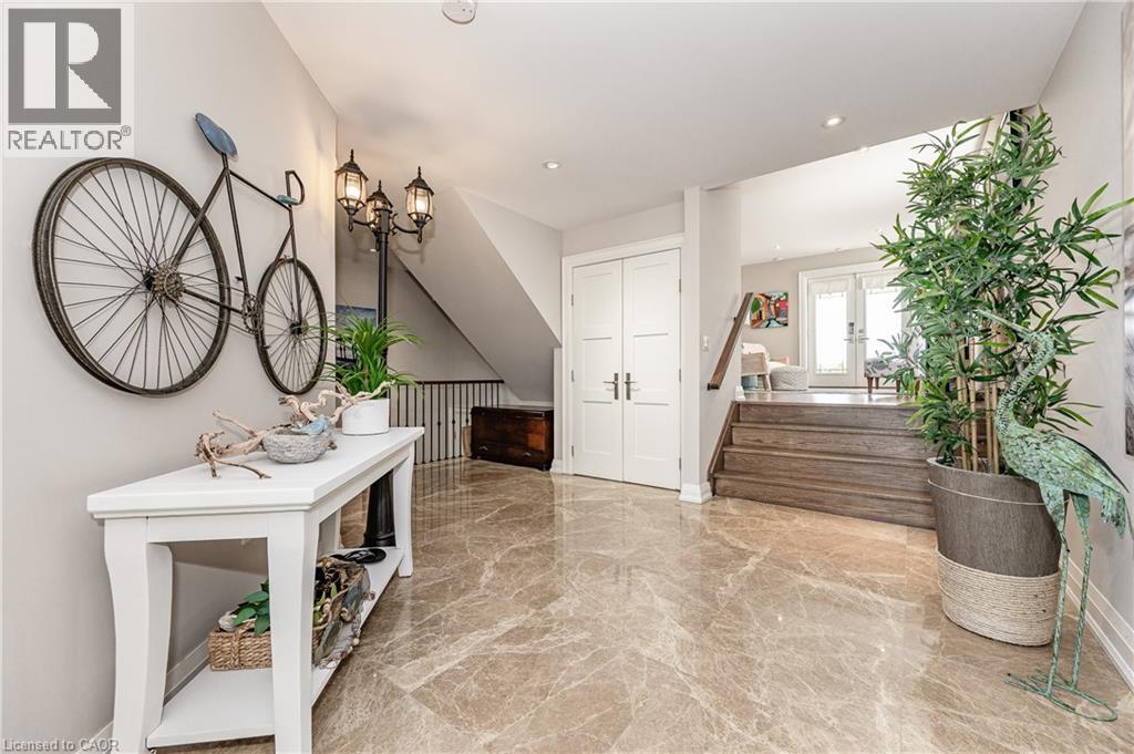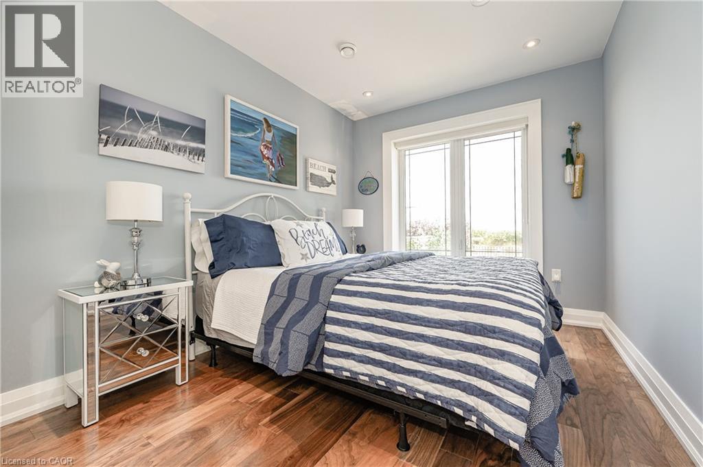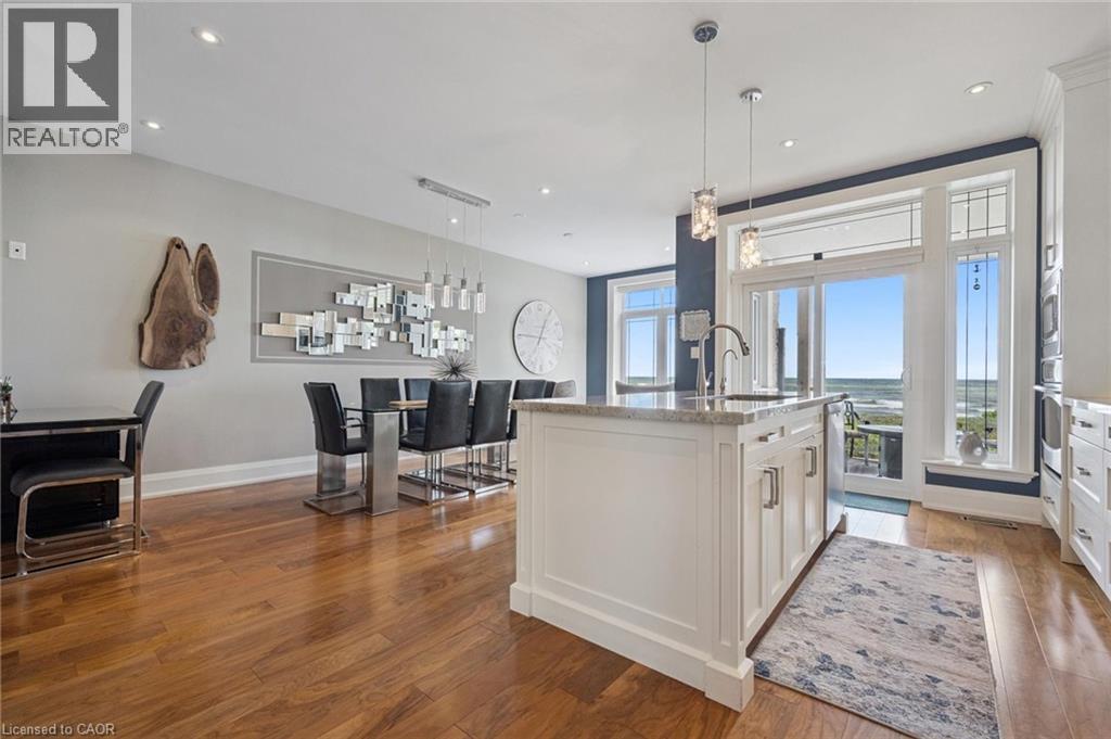Experience waterfront living in this beautifully appointed 3-bed, 4-bath executive freehold townhome, over 3000 sq ft of thoughtfully designed living space. As a desirable end unit, it provides additional privacy, more windows for natural light, direct backyard access, and the convenience of a full two-car driveway. Enjoy stunning east-facing lake views and breathtaking sunrises from multiple vantage points, including three oversized terraces. The open-concept layout features soaring ceilings and a spacious, upgraded kitchen with an expansive island and premium stainless steel appliances, ideal for entertaining. Designed with comfort and durability in mind, this home includes 8” reinforced concrete construction through the centre for added sound separation and structural integrity. Take in uninterrupted lake views from nearly every room and enjoy direct access to the waterfront lifestyle—launch your kayak from the garage, stroll the boardwalk, or cycle along the lake to Spencer Smith Park and beyond. Ideally located steps to the beach and just minutes from downtown Burlington, with quick access to Toronto and Niagara via major highways. A rare opportunity to enjoy low-maintenance luxury living by the water. (id:4555)
