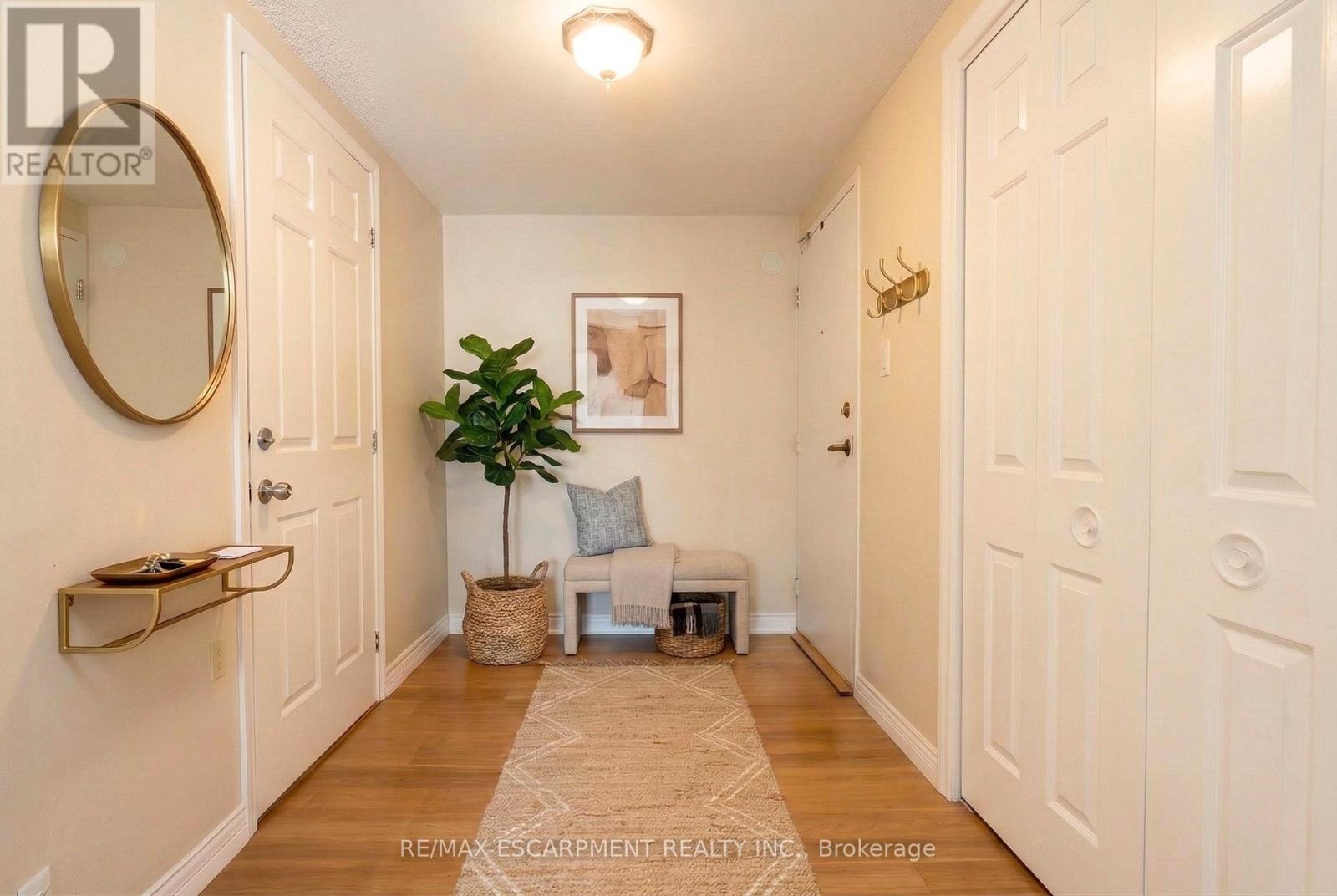 We've got the view! Welcome to Harris Towers! This rarely offered 3 bed, 2 full bath CORNER unit offers 1245sq ft of bright, airy living with stunning Escarpment views from every room and private South facing balcony. Large principal rooms, an open-concept living/dining area, stunningly renovated kitchen (2016), and hardwood flooring throughout. Carpet free! The oversized primary bedroom features a gorgeous 3 piece ensuite, complete with beautiful glass and tile shower plus a walk-in closet. Two generous sized bedrooms, a pretty 4 pc bath, in-Suite laundry and PLENTY of closet space complete this home. Located in a quiet, well-maintained building brimming with top-tier amenities such as an indoor saltwater pool, sauna, fitness rm, library, party rm, billiards rm, workshop, car wash (with vacuum!) and pickleball courts. Nestled among mature trees and greenspace with easy access to the Red Hill Valley Parkway, trails, schools, shopping, and transit. Easily hop onto the Red Hill Valley Pkwy, QEW & Hwy 403. Includes one underground parking space & Large locker. (id:4555)