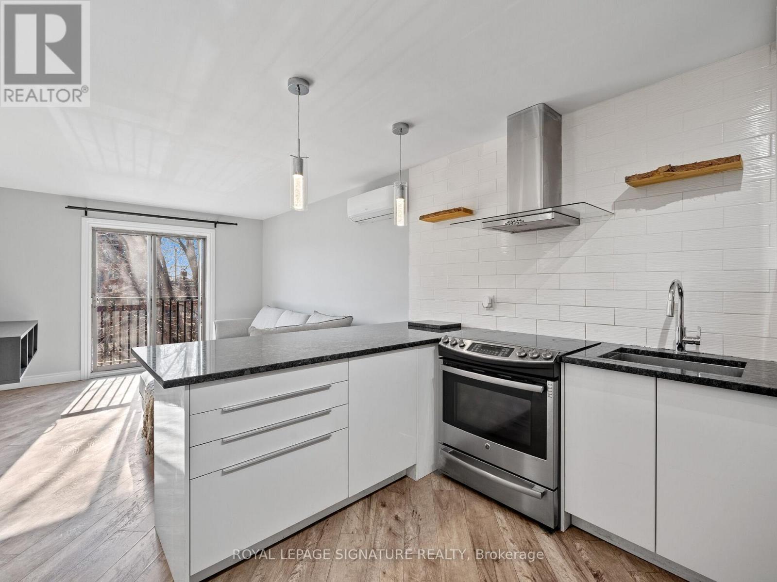Beautifully updated 2-bedroom, 1-bath condo featuring a bright open-concept layout ideal formodern living. The living and dining area flows to a charming Juliette balcony, filling thespace with natural light. The sleek kitchen offers stainless steel appliances, granitecountertops, and a generous peninsula with seating for four, perfect for everyday living orentertaining. Convenient in-suite laundry is neatly tucked away. Both bedrooms feature windowsand closets, complemented by a stylishly renovated bathroom with glass shower. Fresh paint andlaminate flooring throughout make this home completely move-in ready. Located in the heart ofHamilton, just minutes to public transit, parks, schools, shops, and restaurants. Ideal formedical professionals with close proximity to Hamilton General Hospital, Ron Joyce HealthCentre, and quick access to St. Joseph's, Juravinski, and McMaster hospitals. Extras:exclusive parking space, dedicated storage locker, water, exterior maintenance, and buildinginsurance - all included in condo fees. An excellent opportunity for first-time buyers,downsizers, or investors. (id:4555)