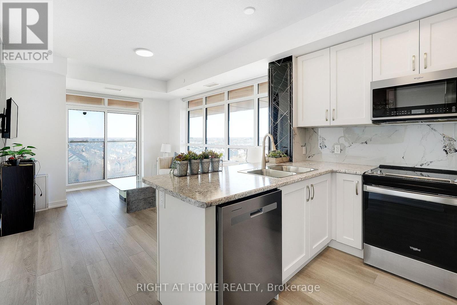 Modern Trend Living condo with 9-ft ceilings and an open-concept layout. Features ceramic tile flooring and bright LED lighting throughout. The stylish kitchen offers custom cabinetry, designer faucet, and laminate countertops with a backsplash, while the bathrooms boast quartz countertops and spa-inspired premium fixtures. Enjoy a feature wall for your TV, a French balcony, and an owned locker for extra convenience. Pet-friendly in both living areas and bedrooms. This energy-efficient building includes geothermal heating/cooling, secure entry, 2 owned underground parking spaces, rooftop terrace, and professional management. Freshly painted and perfectly located near parks, shopping, restaurants, and major highways. (id:4555)