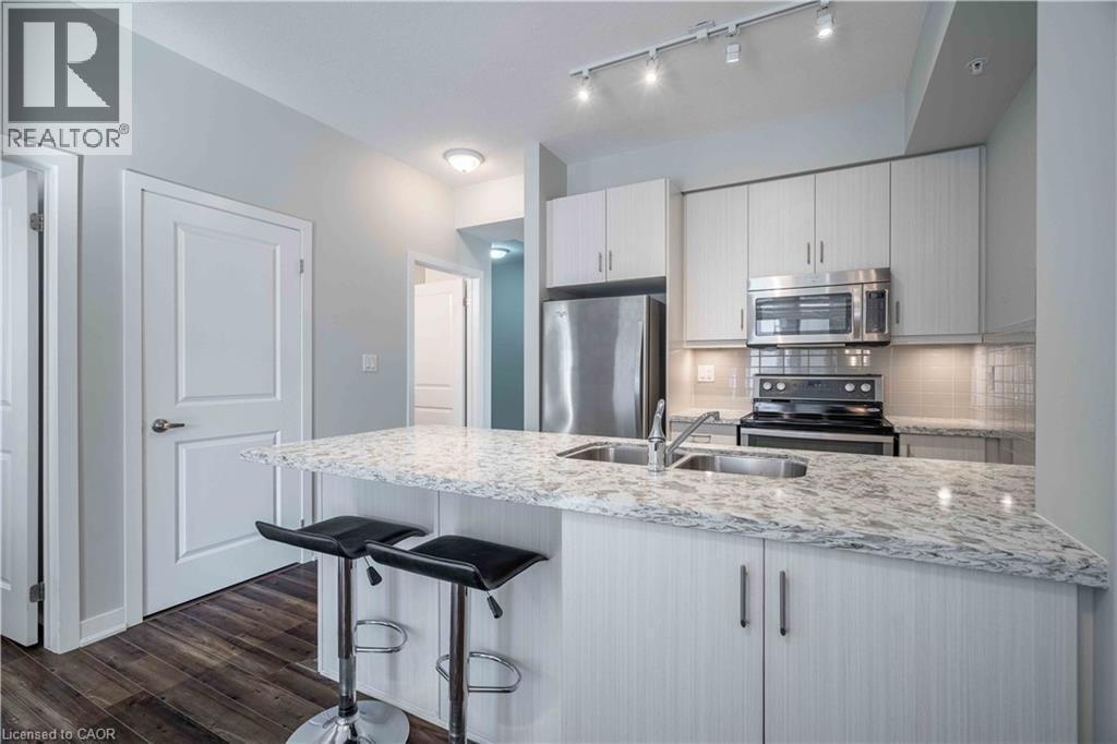 A sought-after 2-bedroom condo in the City Square awaits you! This art deco-style O building exudes decorative flair and attention to detail, from the spacious lobby lounge to the open-air second-floor terrace. Nestled in the heart of the historic and upscale Durand neighborhood, you'll be within walking distance of St. Joseph's Hospital, parks, trails, Locke St S, Corktown, downtown, public transit, the Go train, coffee shops, and just minutes from shopping and restaurants with easy highway access. This 2-bedroom unit features in-suite laundry, two sets of patio doors leading to a large balcony, The eat-in kitchen boasts stainless steel fridge, stove, dishwasher, and microwave, a subway tile backsplash The condo fee includes heat, water and central air. The unit comes with one underground parking space (Level 1-28A) and a locker level 1 (3ft x 5ft -A07-#45A). Enjoy an array of amenities, including a fitness room, media room, party room, bike storage, lockers, rooftop terrace, BBQ area, and ample visitor parking. (id:4555)
