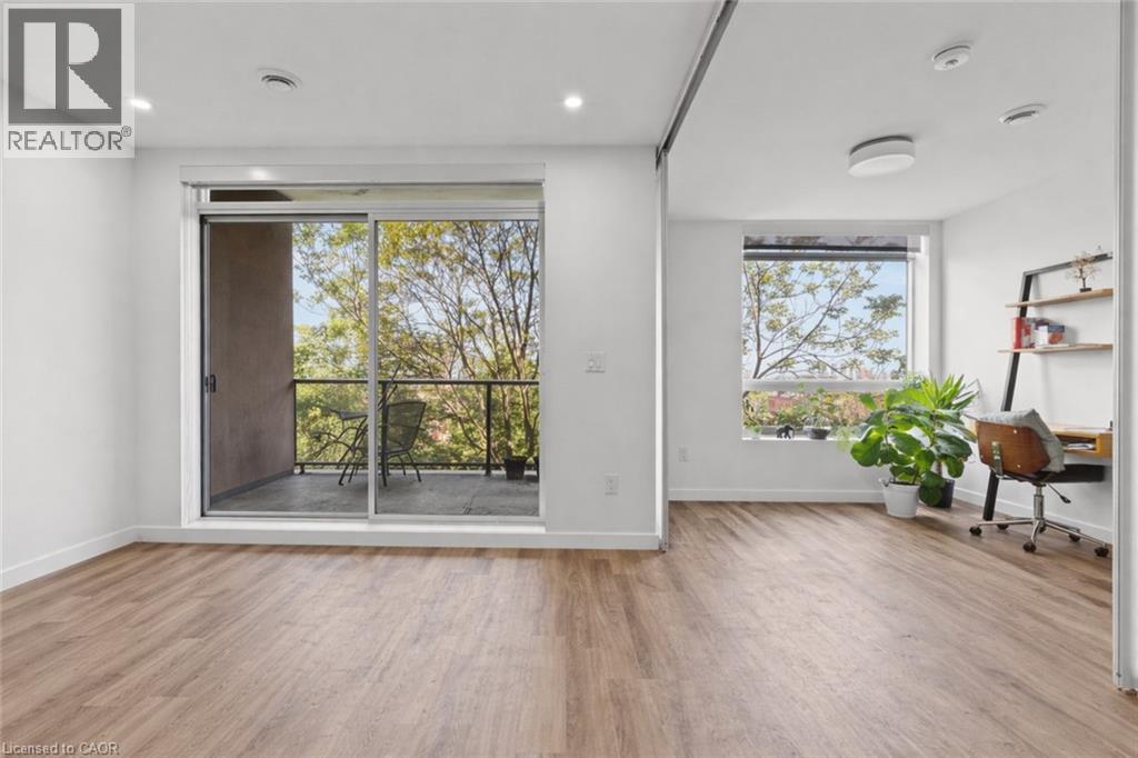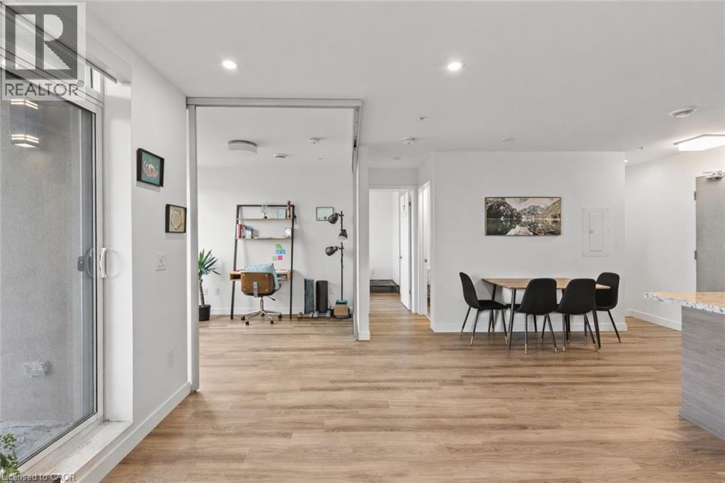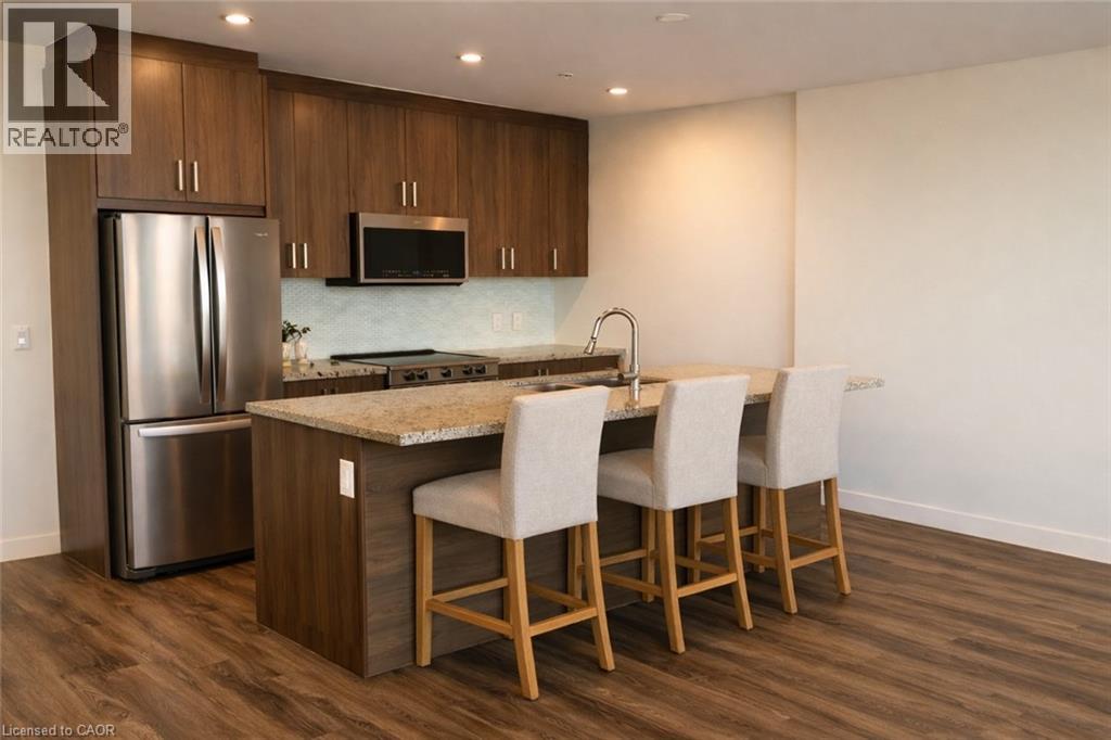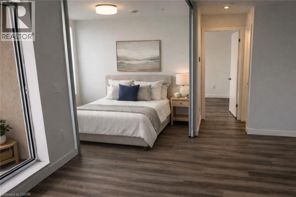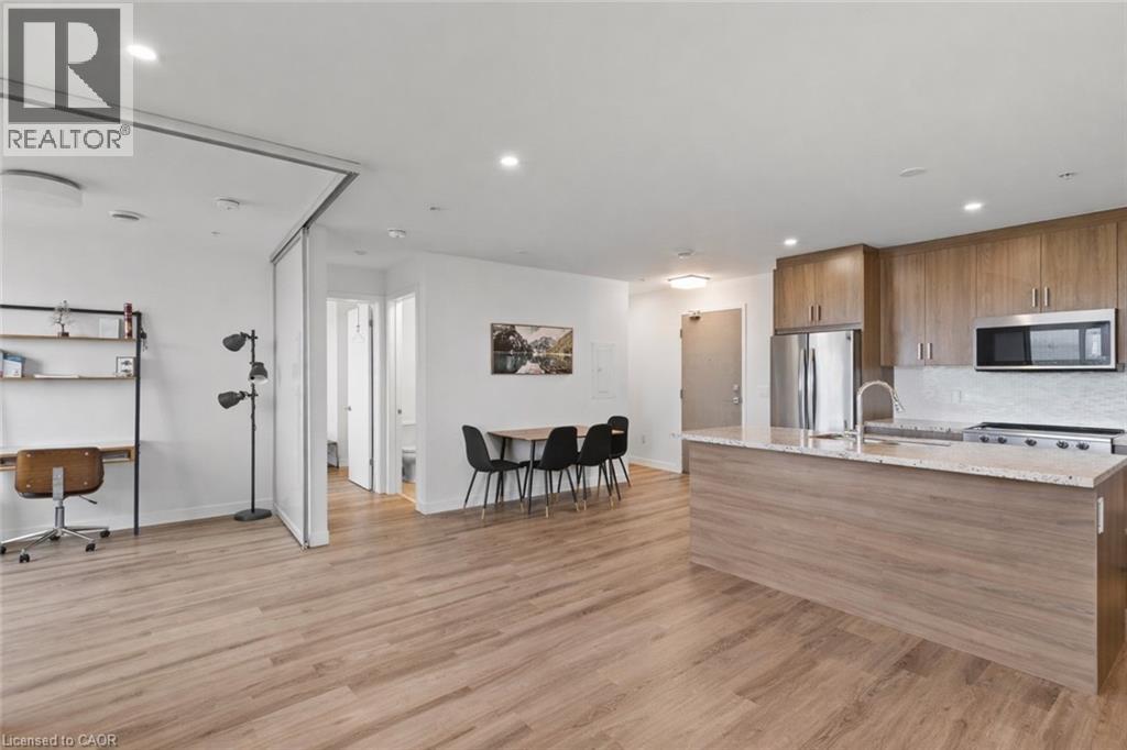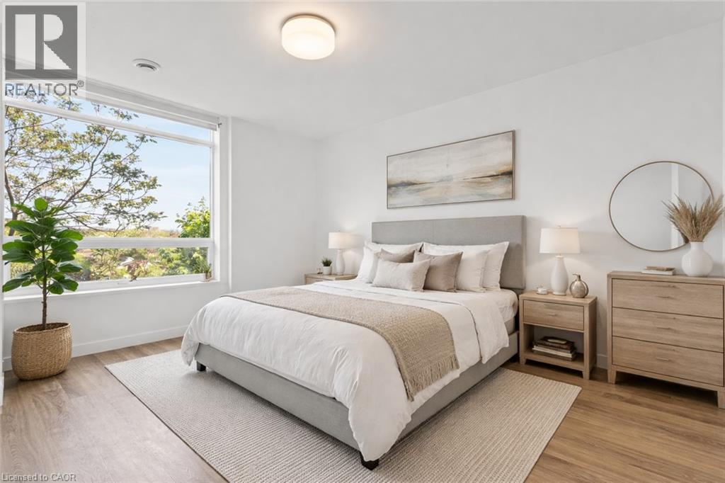 Best price for a 2-bedroom suite in the complex! Incredible 2 Bed, 2 Bath Spruce Model in a newer, well-managed building (approx. 6 years old), featuring oversized windows that showcase spectacular city views. The modern kitchen offers a large island with seating for 3, stone countertops, stainless steel appliances, and a stylish glass backsplash — perfect for entertaining. The spacious primary bedroom features a walk-in closet and a private 3-piece ensuite. Frosted glass sliding doors open to the versatile second bedroom, ideal as a guest room, home office, or expanded living space. Additional features include in-suite laundry, underground parking, a storage locker, and an expansive balcony with beautiful city views. Skip the gym membership and take advantage of the building’s on-site fitness centre, along with a party room, common BBQ area, and visitor parking. Condo fees include Heat & Water! Situated in a quiet pocket of Hamilton with quick access to Highway 403, McMaster University, the GO Station, and three major hospitals (St. Joseph’s, Hamilton General, and Juravinski). Enjoy being steps to the Escarpment Rail Trail and Corktown Park, and just minutes to the restaurants, cafés, shops, and vibrant lifestyle of James Street South and downtown Hamilton. (id:4555)