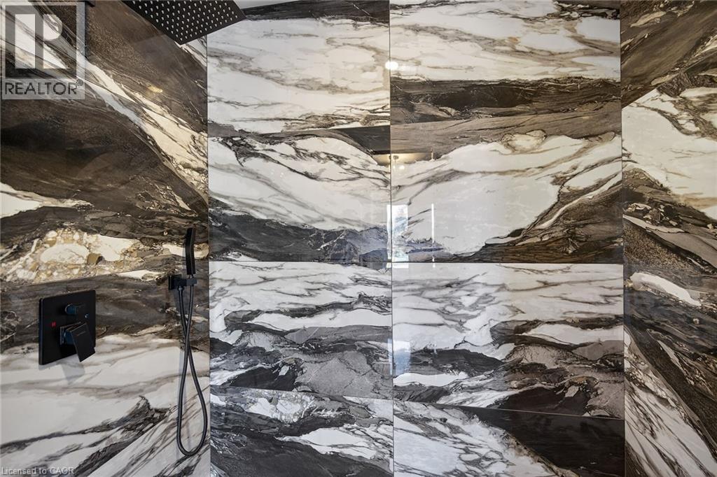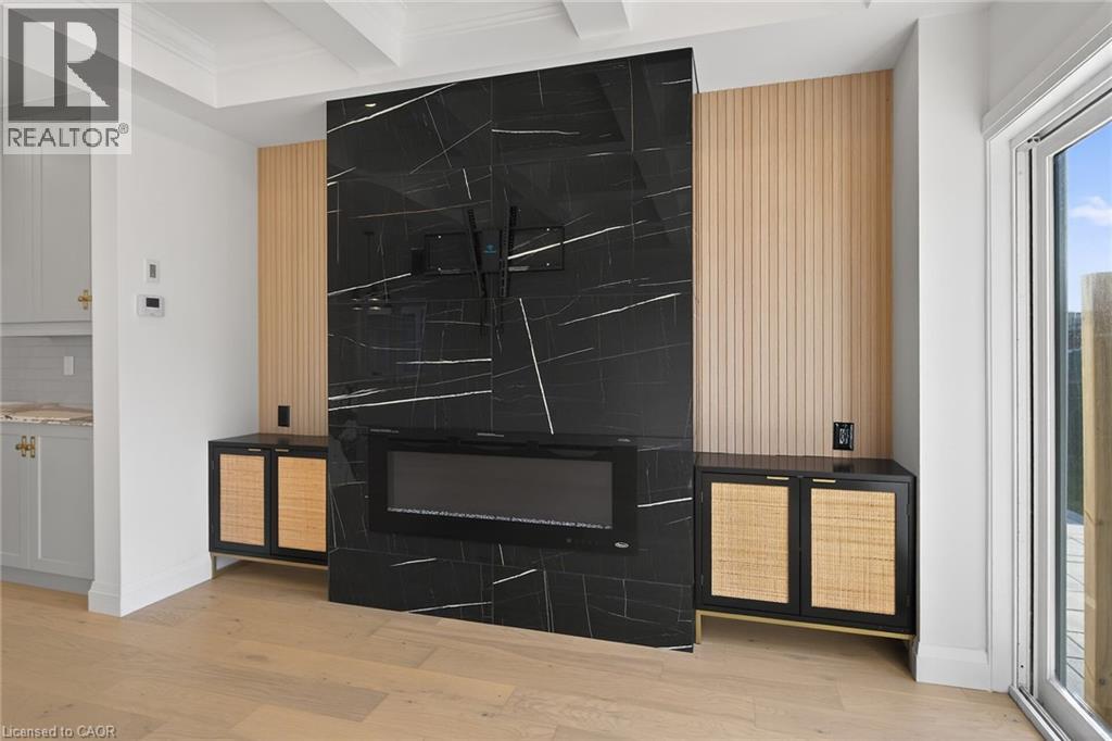 WELCOME TO THIS STUNNING NEW BUILD. This 1675 square foot semi-detached residence boasts an attached garage. A significant investment of $20,000 was made in enhancing the exterior, including a newly paved driveway, interlock stone walkway and patio, backyard fencing and meticulous landscaping. Upon entering, the main floor reveals a stately foyer, 9 ft ceilings, powder room, gourmet kitchen equipped with quartz countertops, island and porcelain tile backsplash, open concept dining area, great room featuring coffered ceilings and potlights, custom designed fireplace and walkout access to the rear yard. The upper level comprises three generously sized bedrooms, including the master suite complete with walk-in closet, opulent 4-piece ensuite featuring double vanity and glass shower. Two additional bedrooms, each with walk-in closets, share a 5-piece bathroom, each having ensuite privileges. A conveniently located laundry room is situated on this level. The unfinished, high basement offers endless possibilities for customization. Additional notable features and upgrades include engineered and porcelain flooring throughout, slat walls, potlights, designer lighting, to name a few. A comprehensive Tarion warranty is available. The property is advantageously situated in close proximity to schools, parks, church, Mohawk College, the Lincoln Alexander Parkway, Highway 403 and McMaster University. (id:4555)
