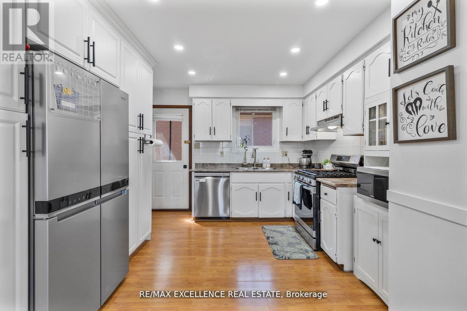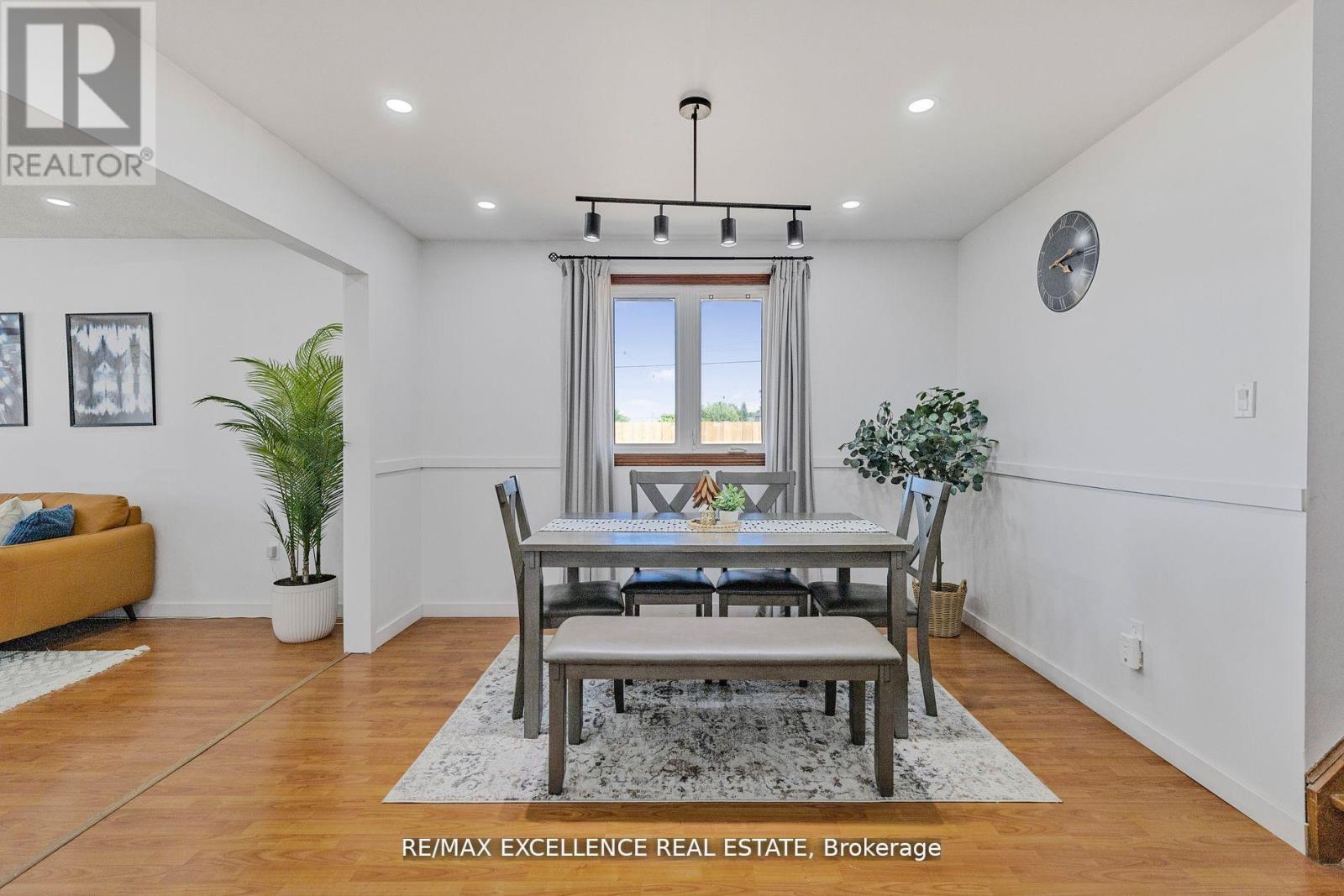 Welcome to 102 Juniper Drive, a well-maintained 3-level detached backsplit situated on a massive premium corner lot in a desirable Stoney Creek neighbourhood. Offering 5 bedrooms and 2 bathrooms, this spacious home features a functional layout ideal for growing families, multi-generational living, or investors looking for future potential. The main level and lower family level are fully finished, providing generous living space including additional bedrooms and flexible areas that can accommodate extended family or a potential in-law setup. The basement level remains unfinished, offering excellent potential to create additional living space, a recreation area, or future income possibilities. Recent upgrades within the past 3 years include newer appliances (fridge, gas stove, dishwasher, washer & dryer), energy-efficient pot lights on the main and lower levels, fresh paint with modern feature wall accents, updated kitchen and bathrooms, new fencing, and enhanced security with cameras and a video doorbell. The lower family level also features two additional bedrooms with updated carpet-free flooring. The property offers a single car garage and a double driveway, providing ample parking for family and guests. Located in a family-friendly neighbourhood close to schools, parks, shopping, and highway access, this home offers the perfect combination of space, comfort, and future potential. (id:4555)