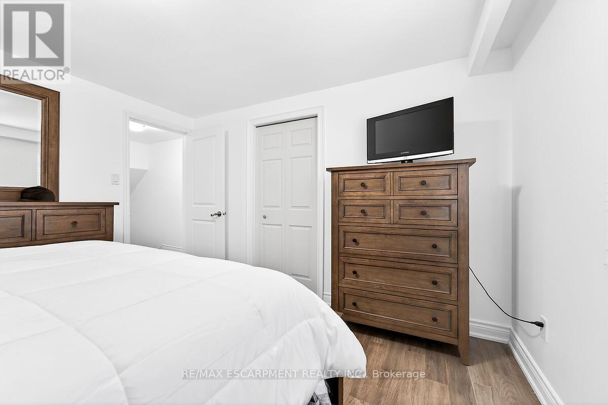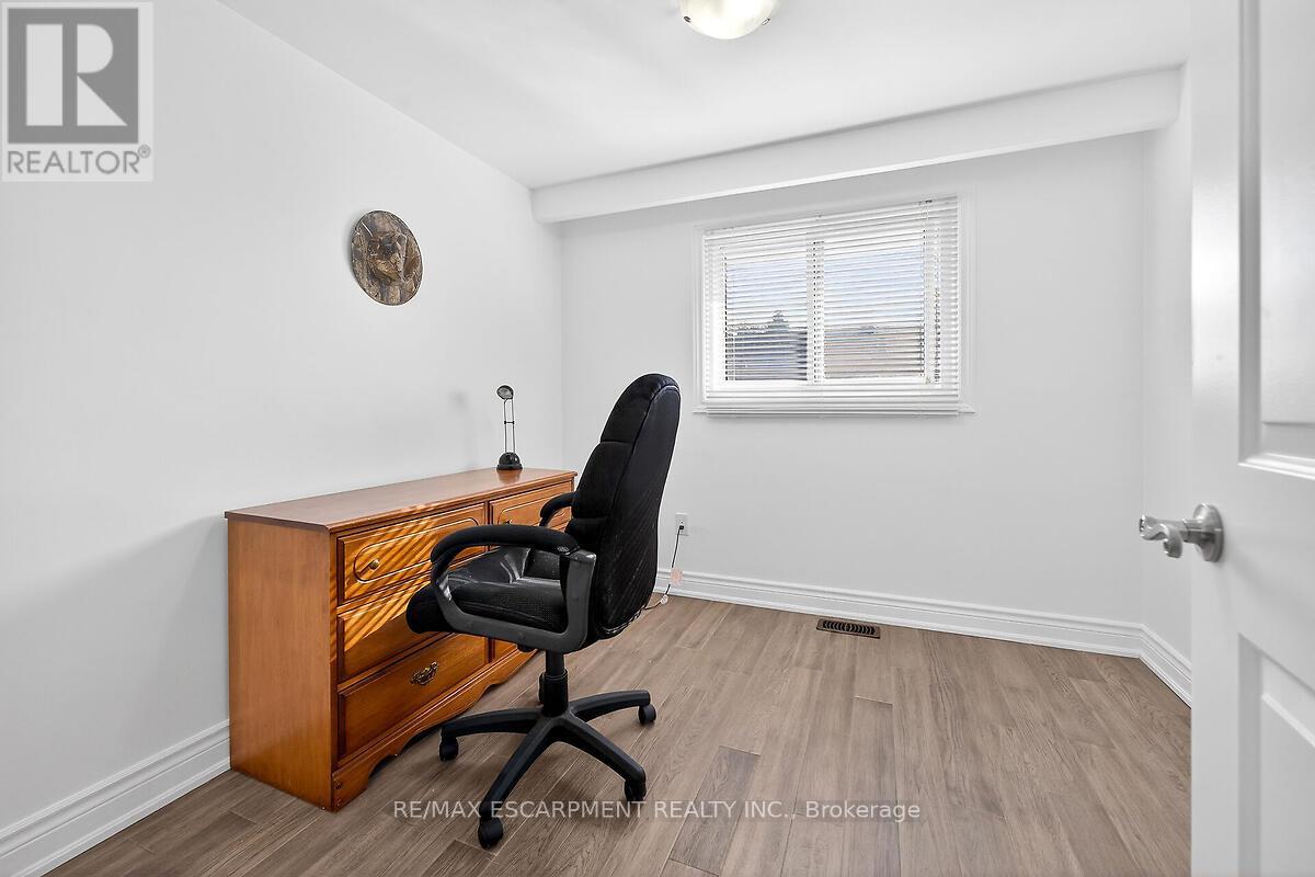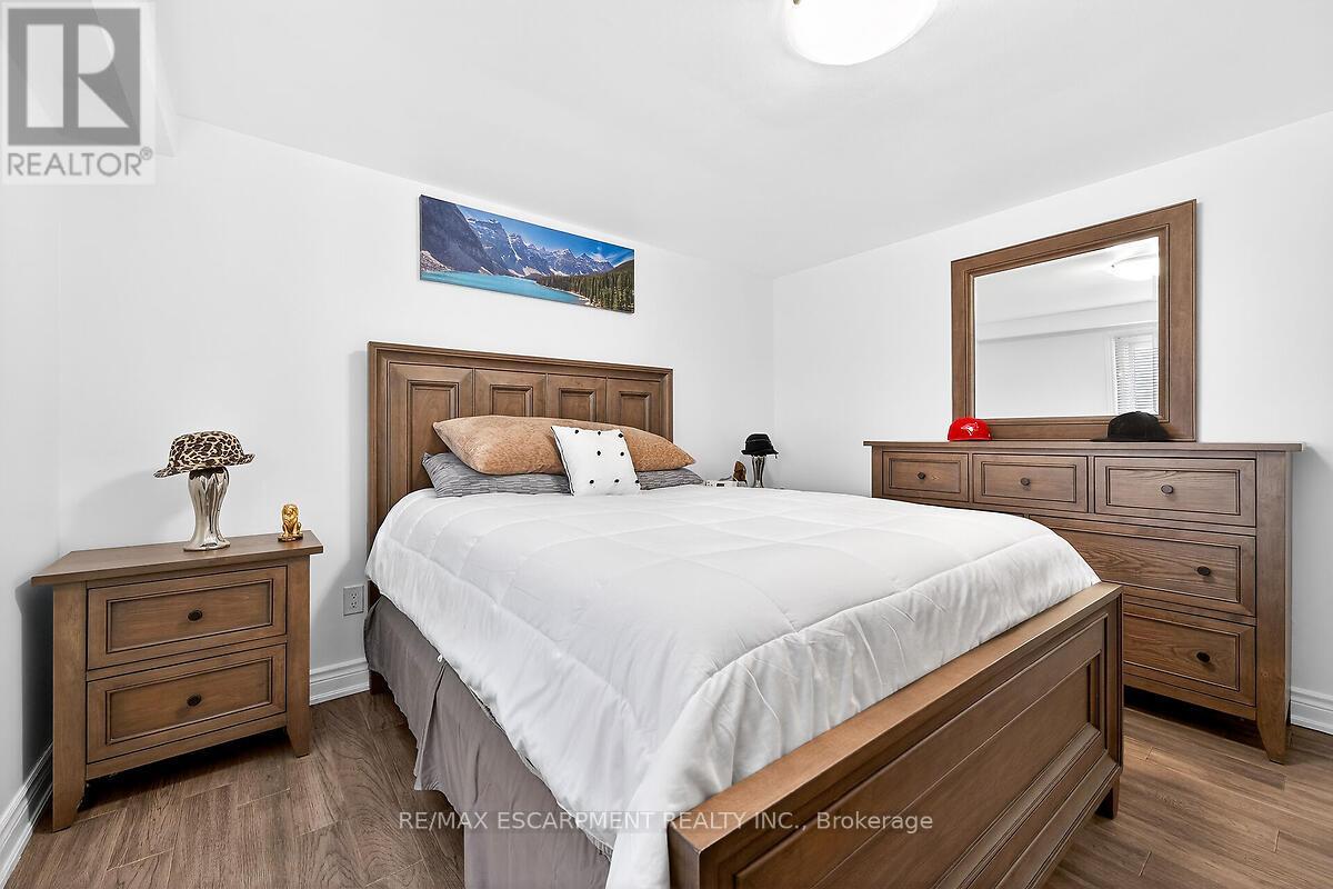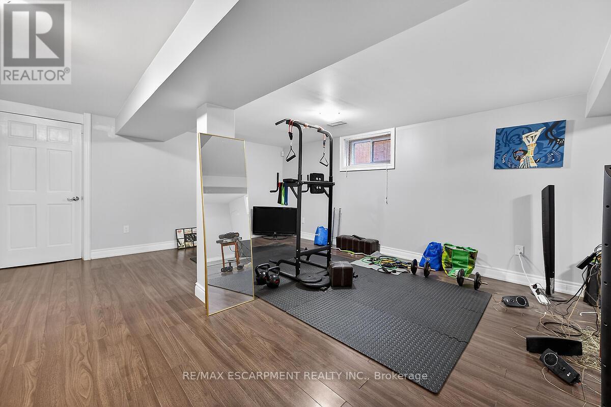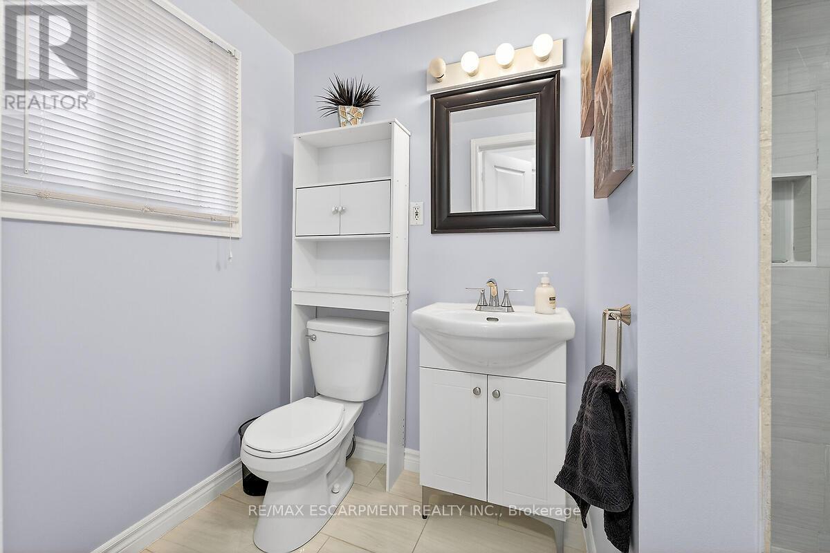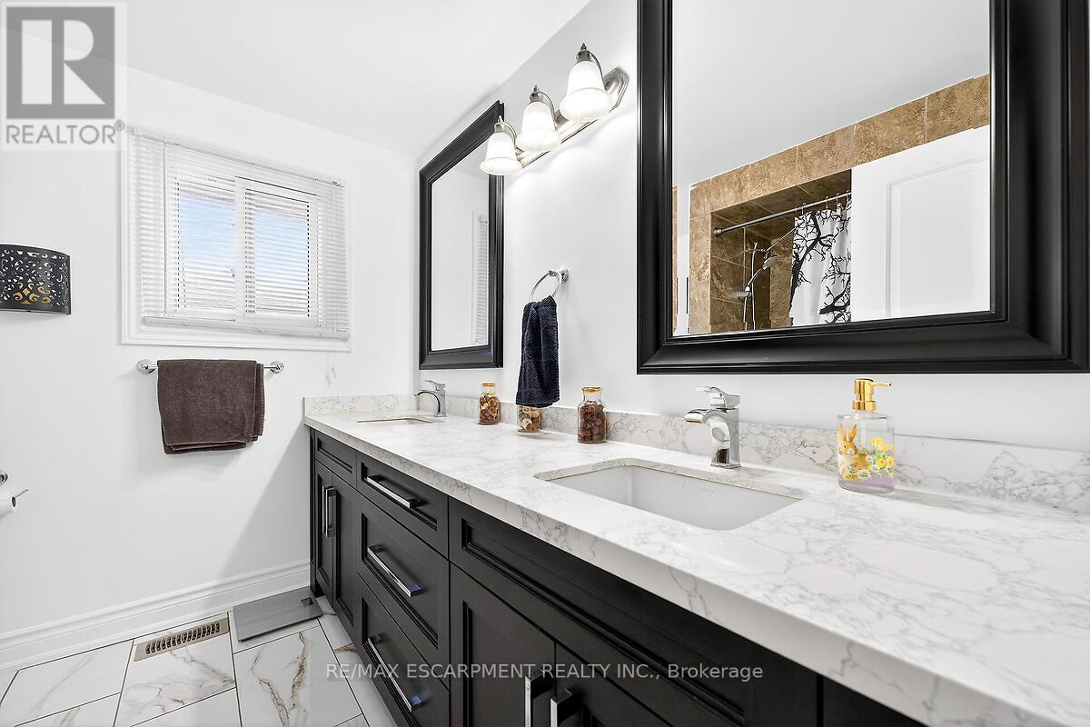 This beautifully renovated four-level backsplit showcases quality craftsmanship and thoughtful design throughout. The bright, open-concept main floor features rich hardwood flooring, a spacious living and dining area, and a custom-designed kitchen complete with quartz countertops, stylish backsplash, and stainless steel appliances, including a gas stove. Upstairs, you'll find three generously sized bedrooms and a stunning five-piece bathroom. The lower level offers a welcoming family room with a walkout to the backyard, a convenient side entrance, an additional bedroom, and a modern three-piece bath - ideal for guests or extended family. The fully finished basement provides even more living space with a recreation room, laundry area, cold room, and ample storage. Major updates include the furnace, A/C, roof, windows, and electrical panel. Outside, enjoy exceptional curb appeal with an exposed aggregate driveway and walkways, a front porch with sleek glass railings, a fully fenced yard, and a large shed with hydro. Tucked away on a quiet cul-de-sac with beautiful escarpment views, this home is just steps to parks and trails, close to schools, and offers quick access to the Red Hill and major highways. (id:4555)
