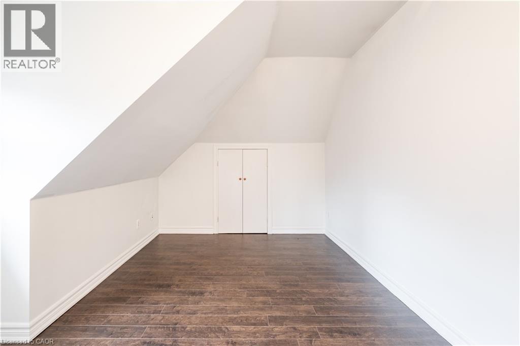 Bright 2-bedroom, 1-bathroom third floor Unit 3 located in a large brick home on a quiet tree-lined street in the Gibson neighbourhood. Conveniently situated near restaurants, shops, parks, and transit. Heat and water included. Hydro separately metered and paid by tenant. Shared laundry in the basement, pay per use. One parking space available in driveway (tandem parking with other tenants; occasional coordination required). Great opportunity to live in a charming and convenient location. (id:4555)