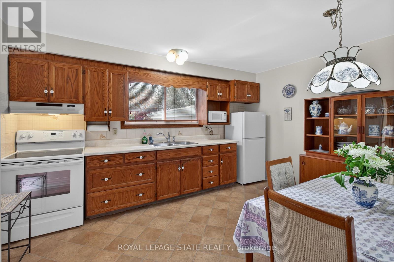 Welcome to 34 Helen Street, a charming brick bungalow ideally situated in the heart of the picturesque town of Dundas. Set on an expansive 50' x 179.22' property (irreg) surrounded by mature trees and lush greenery, this lovingly maintained home offers exceptional outdoor space and a peaceful setting rarely found this close to the vibrant downtown core. Opportunities on this quiet, established street are uncommon, making this a truly special offering in one of Dundas' most desirable neighbourhoods. An updated front door with sidelight welcomes you into a functional foyer w/ convenient storage closet, opening to a bright and inviting living room filled with natural light from a large bay window & hardwood flooring. The functional eat-in kitchen provides a practical and welcoming environment for preparing meals & family dining. The main level also features 3 spacious bdrms, each complete with hardwood flooring. A well-appointed 4-pc bath with a shower/tub combo offers convenience and functionality. A side-door entrance adds flexibility w/ direct access to both the main and lower levels. The p-fin lower lvl expands the living space w/ a large rec rm perfect for relaxing, hobbies, or entertaining. A den currently utilized as a 4th bdrm, along with laundry facilities & storage/utility space round out the lower lvl. Outside, the deep mature yard provides a private outdoor retreat framed by established foliage. The property also offers impressive parking w/ surfaced parking for 6+ vehicles w/ a convenient carport. Ideally located just minutes from downtown Dundas, residents enjoy easy access to charming boutiques, cafés, restaurants, schools, & everyday amenities. The nearby Dundas Driving Park is a beloved local destination featuring playgrounds, sports fields, tennis, picnic areas, and more. A rare opportunity to own a meticulously maintained home on a deep property in one of Dundas' most established and sought-after neighbourhoods. (id:4555)