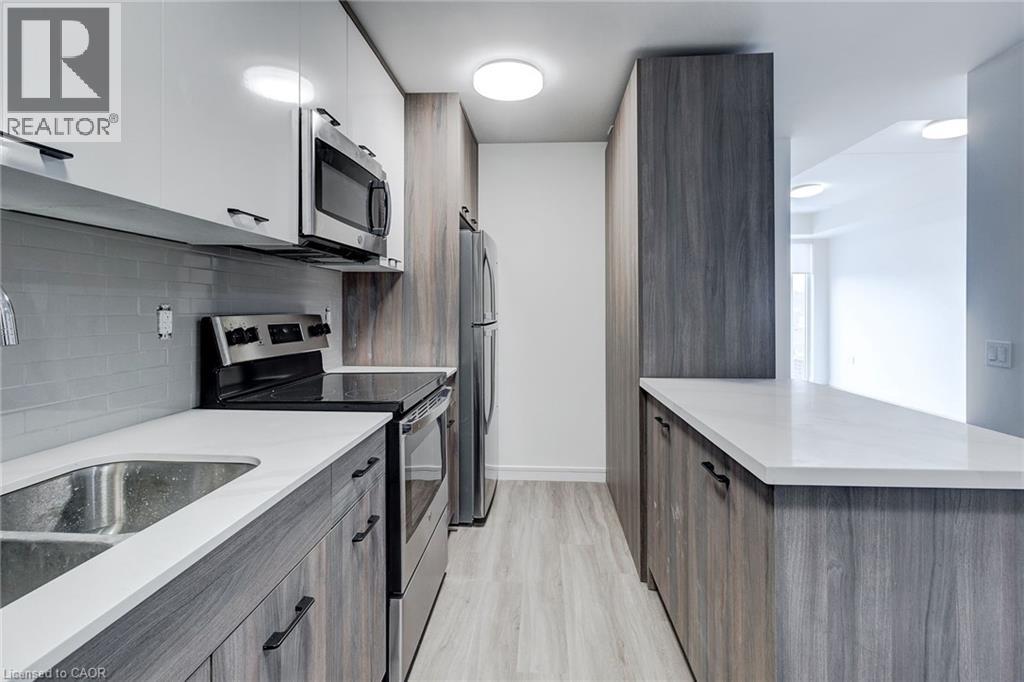 Stunning south-facing apartment with sweeping views of the escarpment! Walnut Place is a premium purpose-built rental building in the heart of Hamilton! With urban amenities ranging from the Hamilton GO Centre and St. Joseph's Hospital within walking distance, this location seamlessly accommodates both the busy commuter and work-from-home professional. This gorgeous unit features a fully equipped kitchen boasting quartz countertops, a versatile island, and stainless steel appliances including a dishwasher. The view is best enjoyed through the floor-to-ceiling windows and out on the private balcony. Built-in closet space throughout the unit is great for storage and organization. Four piece bathroom offers a beautiful vanity and shower/tub. Enjoy the convenience of in-suite laundry, and the comfort of central air conditioning! Building amenities include a fitness center, party room, and coworking space. Garage parking is available at the cost of $150.00 per month. Enjoy a wealth of amazing local cafés, restaurants, and shopping options within the immediate area. (id:4555)