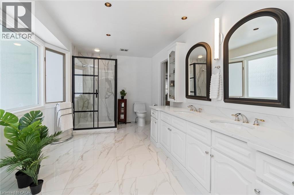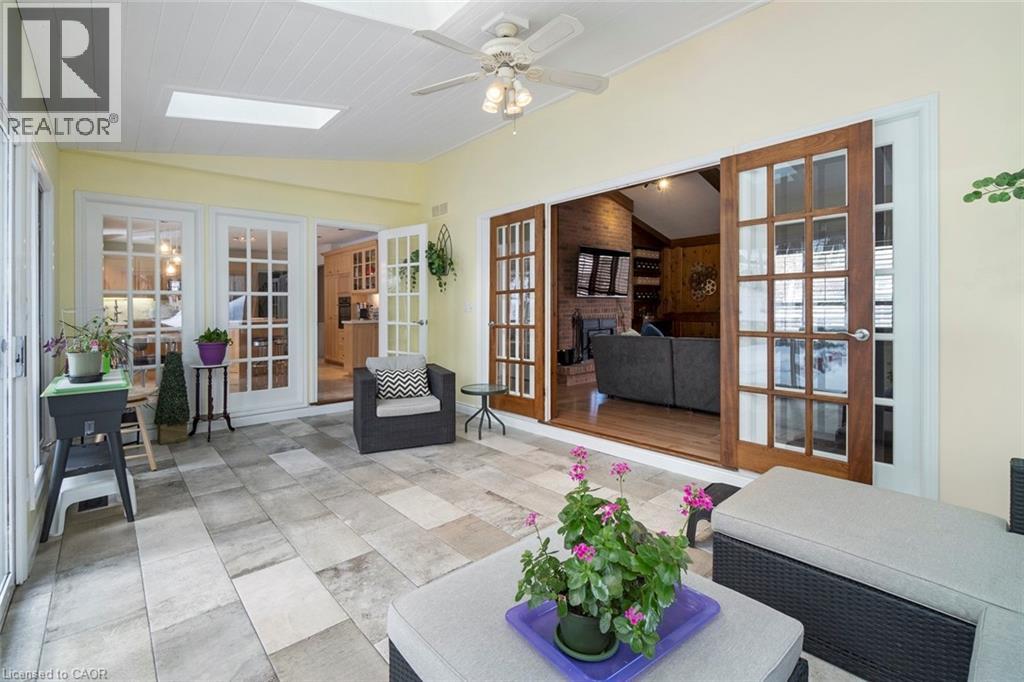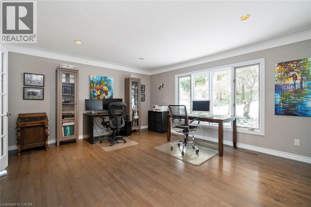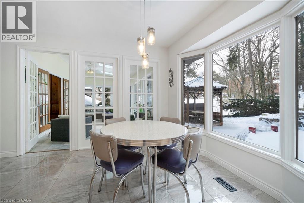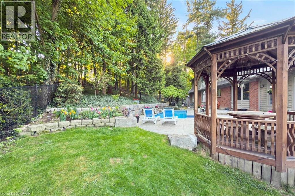 Imagine waking up every morning to your very own cottage-in-the-city, surrounded by the sights and sounds of nature! With almost 4,000 sq. ft. on the main and upper levels plus a finished basement, transform this floor plan to your personal needs. Grand principle rooms and multiple bonus spaces offer much flexibility! Wonderful potential for large families and business-from-home with lower level garage entry and separate side entrance. Travel to the end of this rarely visited cul-de-sac to find #18 Stonegate Drive peacefully perched amongst mature trees. An idyllic setting! Avid outdoor enthusiasts will enjoy the path on Stonegate Drive connecting to Ancaster Heights park and cycling/hiking trails. This stately property with expansive 142FT X 142FT lot comes to life in summer amongst mature gardens, heated salt water pool with waterfall, privacy from neighbours and numerous outdoor zones to enjoy! The main level is a rare find with a sprawling layout that generously separates gathering spaces, with suitability for multigenerational living or avid hosts. Hardwood flooring, two fireplaces, cathedral ceilings, oak accents and classic wainscotting elevate the main level spaces. Embrace views from both the cheery sunroom and eat-in kitchen during meal prep and coffee hour. Read, relax and enjoy your favourite hobby with the great outdoors as your backdrop! The upper level with 3 bedrooms includes primary suite with walk-in closet and bonus dressing room, flexible for potential 4th bedroom transformation. Don’t miss the spa-like ensuite with soaker tub and glass shower. Better yet? Offering an additional bedroom, bathroom, wet bar, fitness room and games room, the lower level creates separation for extended living. While amenities, restaurants and Hwy access are within’ mere minutes, this Ancaster paradise feels like you’re a world away from the hustle and bustle!. Come explore the road less travelled to a hidden gem of a location that exudes serenity, peace & calm! RSA (id:4555)