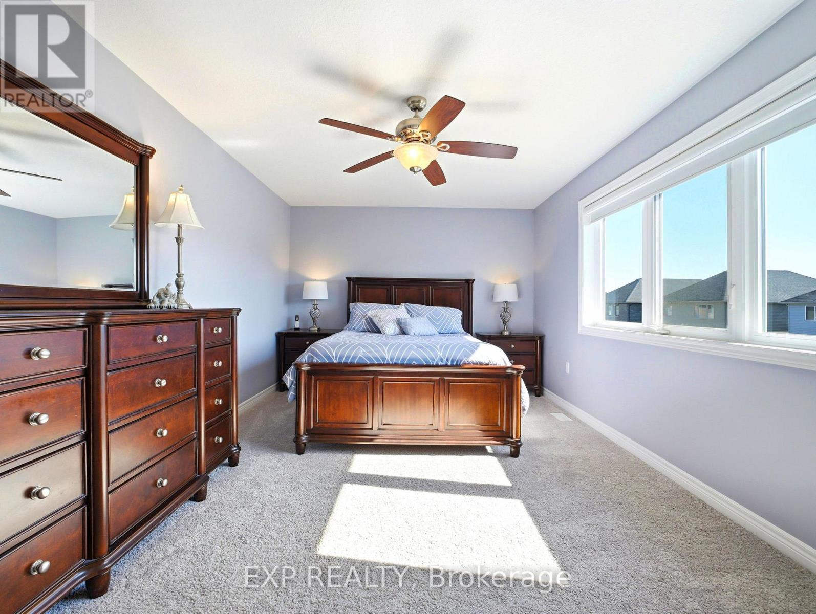 Stunning 4 bed, 3 bath detached home built only in 2020 by reputable John Bruce Homes! Offering ~2,000 sq. ft. of above grade living space with tasteful finishes designed for modern family living. From the moment you arrive, the home impresses with its upgraded elevation featuring contemporary stucco and stone finishes, a new asphalt driveway with interlocking stone and exceptional curb appeal. Step inside to discover an open and spacious main floor, abundant in natural light with 9-ft ceilings, engineered hardwood flooring, and pot lights throughout - creating a warm and inviting atmosphere. The living room is the perfect place to gather, highlighted by a cozy gas-powered fireplace. The well-appointed kitchen blends style and function with upgraded floor tiles, corner cabinetry with cupboard valences, an over-the-range microwave, ample counter space and a convenient breakfast bar ideal for casual dining or entertaining. Upstairs, you will find four generously sized bedrooms; three feature walk-in closets for exceptional storage. Two full bathrooms, including a 4-pce main bathroom and a spacious 4-pce primary ensuite with a relaxing soaker tub and a glass shower, create the perfect retreat at the end of the day. Added convenience of upstairs laundry. The unspoiled basement with upgraded windows offers endless potential and awaits your finishing touches. Outside, enjoy a large fully fenced backyard perfect for entertaining, family gatherings, or relaxing evenings outdoors. Situated on one of the best streets to live on in Binbrook, this home is located in a peaceful, family-friendly neighbourhood just minutes from schools, parks, and shopping, making it an exceptional opportunity you won't want to miss! (id:4555)
