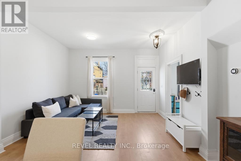 Character, space, and modern upgrades-all in one of Hamilton's most exciting neighbourhoods. This beautifully renovated Century home is completely move-in ready and offers the perfect blend of historic charm and contemporary comfort. Don't let the unassuming exterior fool you. Inside, the home opens up to 1,130 sq ft on the main floor, featuring 3 bedrooms, 2 bathrooms (including a private ensuite), a large modern kitchen, and generous living spaces designed for both everyday living and entertaining. The 9.5 ft ceilings in the main living area create a bright, airy atmosphere, while fresh paint and large windows fill the home with natural light. Quality upgrades are evident throughout, including ESA-approved electrical and lighting, stylish thick laminate flooring, and oversized tile floors that add warmth and durability. Major updates provide peace of mind for years to come, including basement waterproofing, a new AC, humidifier added to the furnace, a Nest smart home system, and updated R60 attic insulation (2023). Step outside and you'll find a generous 33 x 149 ft lot, with the home set slightly back to allow for off-street parking and a large backyard perfect for entertaining, recreation, or even the potential for a future garden suite. Situated in Hamilton's highly sought-after North End, you're just minutes from Pier 4 Park, the transformative Pier 8 waterfront development, the GO Station, highway access, and Downtown Hamilton-a location that continues to grow in demand. Updated homes in this neighbourhood rarely last long-don't miss your opportunity to make this one yours. (id:4555)