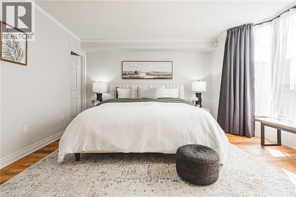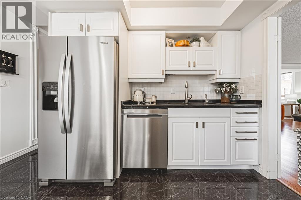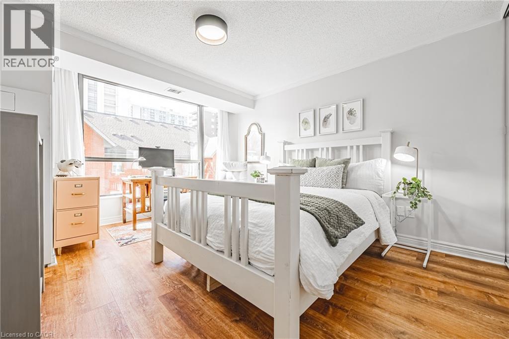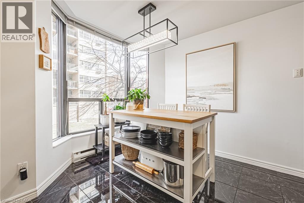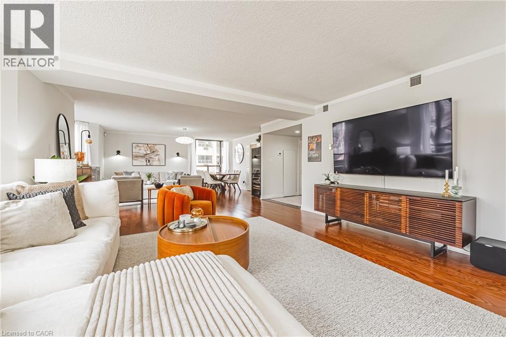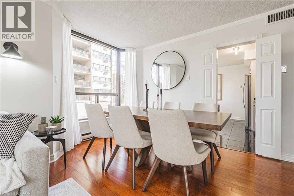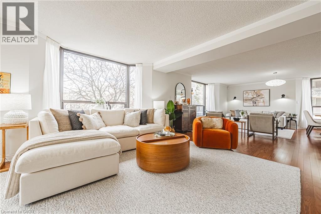 Nearly 1,800 sq. ft. of house-sized living with only two suites per floor — a rare boutique condo opportunity in the heart of downtown Hamilton. Welcome to The Garrison, an exclusive residence offering exceptional privacy and space rarely found in condominium living. This beautifully proportioned corner suite opens through double doors into a gracious centre-hall layout, with expansive principal rooms designed for both comfortable everyday living and effortless entertaining. Bay windows and wall-to-wall glass capture east, west and north exposures, flooding the home with natural light. The grand living and dining areas comfortably host everything from intimate dinners to large holiday gatherings, offering the scale and flexibility often missing from condo living. The well-appointed kitchen features granite countertops, newer appliances (2021–2023), and an instant hot water tap. The private bedroom wing includes a spacious primary suite with a corridor of closets and ensuite bath, while the generous second bedroom, full guest bath, and separate den/office provide flexibility for guests or working from home. Rich hardwood floors and thoughtful updates reflect meticulous care throughout. Ideally located steps to St. Joseph’s Hospital and within walking distance to Locke Street boutiques, Augusta cafés and wine bars, and Hess Village nightlife, this home offers a vibrant urban lifestyle. Parking is a rare luxury downtown. The suite includes one owned underground space and currently rents two additional spaces for just $50/month each. A rare opportunity for house-sized living without the maintenance in one of Hamilton’s most exclusive boutique buildings. (id:4555)