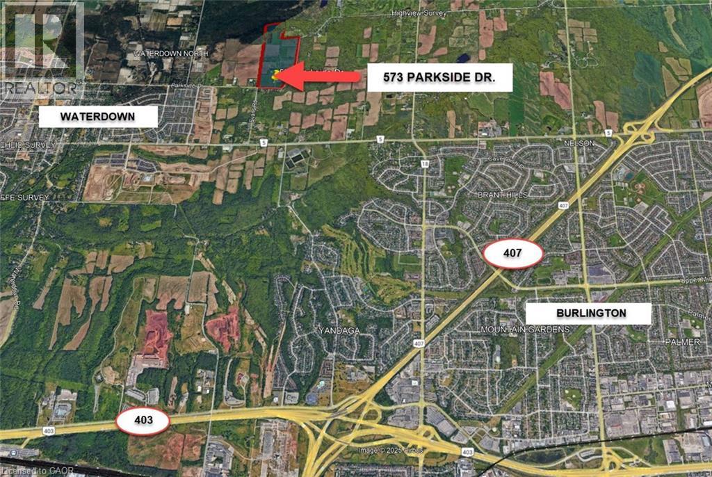 Welcome to 573 Parkside Drive! A truly rare offering with 116.5 acres of prime farmland on the outskirts of Waterdown. Featuring a 2,785 sq. ft. 2 storey brick farmhouse, and a beautiful old wood bank barn that was formerly used as a destination fruit and bake shop. This expansive property is just minutes from Burlington, Hamilton, and major commuter routes, with quick access to Hwy 6, the QEW, and the 403. Zoned A2 and P7, the land offers incredible versatility, ideal for continued agricultural use, a dream estate, horse and hobby farming, or even a wedding and event venue that takes advantage of the charming farmhouse and historic barn. The fertile acreage also supports cash crops, orchards, or farm-to-table opportunities. With steady growth in the Hamilton-Waterdown area and multiple subdivision proposals nearby, it also represents an exceptional long-term buy and hold investment (subject to approvals). Featuring established road frontage, proximity to municipal services, and surrounded by active development, 573 Parkside Drive is a one-of-a-kind opportunity that blends country charm, future potential, and unmatched location. (id:4555)