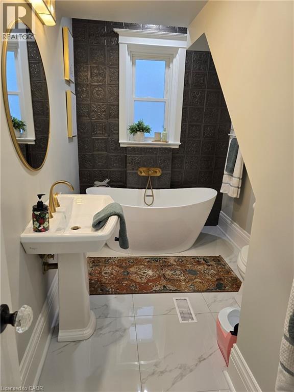 Fantastic 2 bedroom & 2 full bath unit in quiet Central/East Hamilton location close to Gage Park. Fully renovated and updated, featuring one bedroom on main level and 2nd floor primary bedroom suite with private ensuite bath. Large updated kitchen with stainless steel appliances & island/ breakfast bar. Separate formal dining room (could be an office) and large front living room with high ceilings and tons of natural light. Large front foyer with entry storage closet. Insuite private laundry. 2 car parking. Half the garage assisgned to this unit for storage. Basement rented separately. Available May 1st. (id:4555)