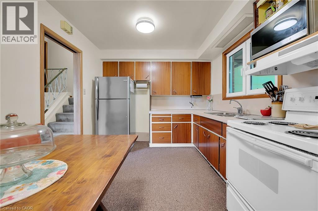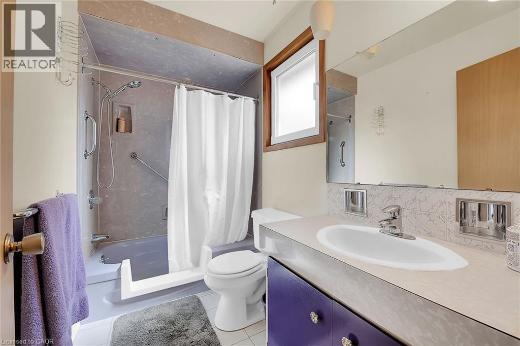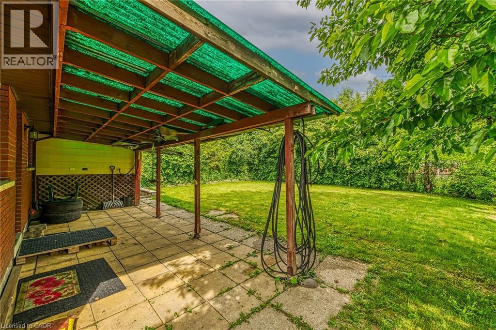 MOVE ON UP!!! This bright, cheery side split on the Hamilton central mountain in the quiet Lawfield neighbourhood, is across the street from the public school with a French Immersion wing. Two city parks, open green space and a city arena are close by. Easy access to the Linc, highways and Limeridge Mall. Quality windows and recently completed neutral painting throughout. Hardwood flooring under carpeting in most parts of the main and upper floors. Update kitchen and bathroom to your specifications and on your timeline. Both fully functional now. Good size fenced backyard with covered porch area for outdoor entertaining. (id:4555)