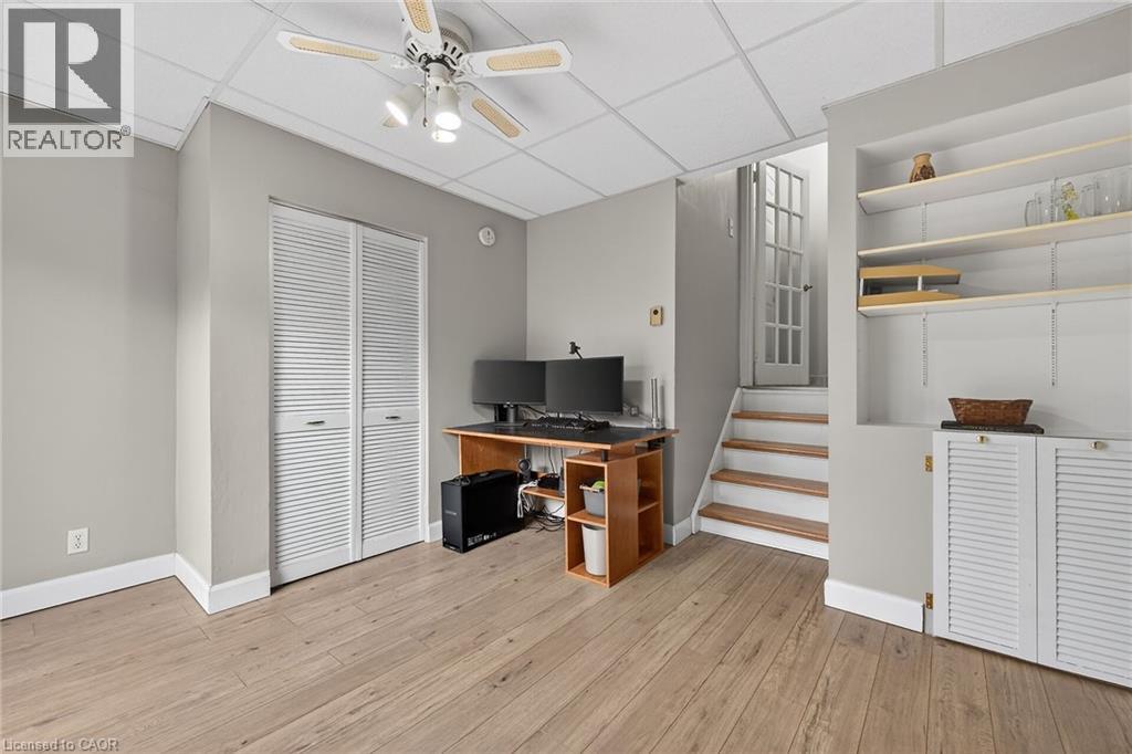 Rarely offered multi-level townhouse at the base of the Escarpment in downtown Stoney Creek. Impressive and bright main floor space with a high vaulted ceiling and gas fireplace. Updated kitchen and appliances with extended eat-in area. Upper level with large primary bedroom and updated bathroom. Lower level walk-out to private backyard area. Well managed and maintained complex. Located in a quiet and low traffic cul-de-sac within a short walk or drive to Stoney Creek amenities and instant access to the Escarpment via Mountain Road. A great start for first time buyers entering the market! (id:4555)