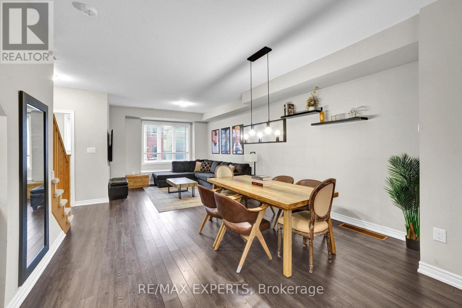 Welcome to 15 Rapids Lane in Hamilton - a stunning end-unit townhome built in 2020 offering nearly 2,000 sq ft of stylish and functional living space. This bright and modern home features 3 spacious bedrooms and 3 bathrooms, thoughtfully designed for comfortable family living. The main floor includes a versatile den with a convenient walk-out to the backyard, perfect for a home office, playroom, or additional living space. On the second level, you'll find the heart of the home: a beautiful kitchen complete with quartz countertops, a stylish backsplash, and plenty of cabinet space. Step out onto the private balcony for your morning coffee or evening relaxation. The second floor also features a large, open living area ideal for entertaining.The third floor offers three generously sized bedrooms, including a spacious primary suite withits own ensuite bathroom and walk in closet. For added convenience, the laundry is also locatedon the third level. This home includes 1 garage parking space and 1 driveway parking space,along with ample visitor parking. Ideally located close to schools, parks, shopping, public transit, and hospitals, and just minutes from major highways - this home offers the perfect combination of comfort, convenience, and modern living. (id:4555)